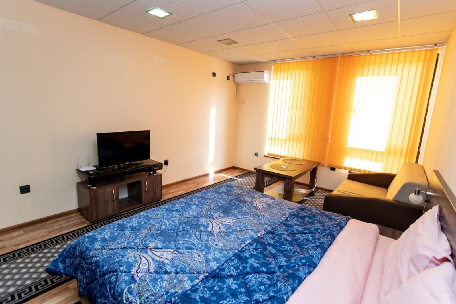Located in Kŭrdzhali, Стая за гости Пентагона offers a charming stay with a balcony and access to a terrace. The property provides free private parking and air-conditioned units with flat-screen TVs. Bed linen and towels are included for a comfortable stay.
