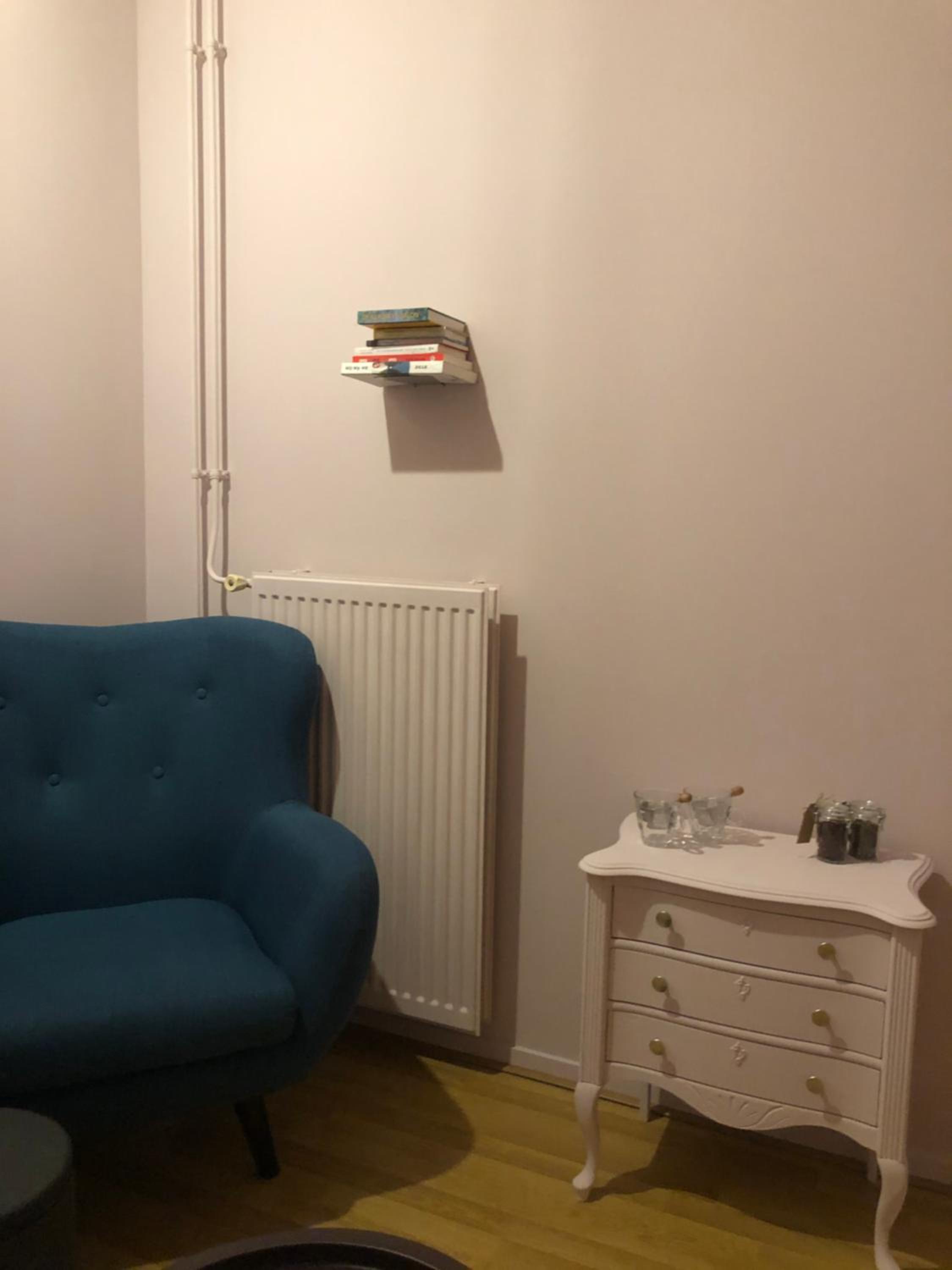 Eigen ruimte om samen te zitten met goede stoelen, koffie/thee kunnen zetten en gebruik kunnen maken van ingerichte keuken. Dicht bij centrum.