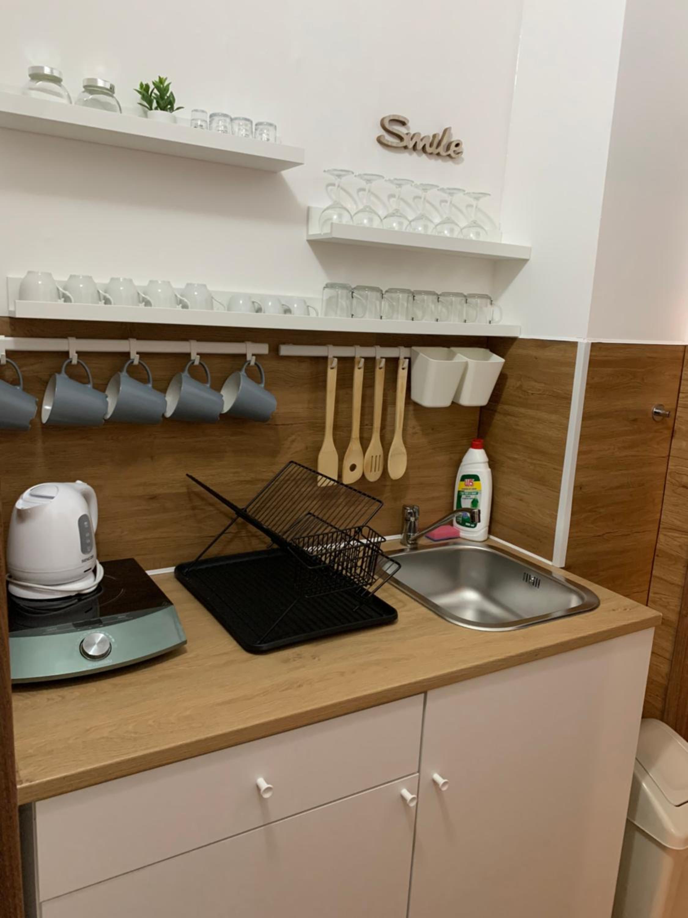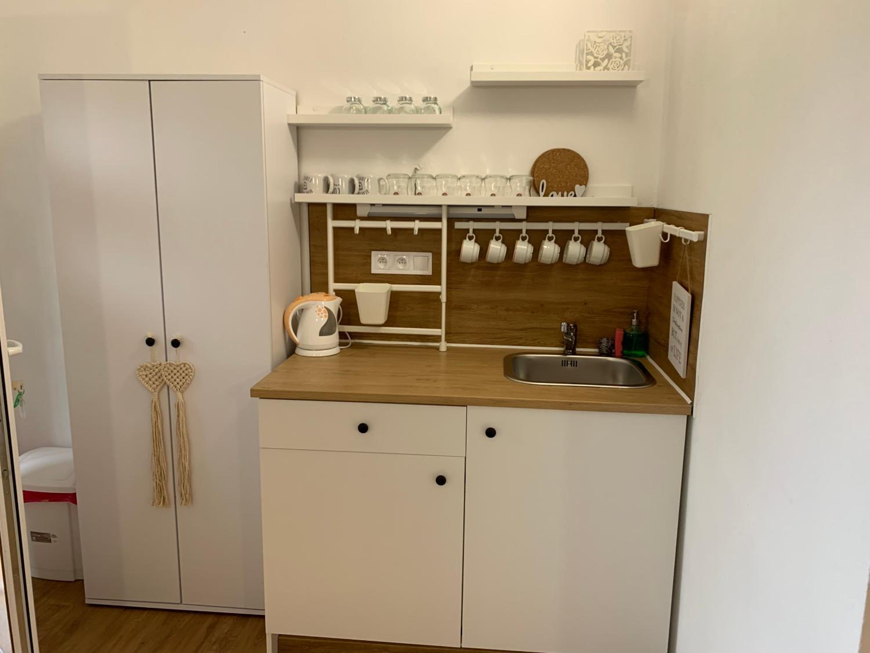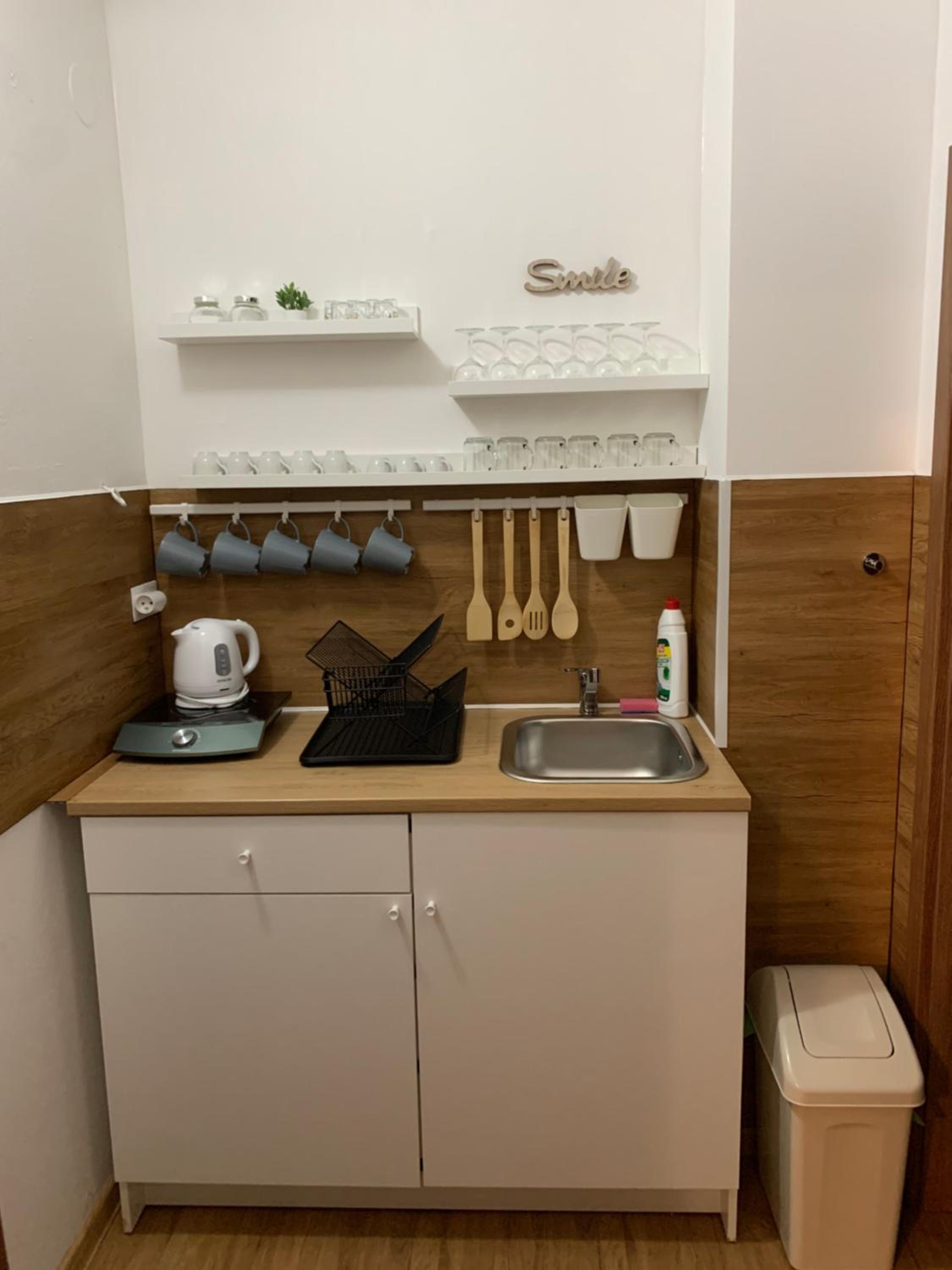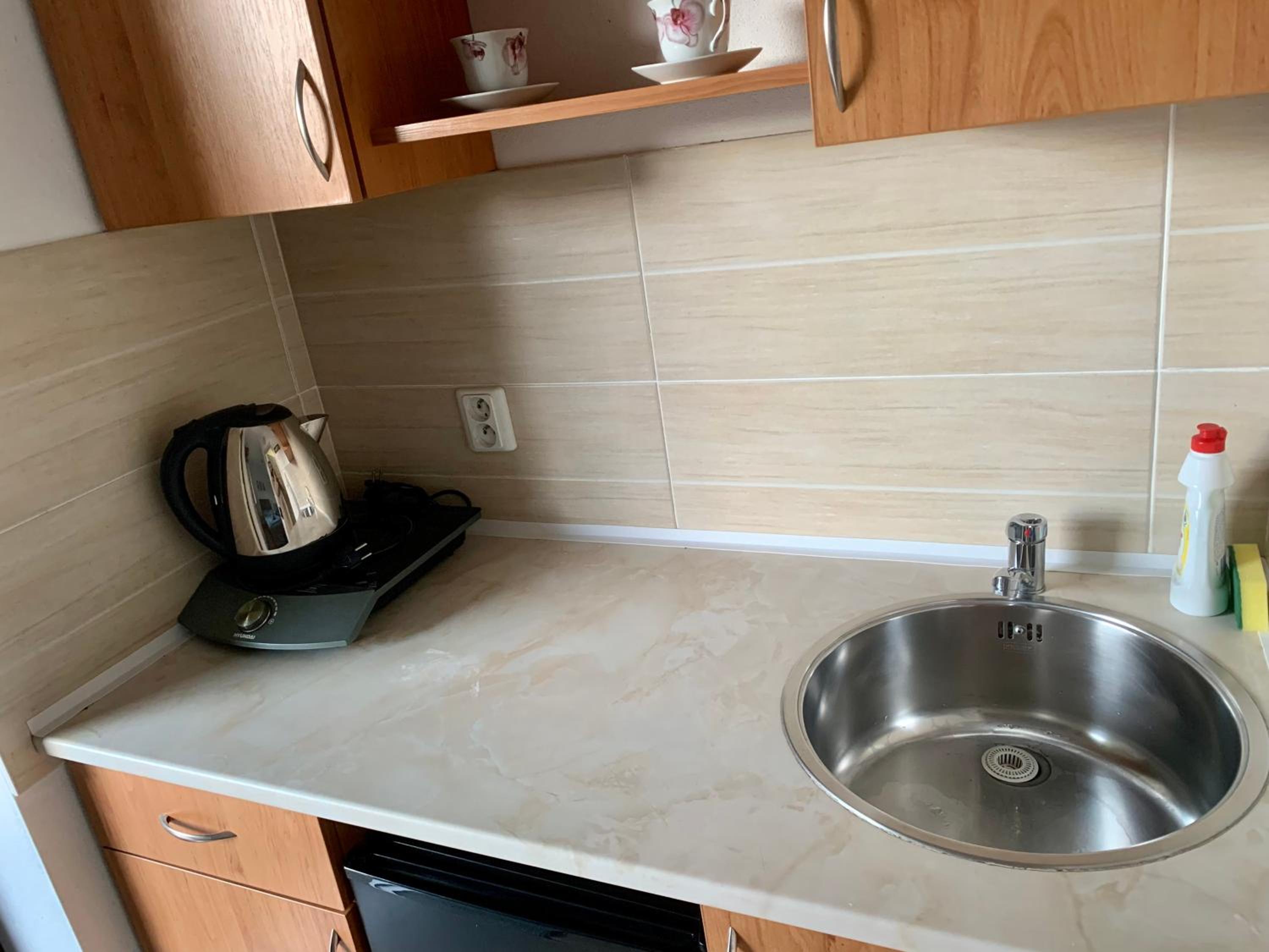 Čo by sme trošku ubytovaniu vytkli bolo, že hoci sme mali apartmán, jedálenskáý stôl bol umiestnený hneď pri vchodových dverách, fakticky bola z predsiene urobená aj kuchyňa a to bolo trošku zvláštne, v tejto časti sme sa necítili veľmi komfortne a pohodlne, jedli sme hneď vedľa odložených topánok.