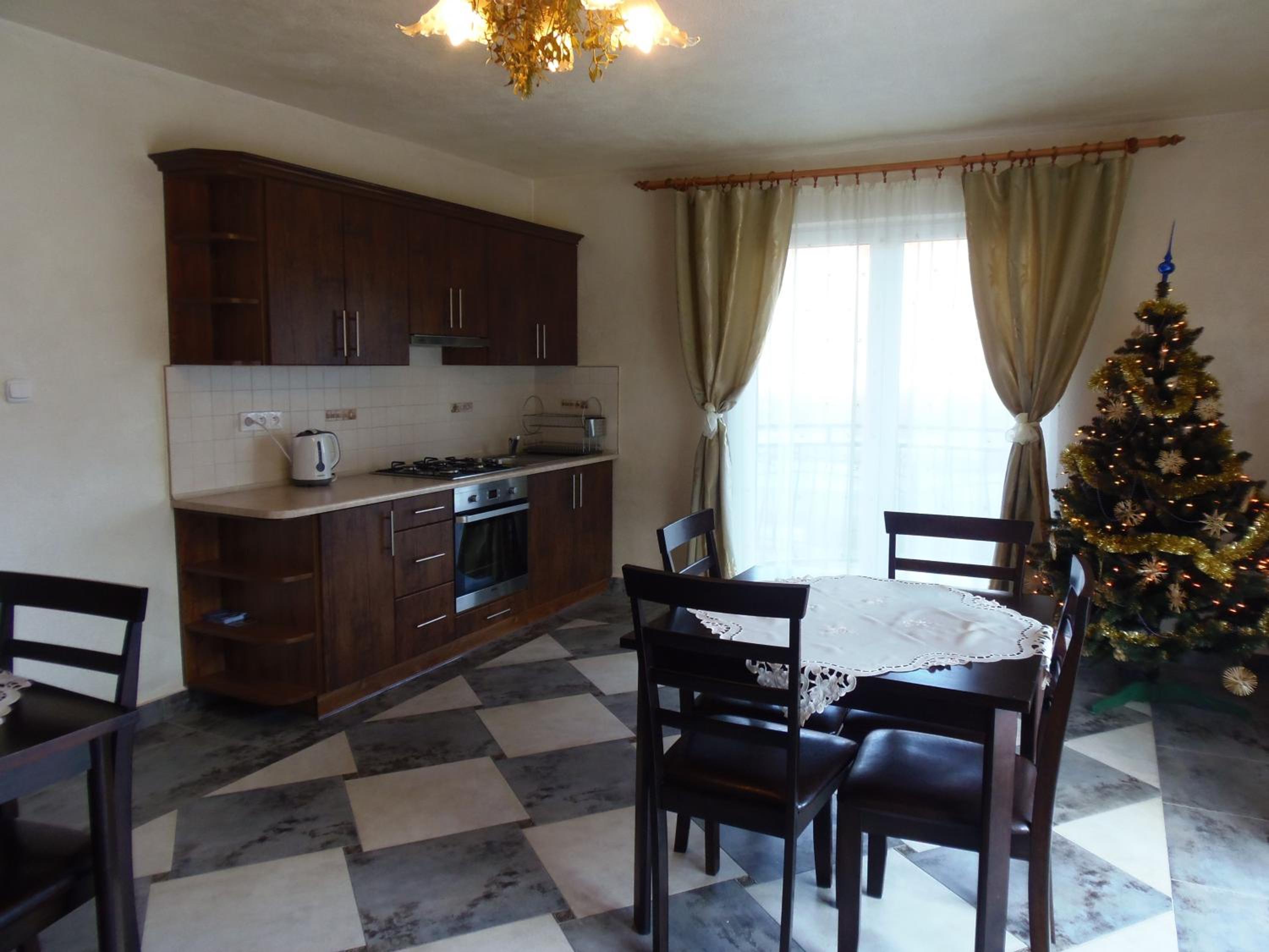 Pokój przestronny. Bardzo czysto. Piękna, duża jadalnia, wygodny dostęp i komfortowe korzystanie. Możliwość posiłku na dużym tarasie - wyjście wprost z kuchni połączonej z jadalnią.