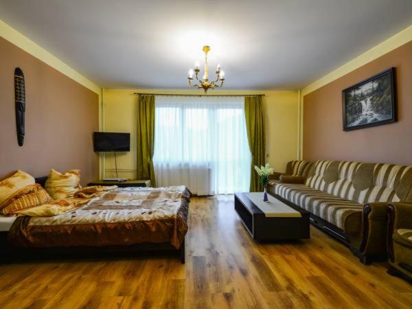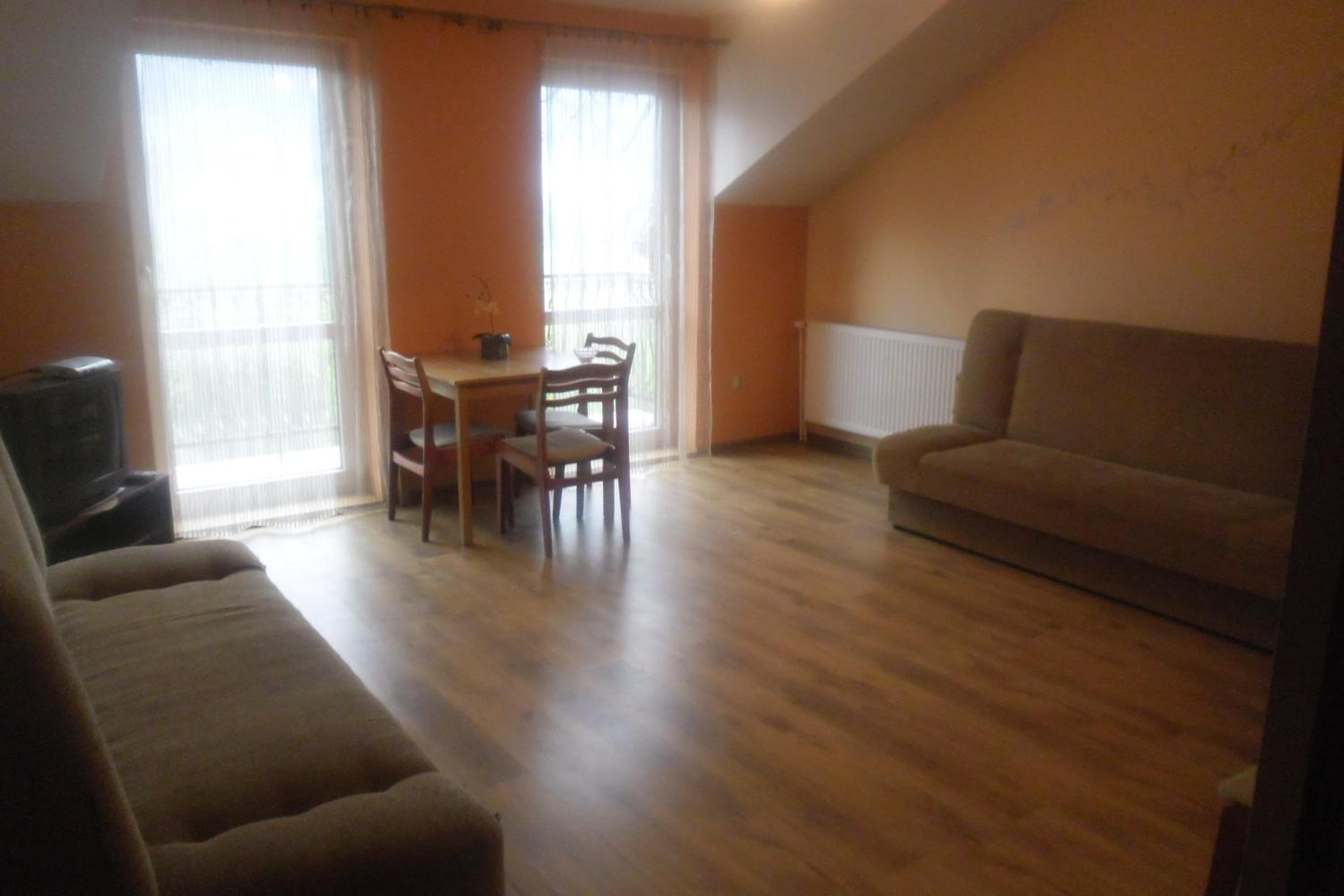 Apartament bardzo duży, można się tam czuć jak w domu, cudowny widok z balkonu na góry i rzekę.