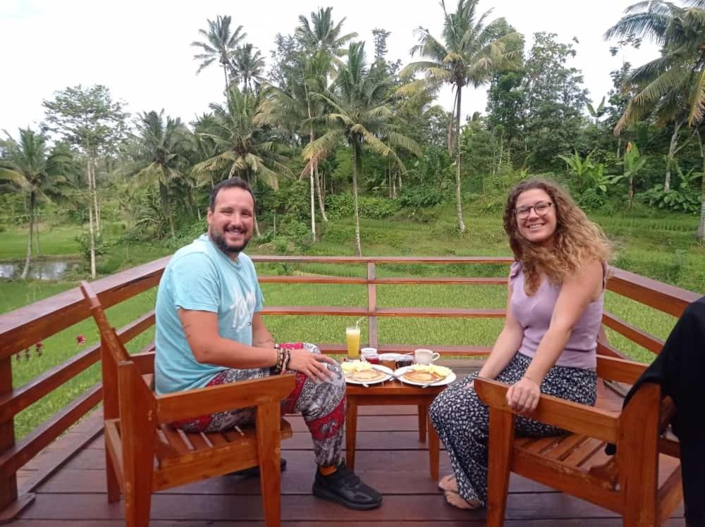 Petit déjeuner avec vue sur les magnifiques rizières, et le soir bercée au son des guitares.