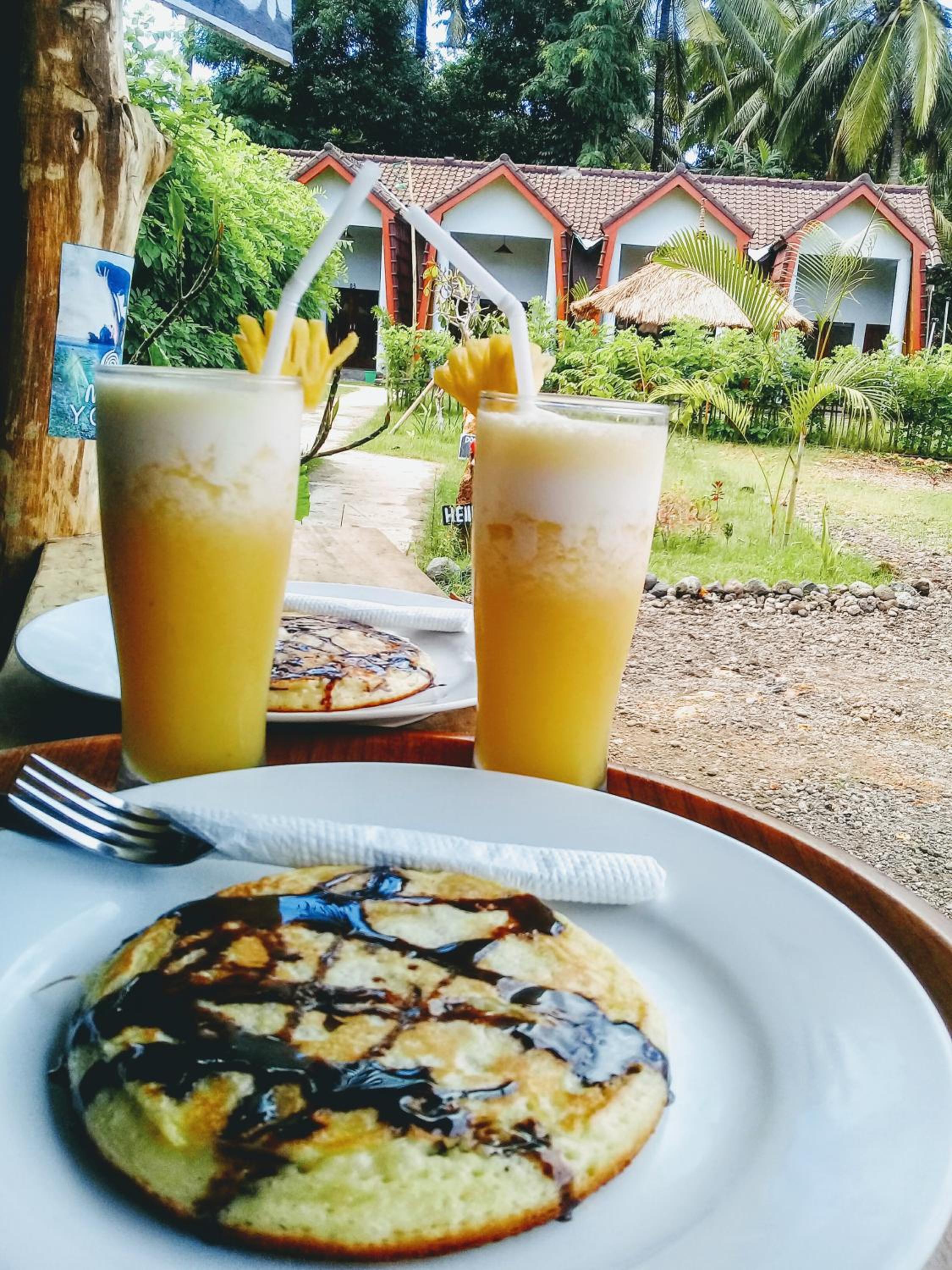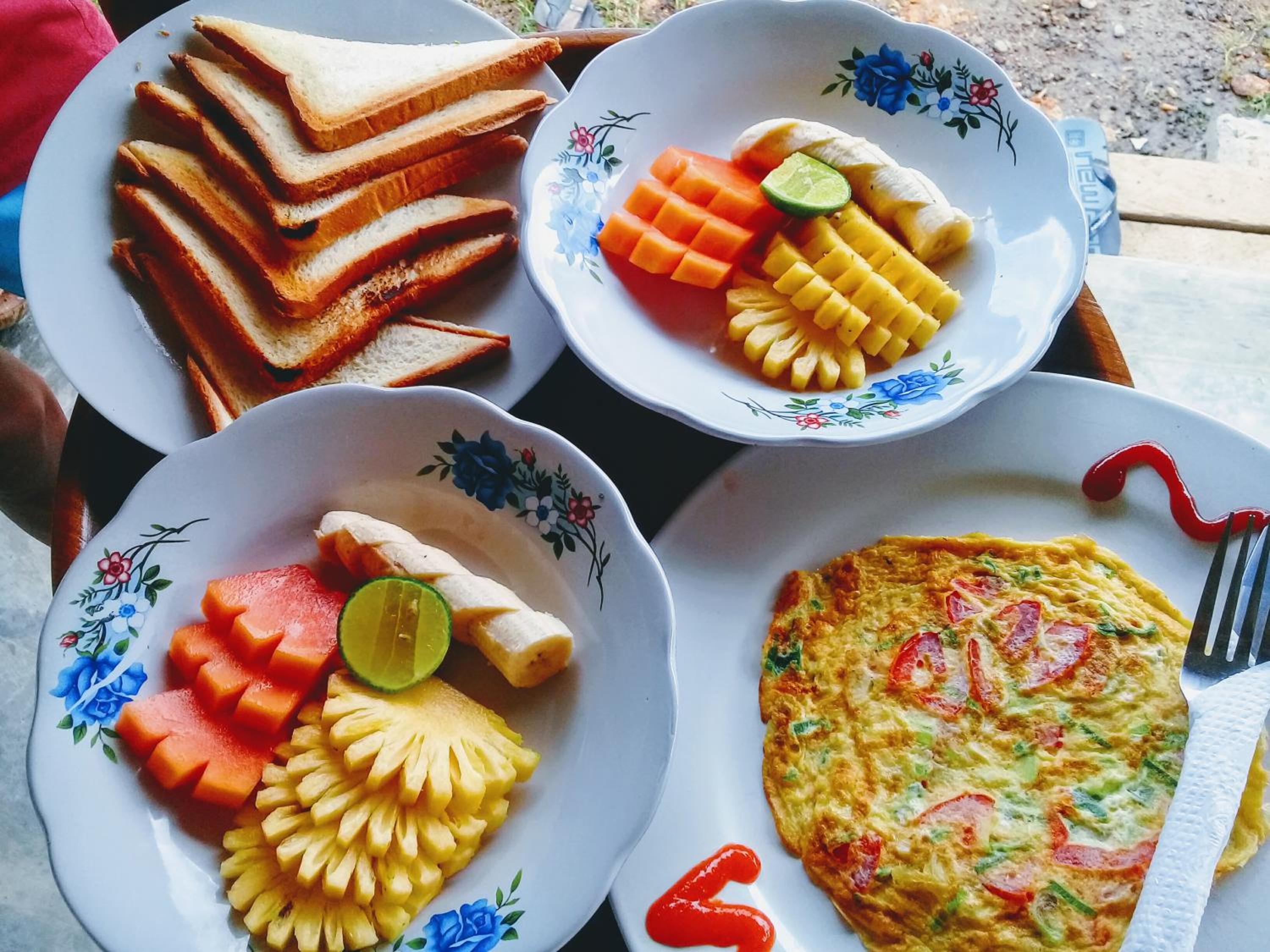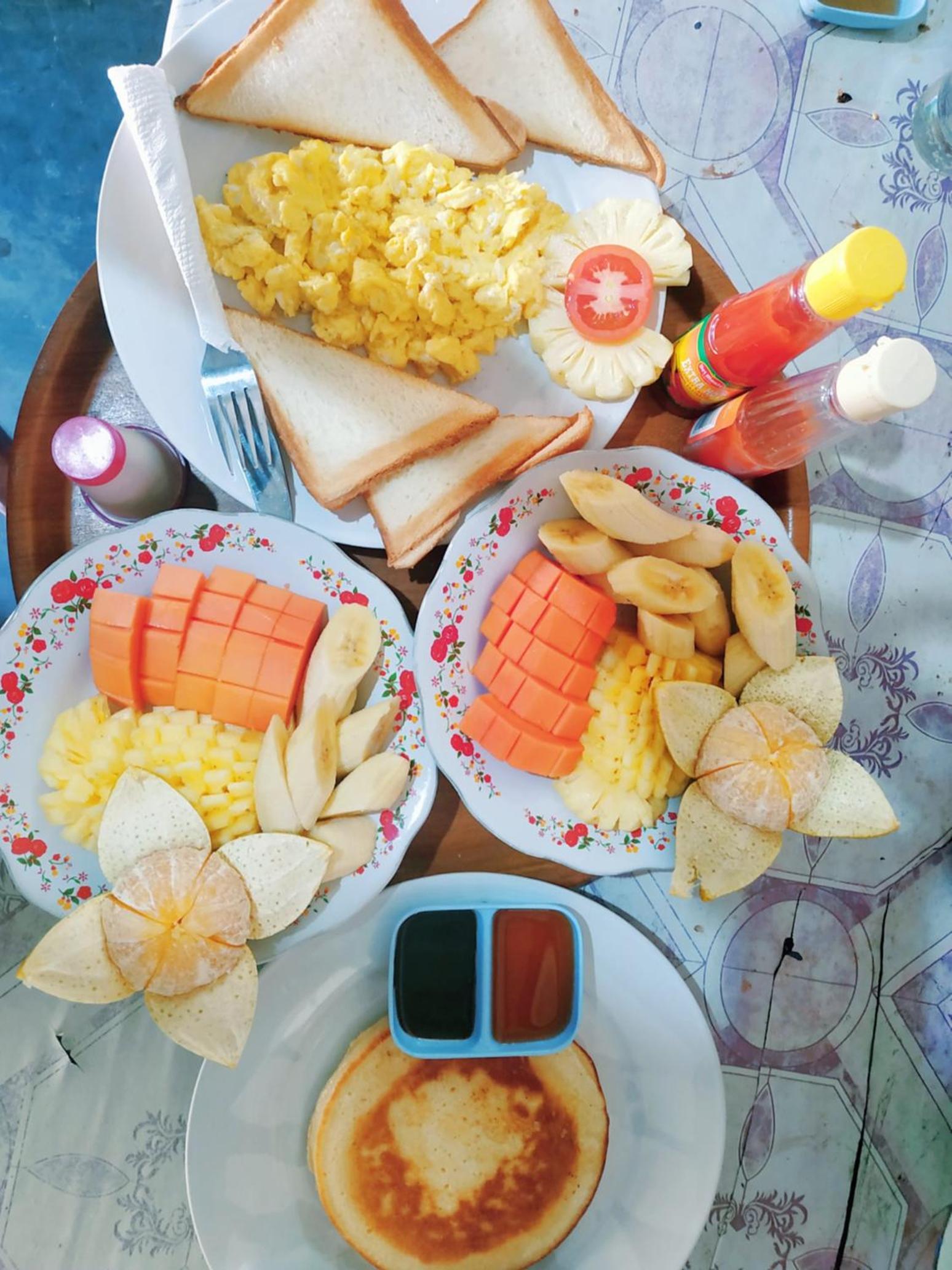 Pancakes for breakfast were delicious. The outdoor bathroom was great.