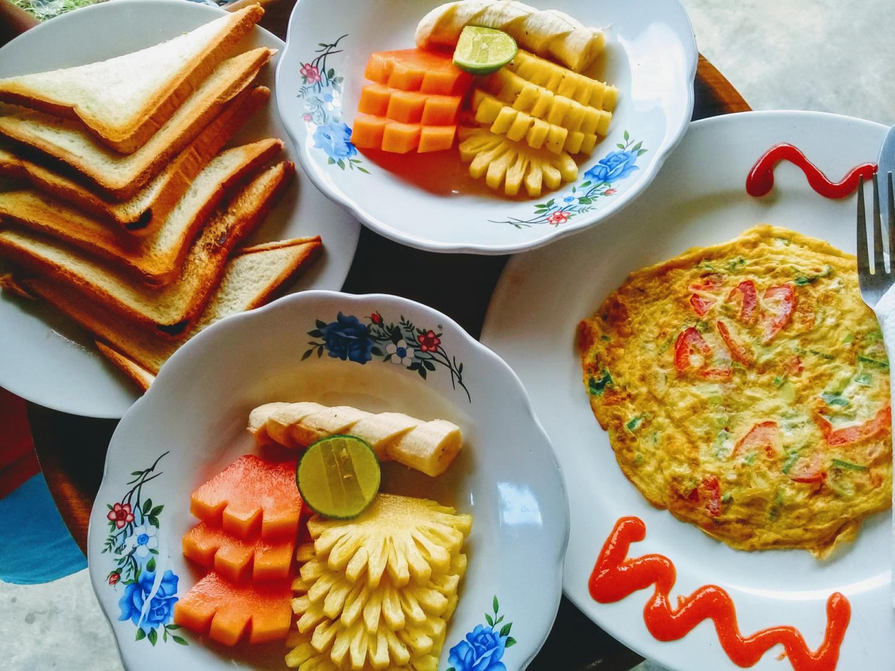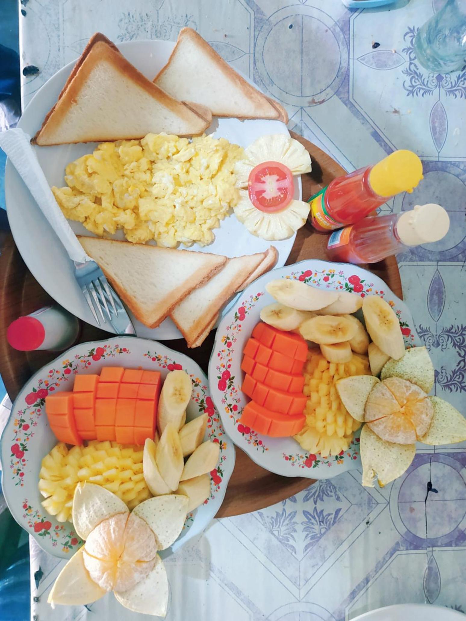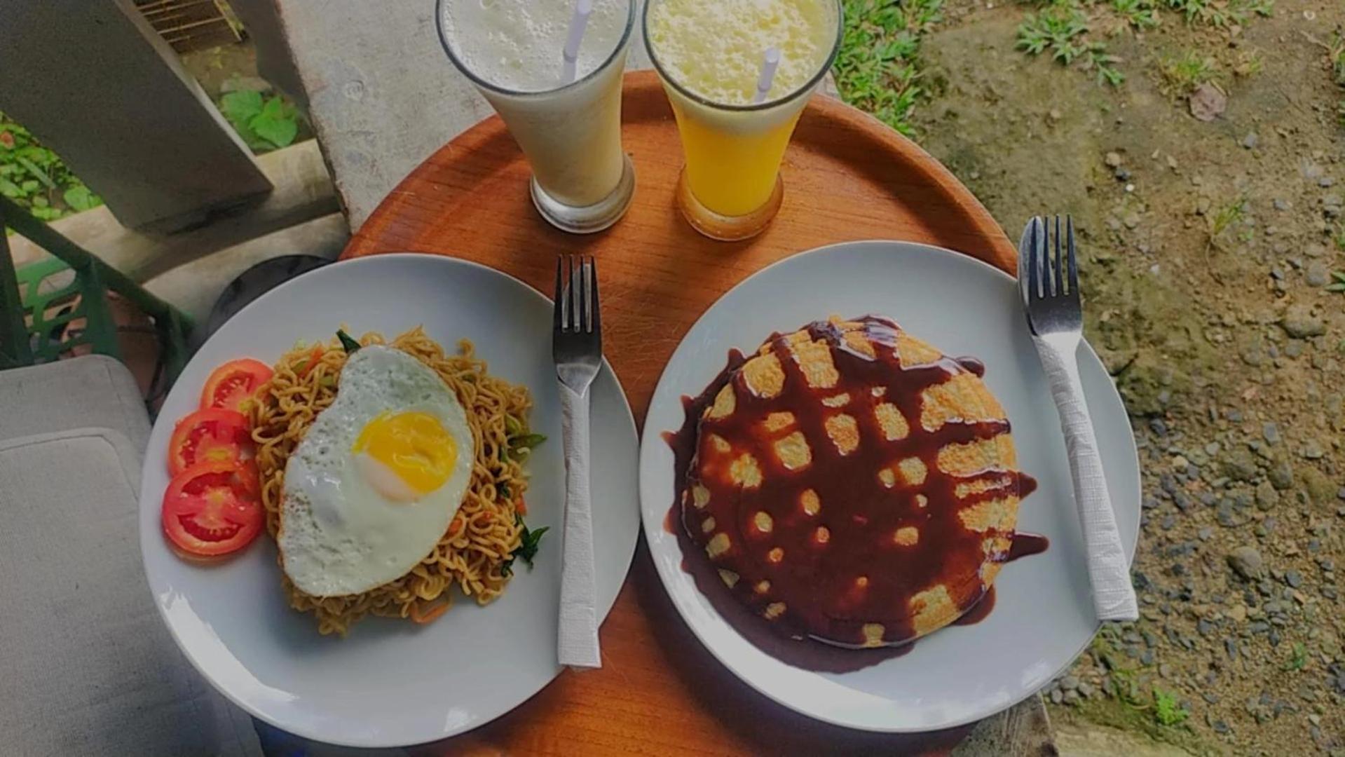 Pancakes for breakfast were delicious. The outdoor bathroom was great.