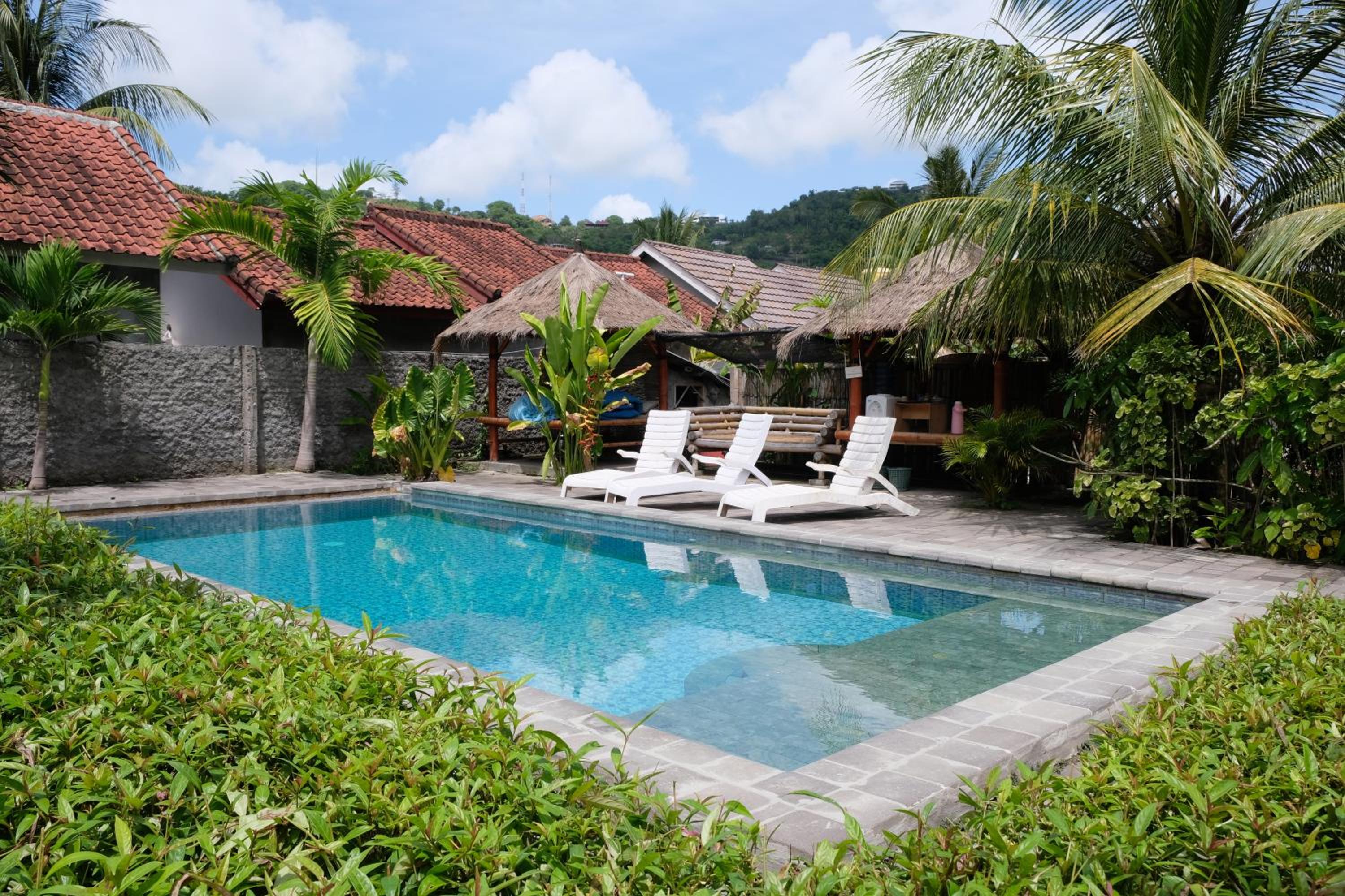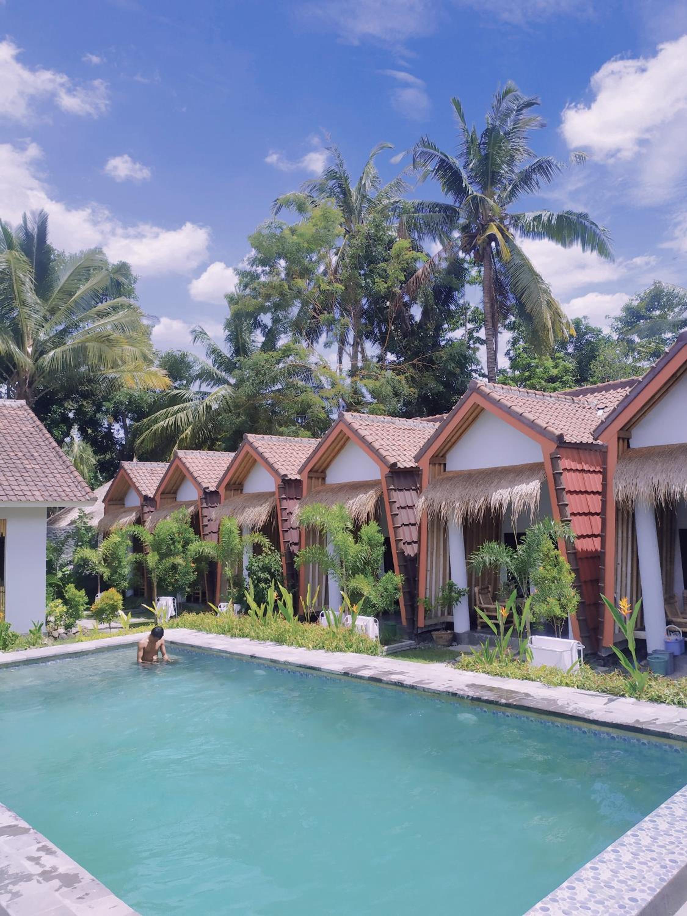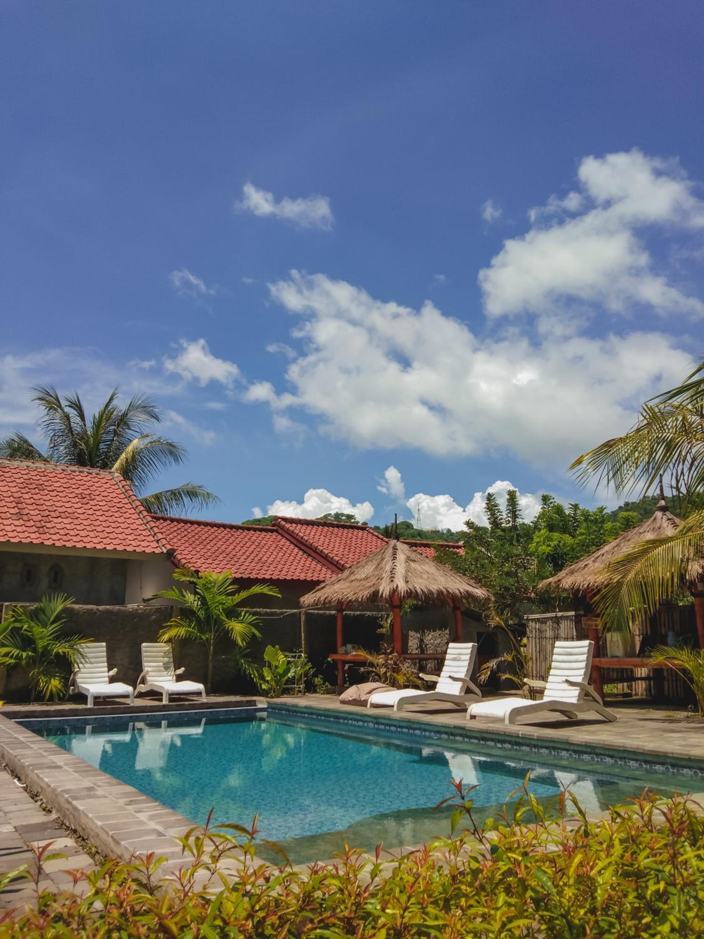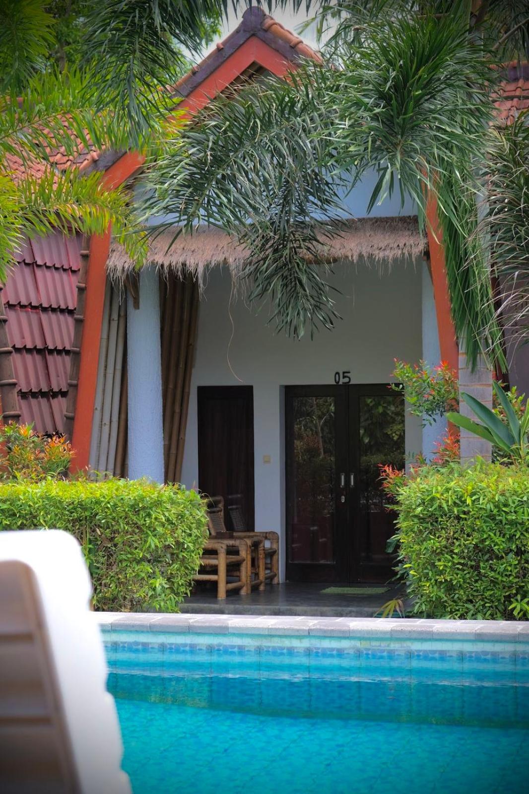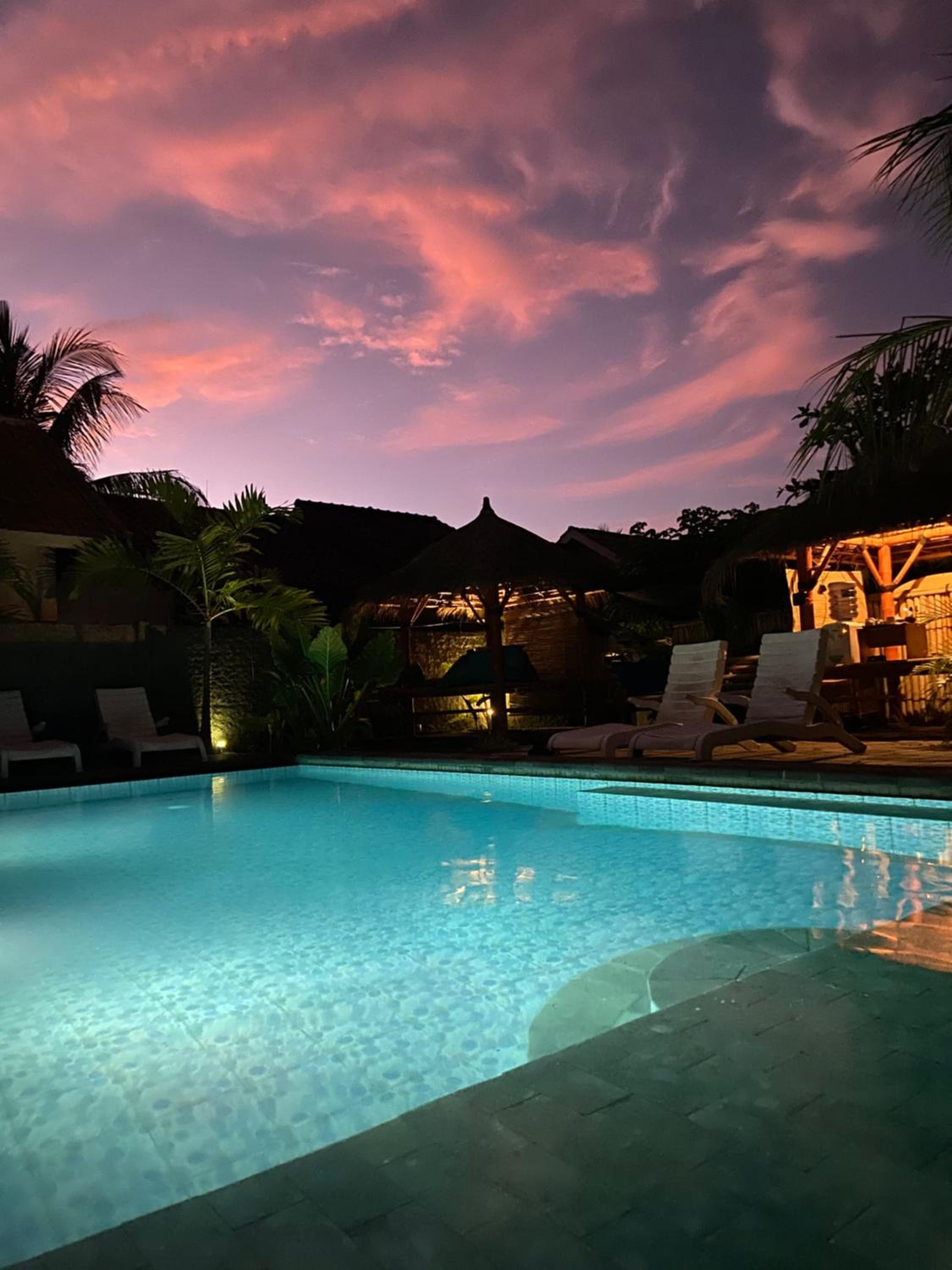Piscine envahie par une famille qui avait au moins réservé 4 bungalows et faisait comme s'ils etaient seuls et comme si l'endroit leur appartenait. Très désagréable.