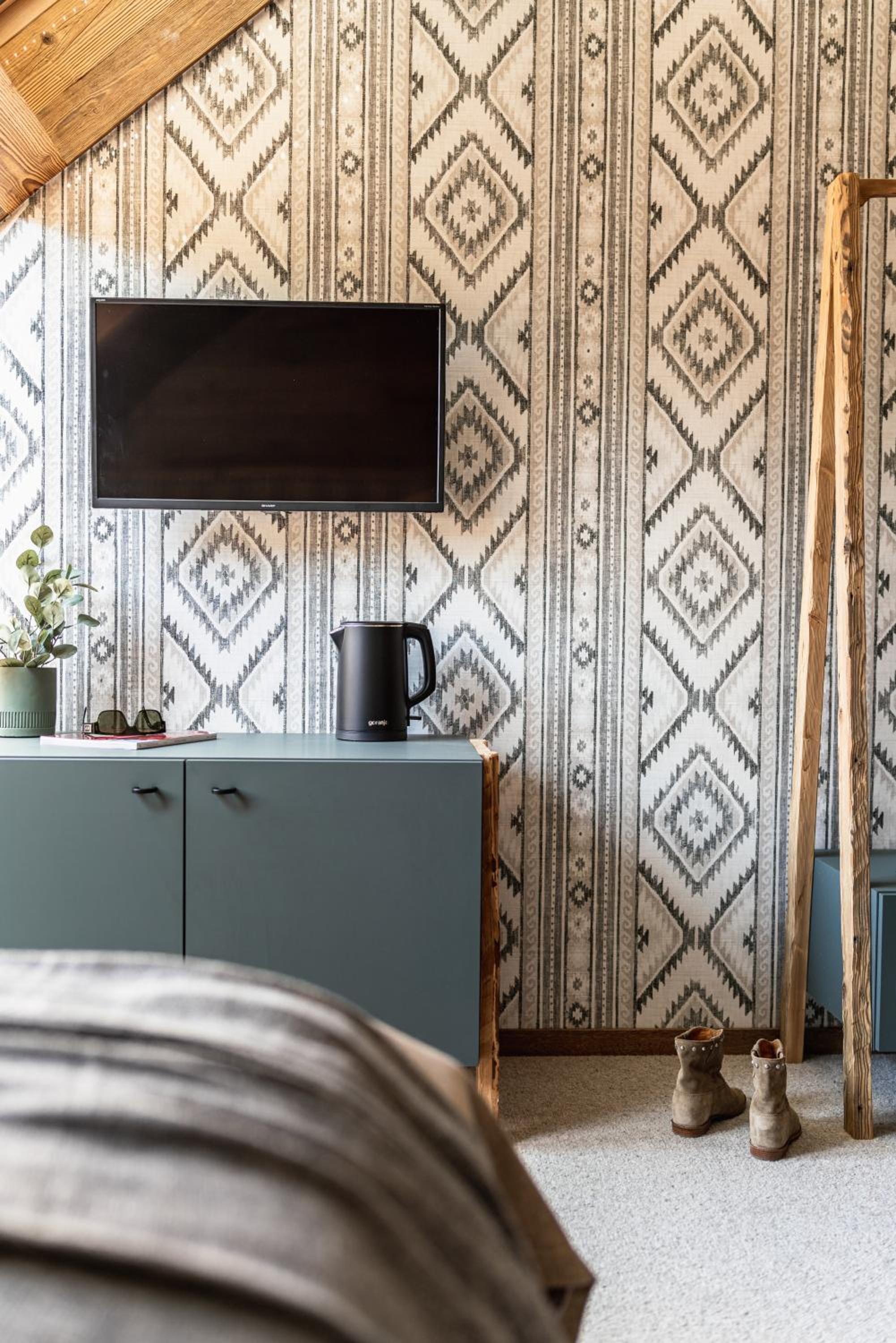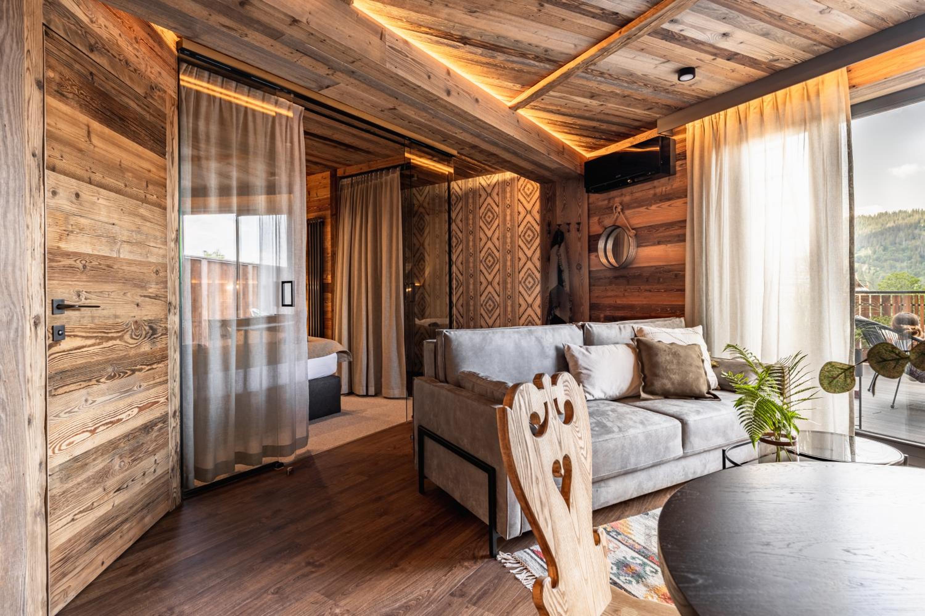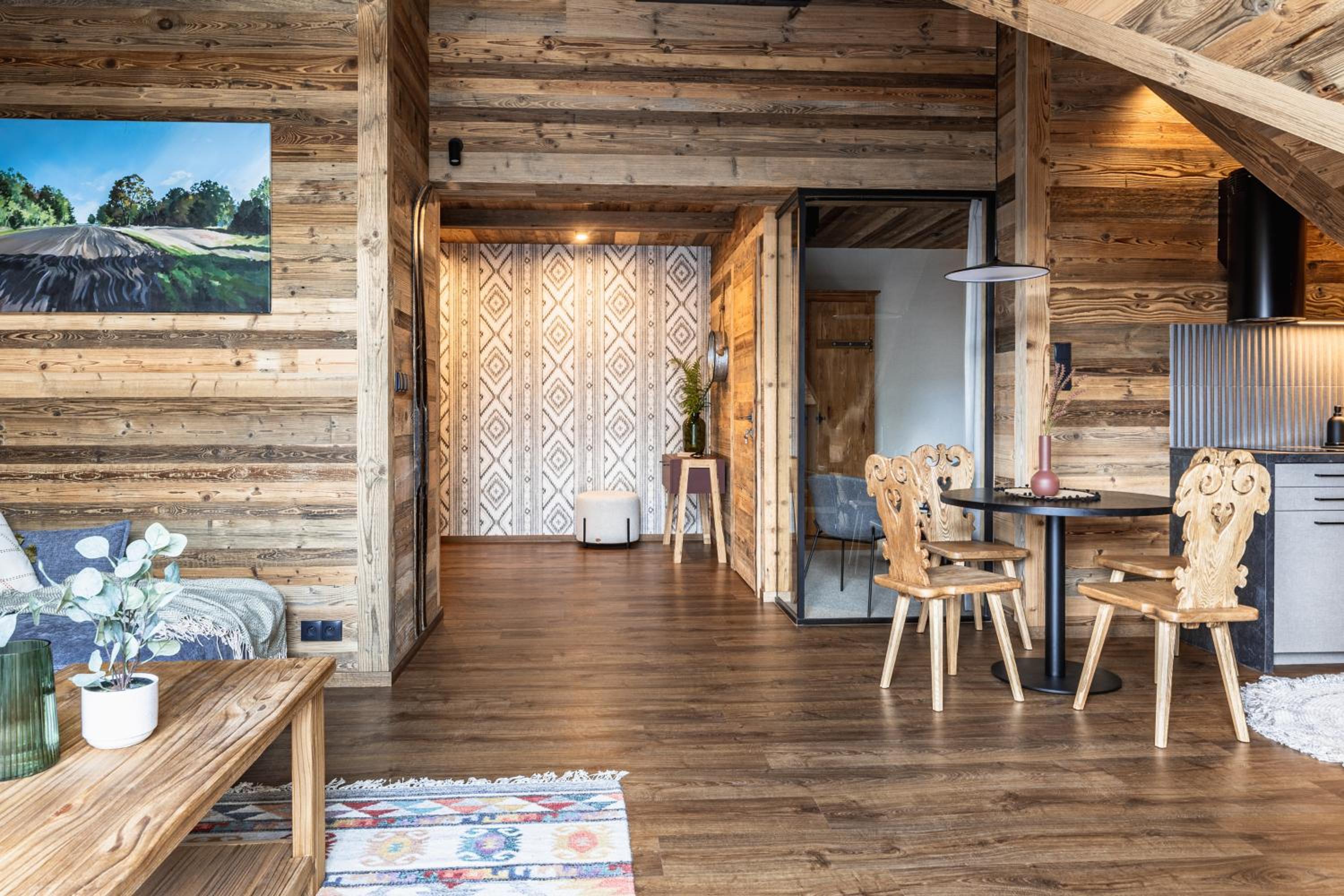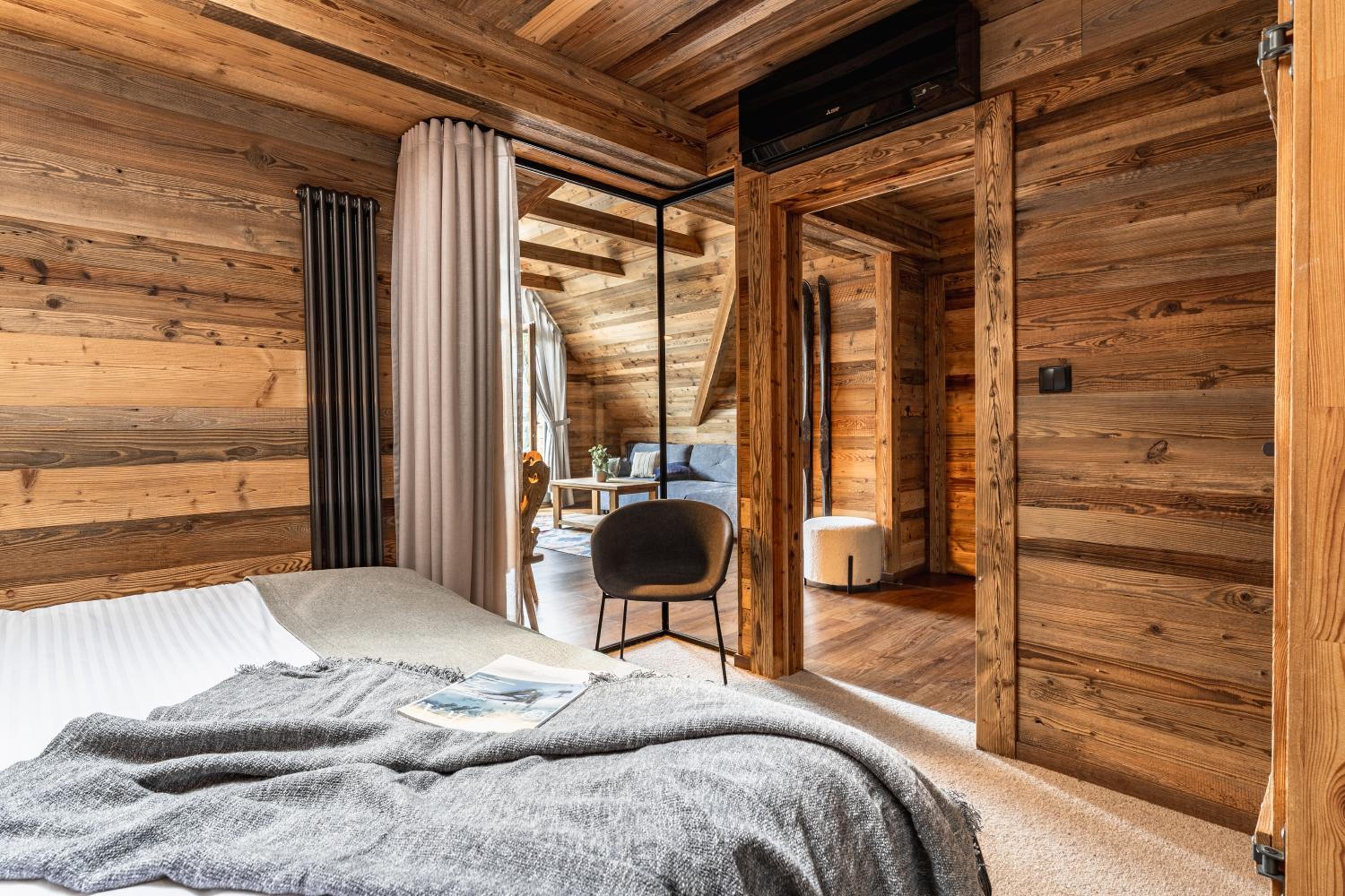Przytulne, rustykalne wnętrza, nawiązujące do lokalnego wzornictwa. Bardzo wygodna sypialnia