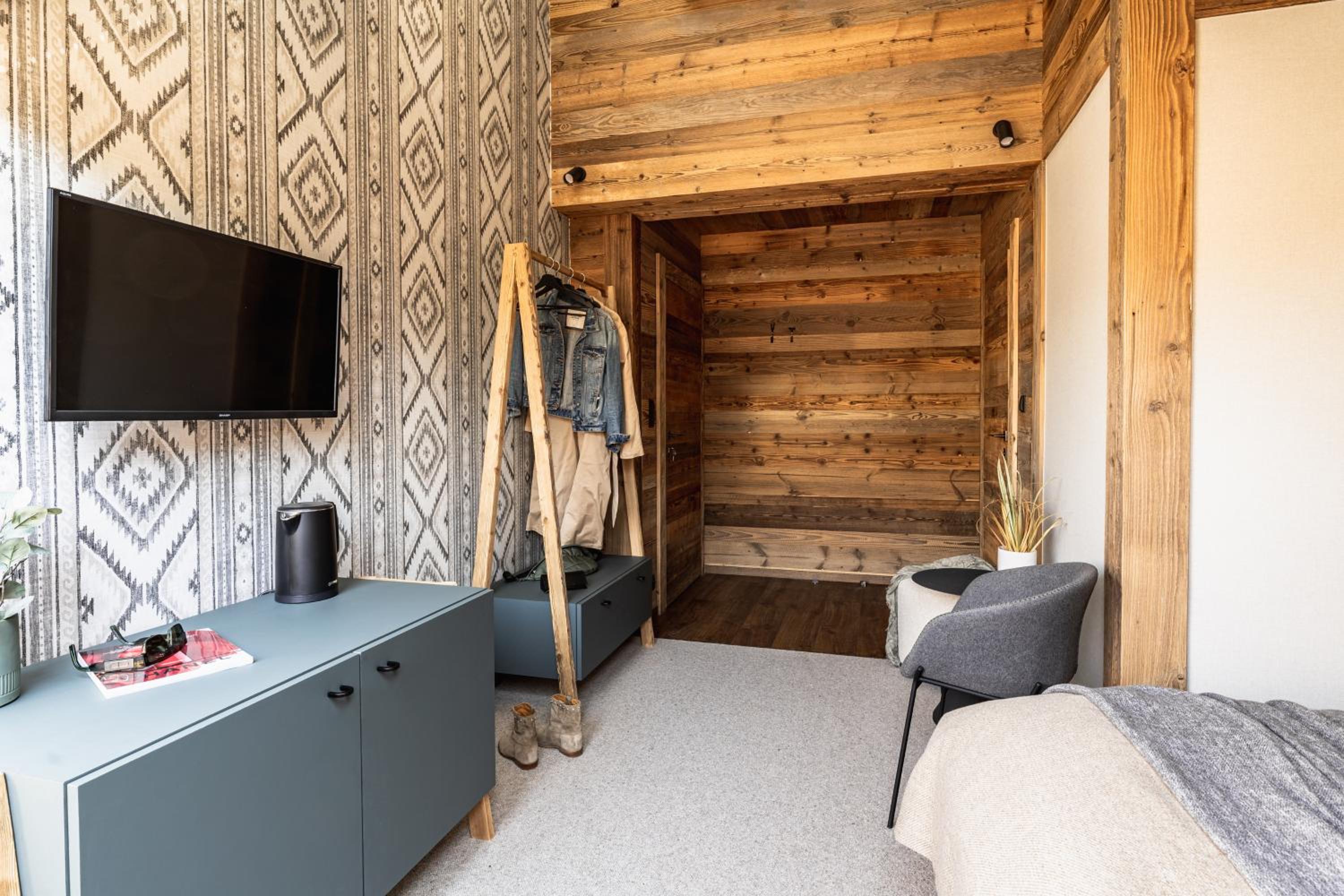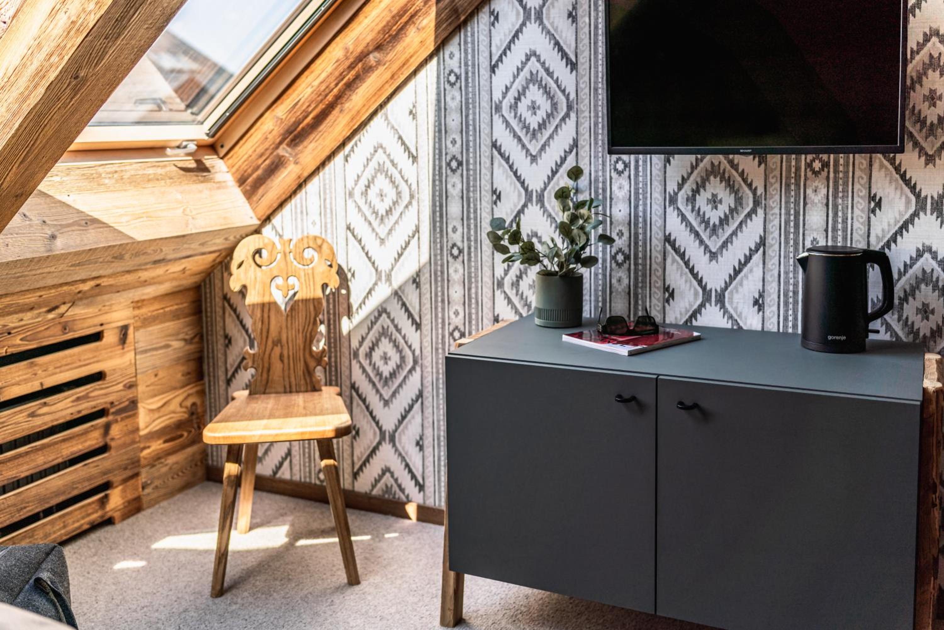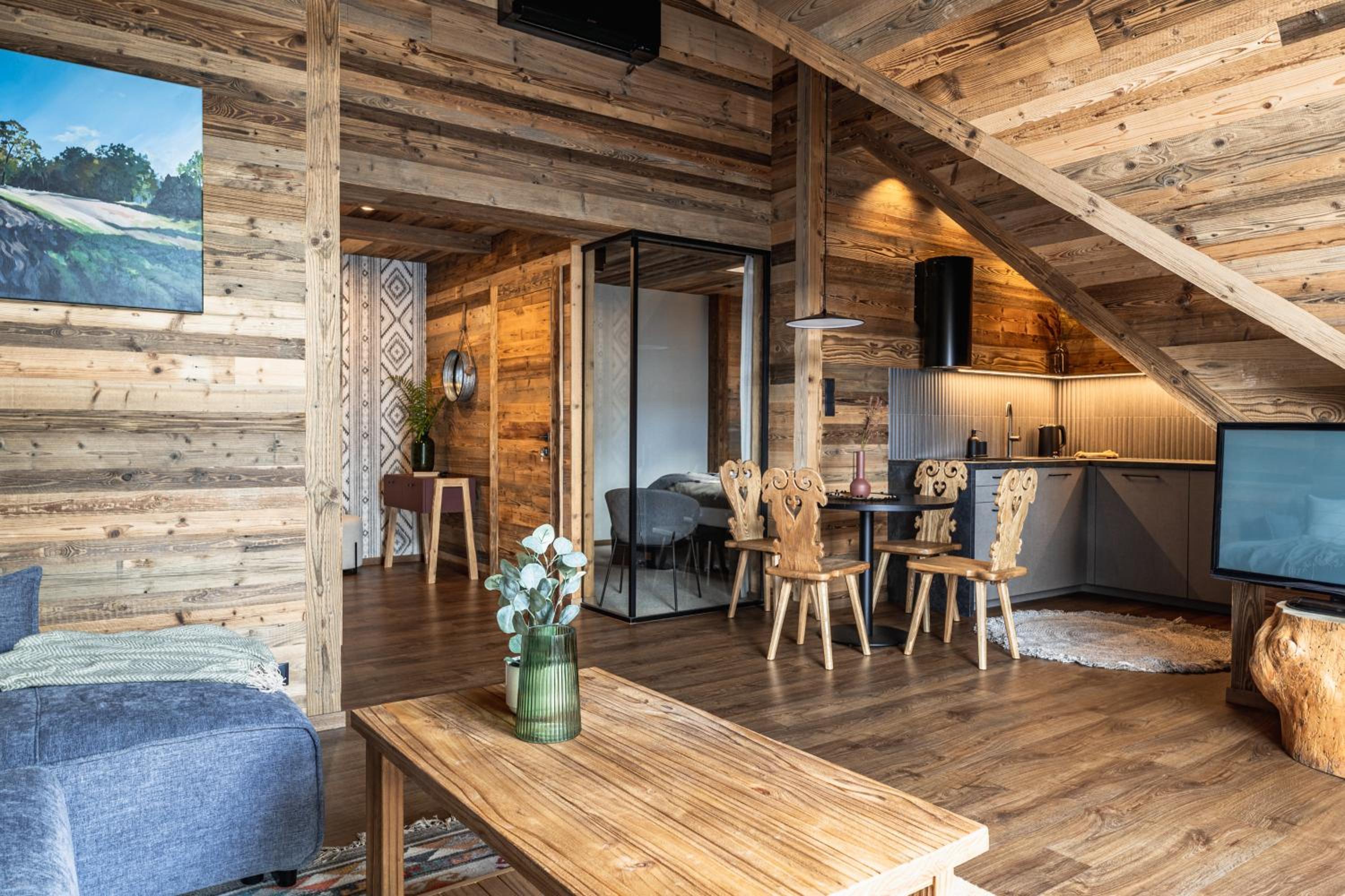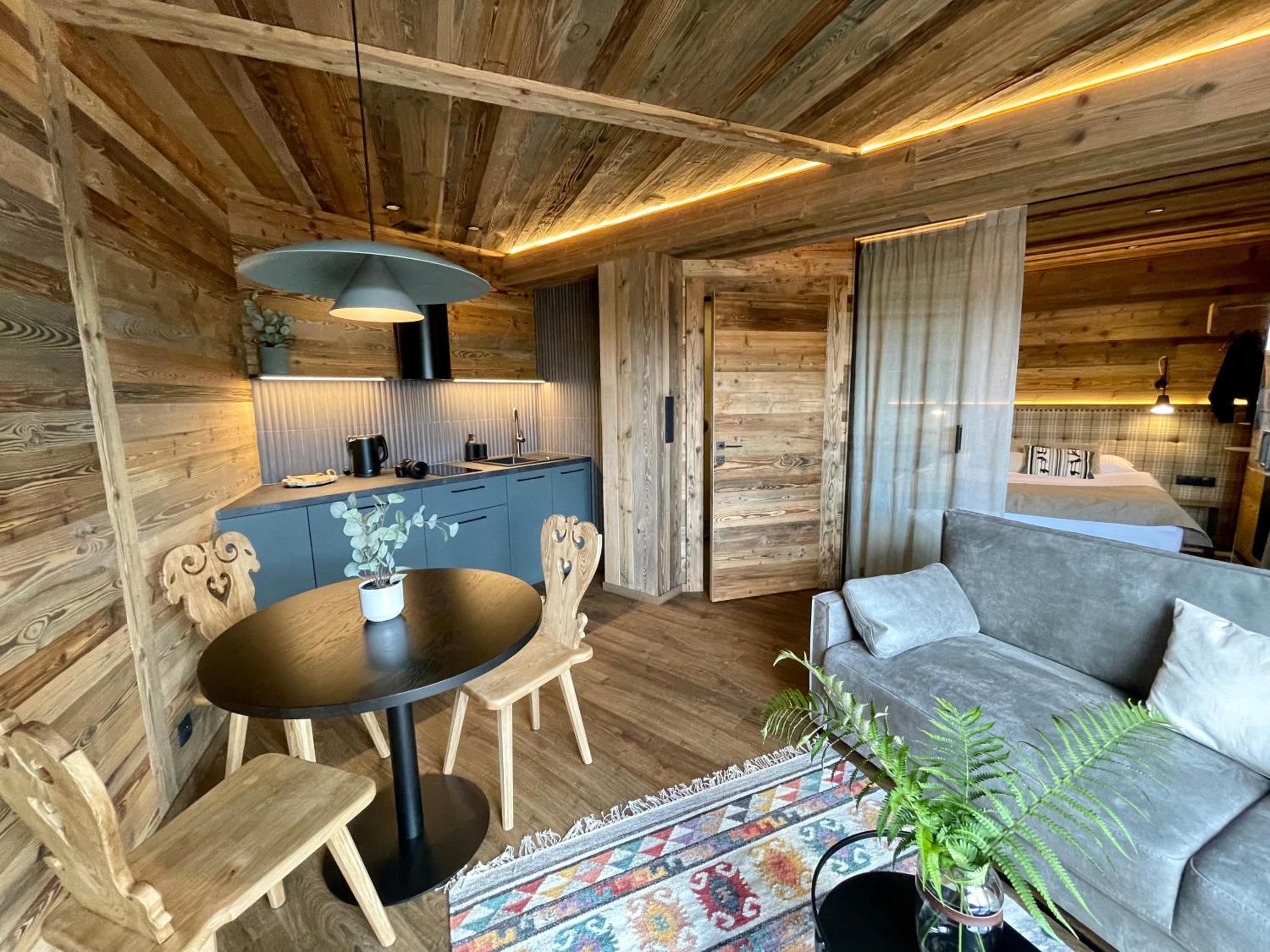 Przytulne, rustykalne wnętrza, nawiązujące do lokalnego wzornictwa. Bardzo wygodna sypialnia