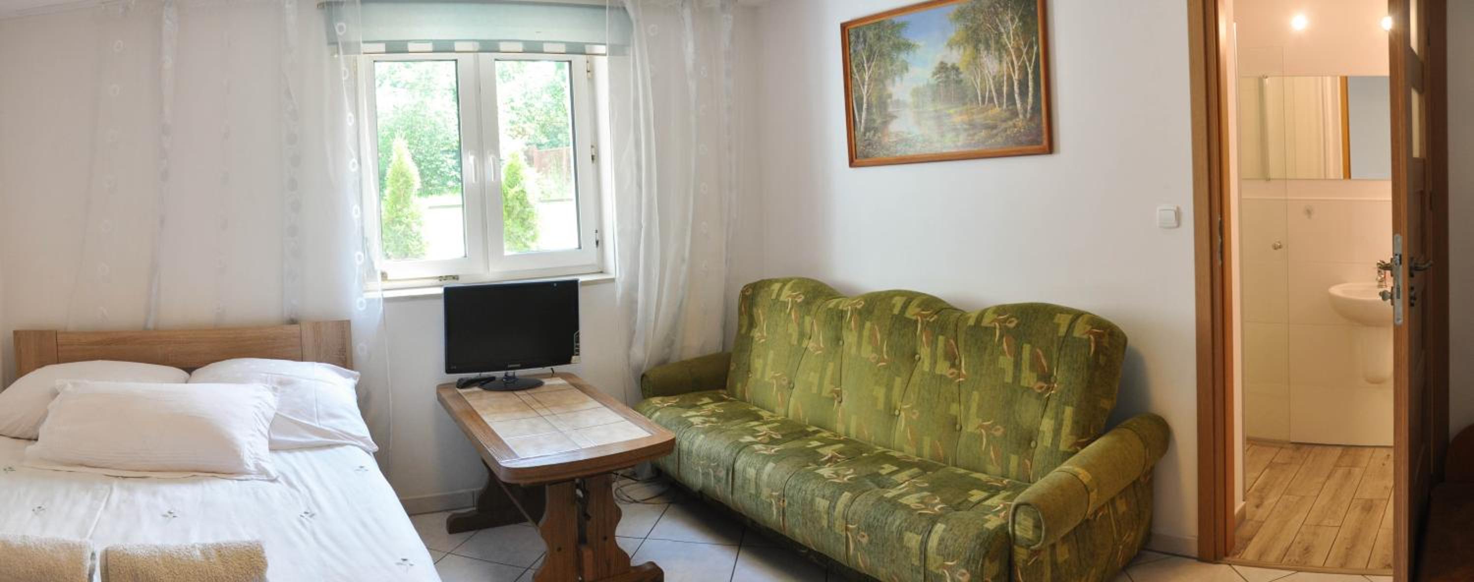 Cicho, spokojnie, bardzo sympatyczna,kontaktowa właścicielka. Czysto w pomieszczeniach i w pełni wyposażone pokoje, kuchnia. Można odpocząć w ogrodzie wśród zieleni.