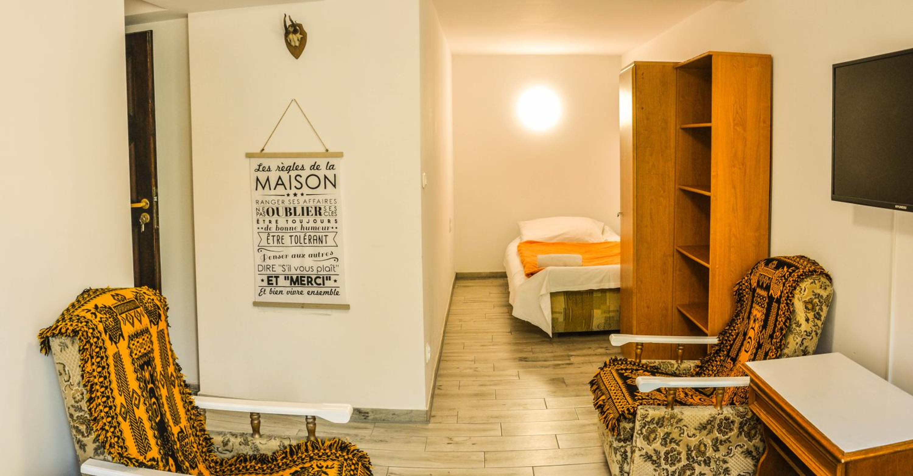 The facilities could be more modern…quite old fashioned rooms with a carpet on the wall. We got the room next to the common kitchen and were really noisy in the morning, because doors are super thin. Also we had the private bathroom, but it was reachable not straight from the room, but also from common corridor.