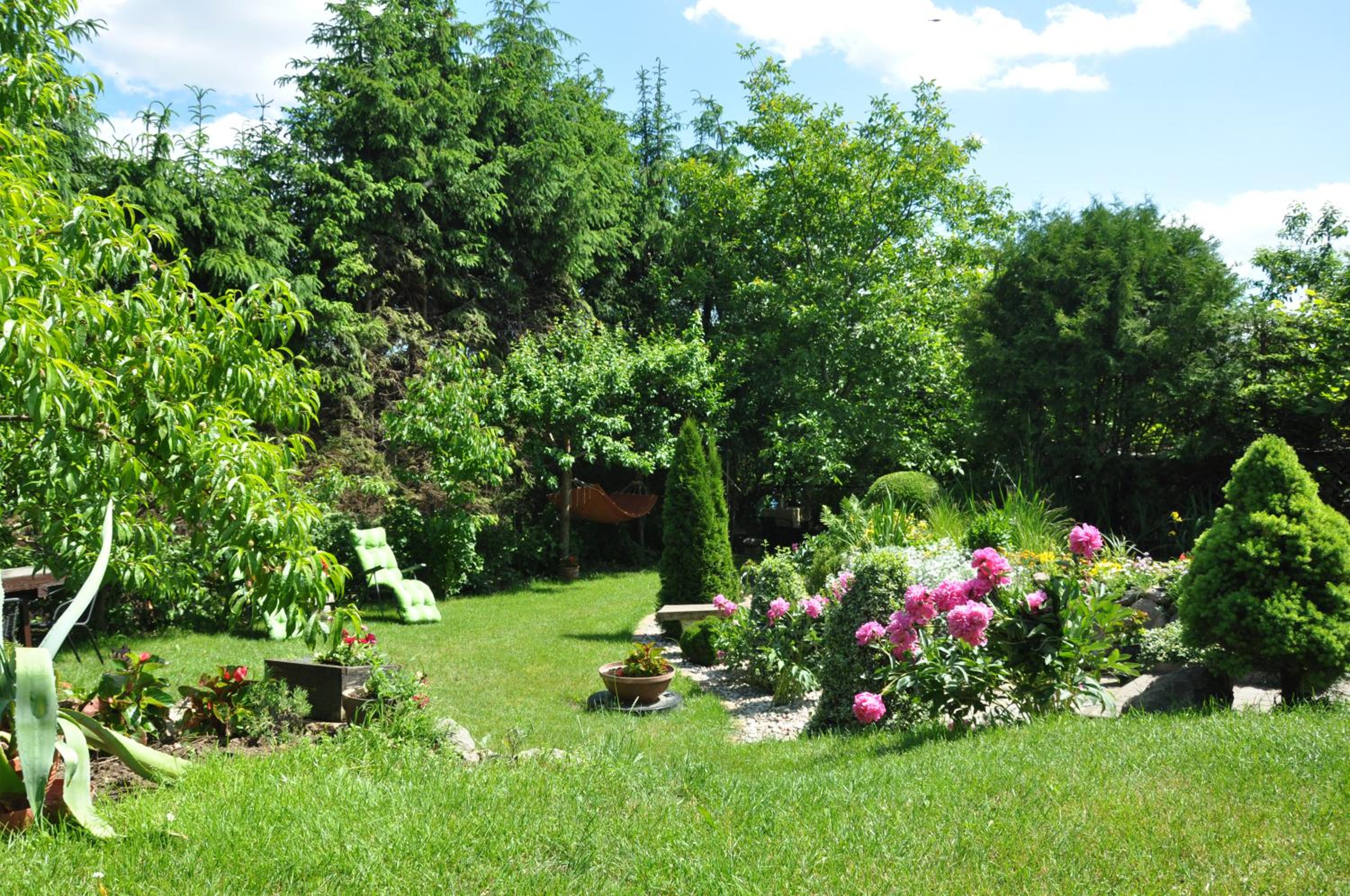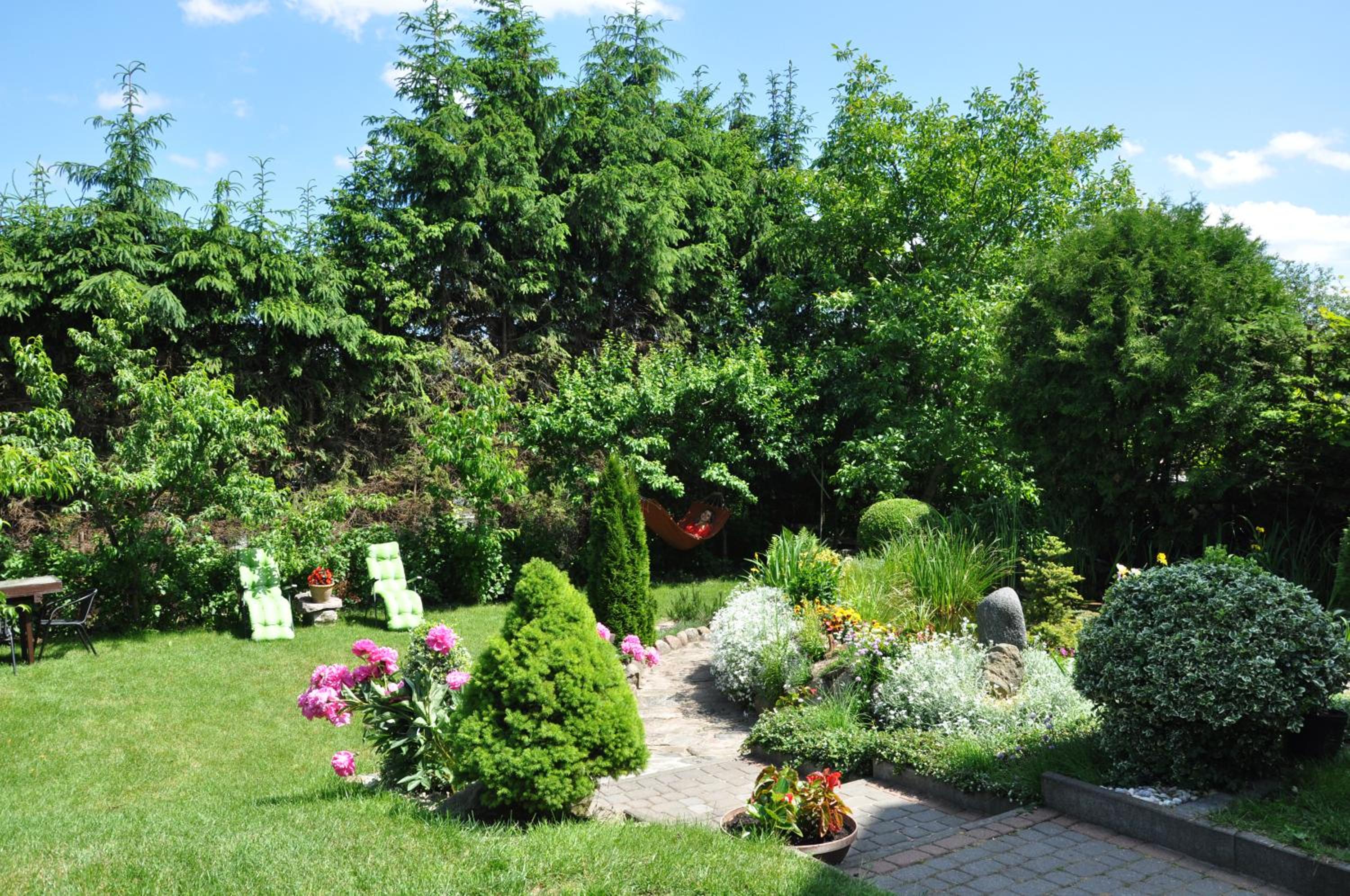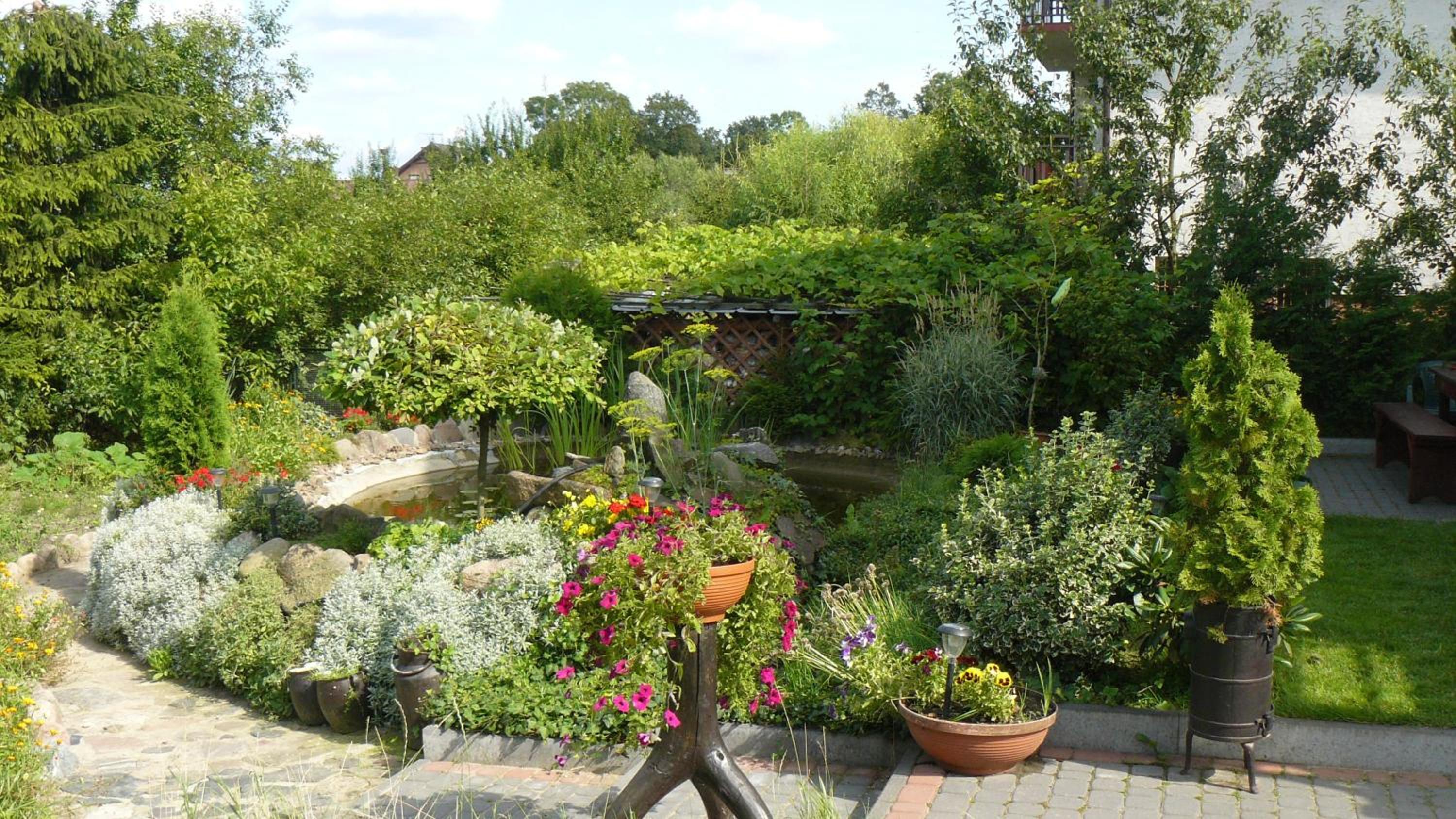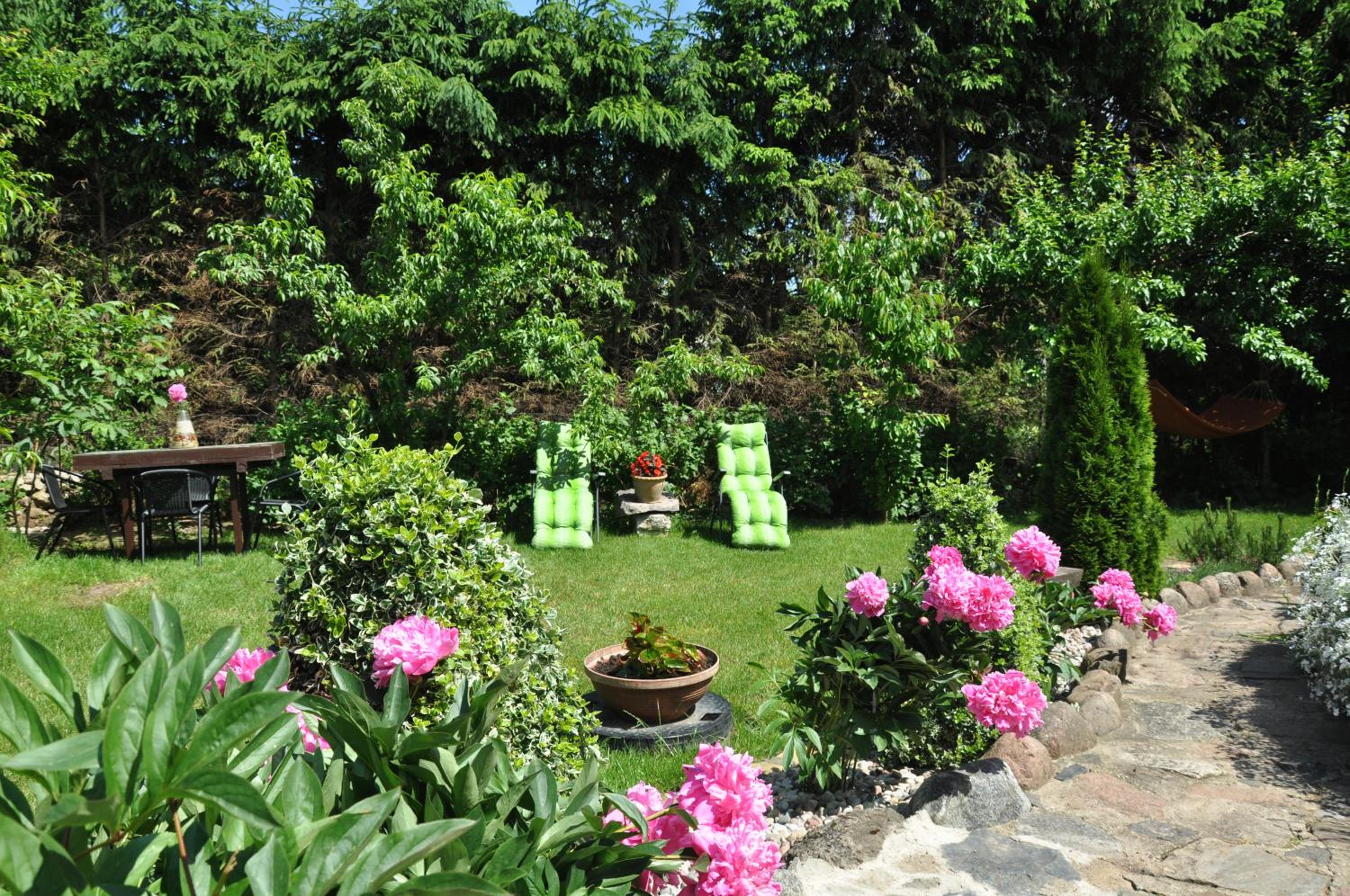 Garden Oasis: Step into a serene setting at Oaza U Tadeusza, where a lush garden and a tranquil pond await to greet you upon arrival.