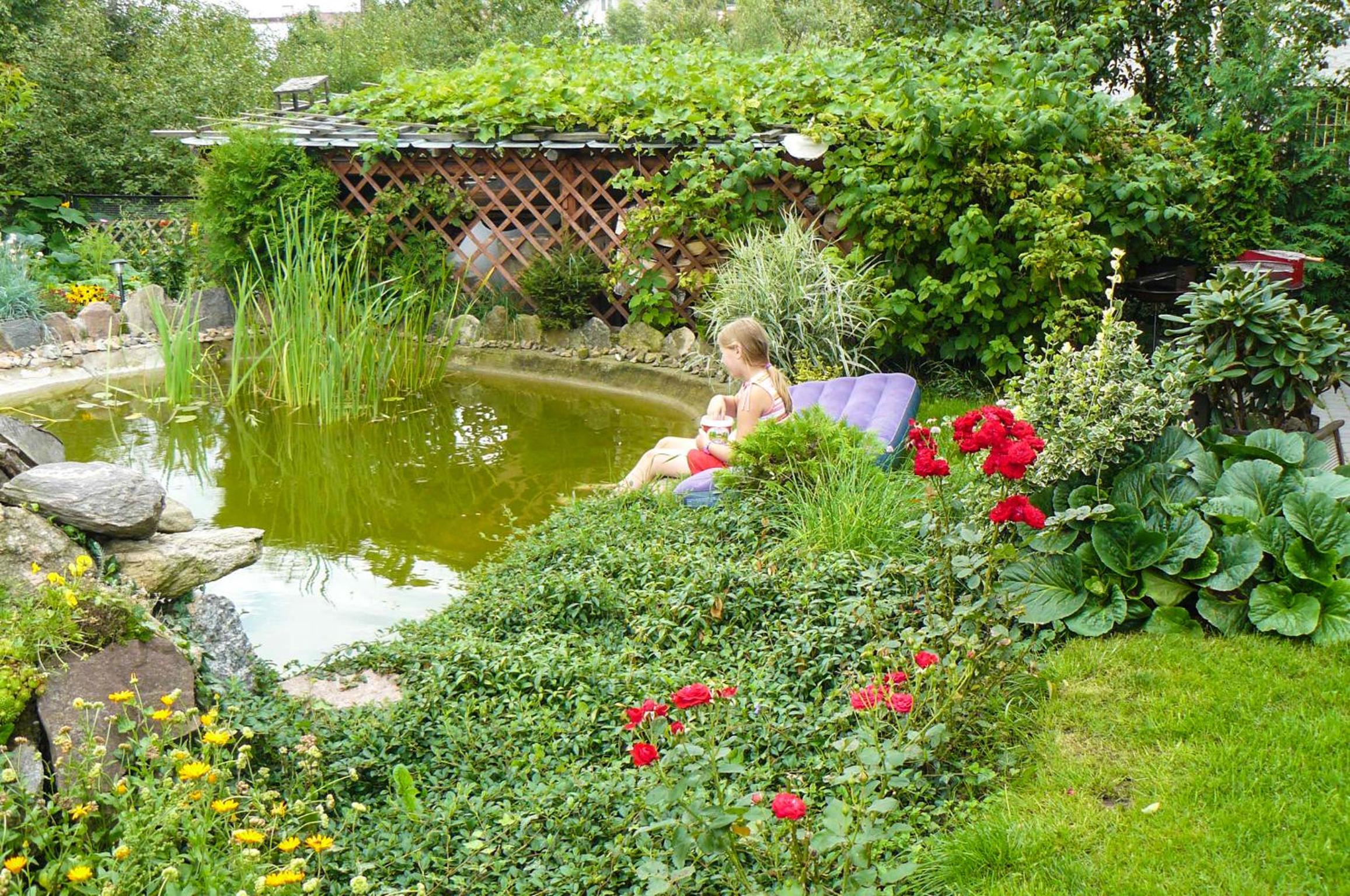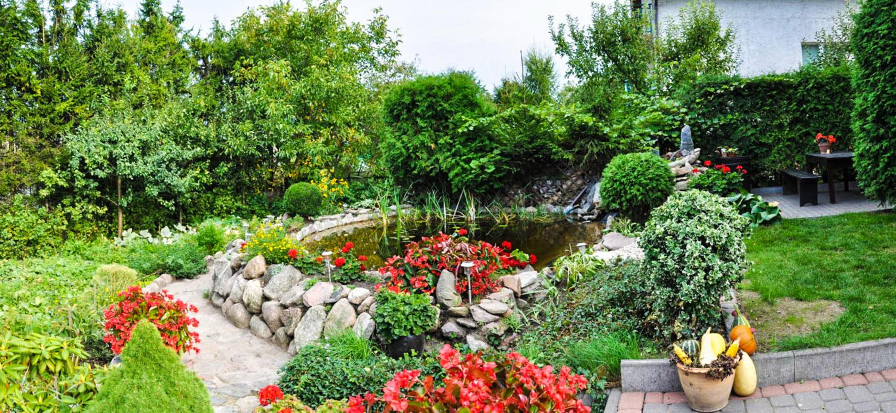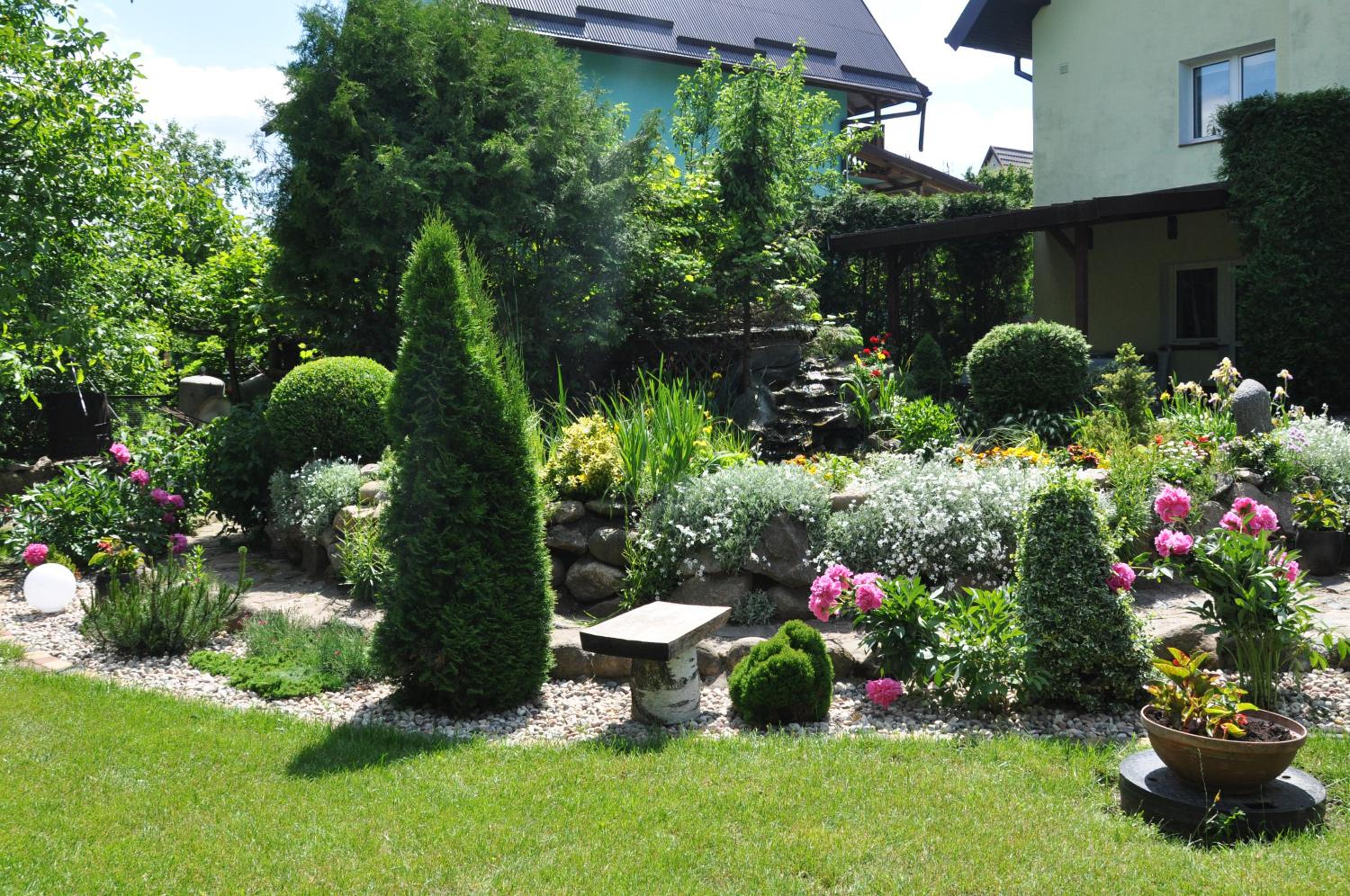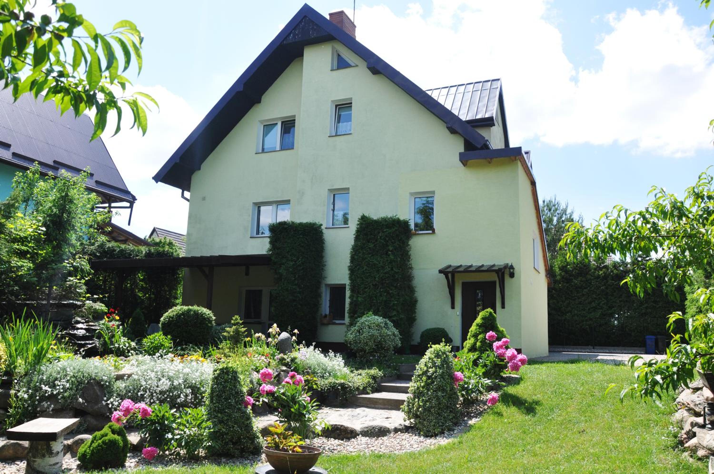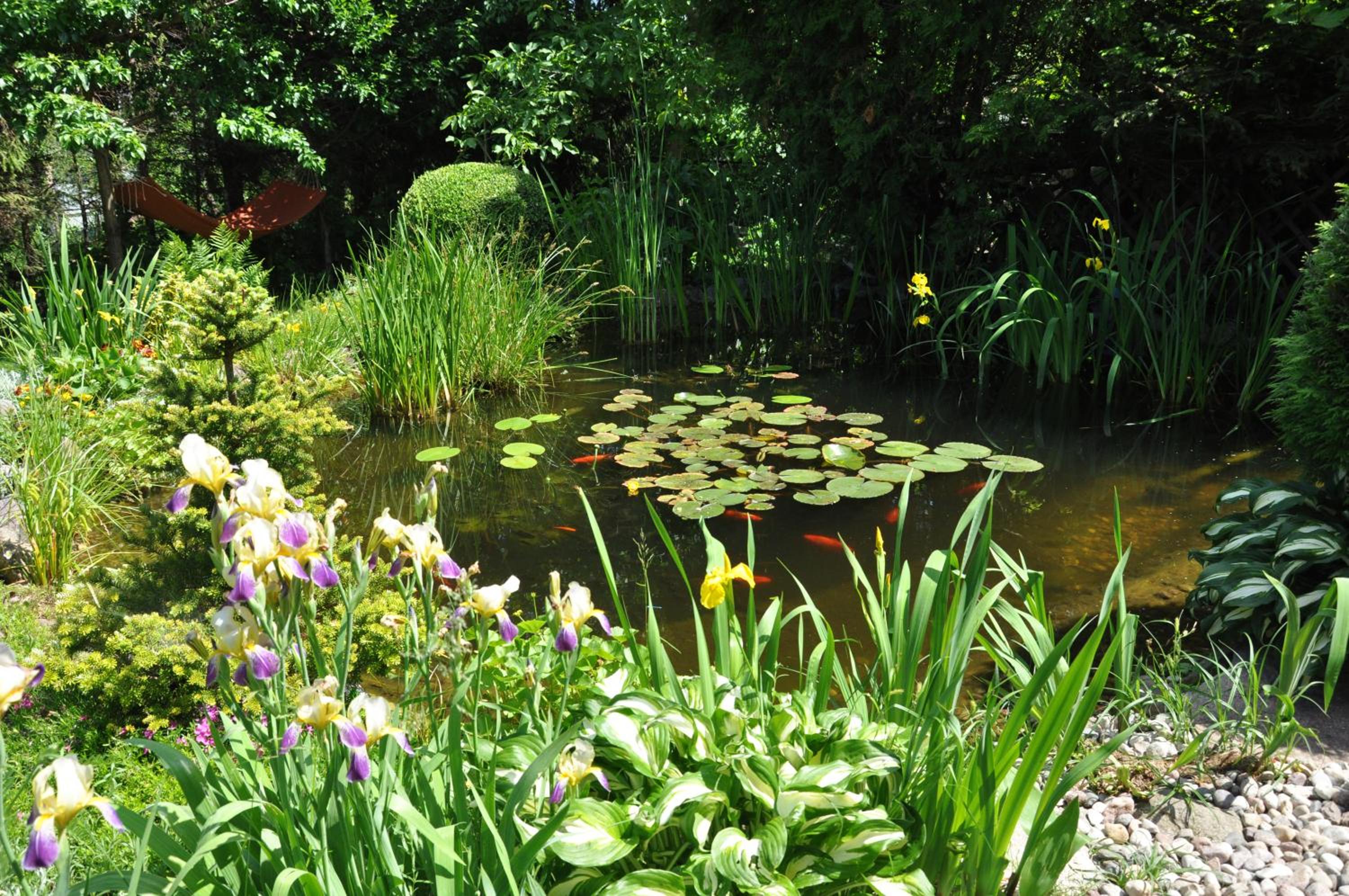 Garden Oasis: Step into a serene setting at Oaza U Tadeusza, where a lush garden and a tranquil pond await to greet you upon arrival.