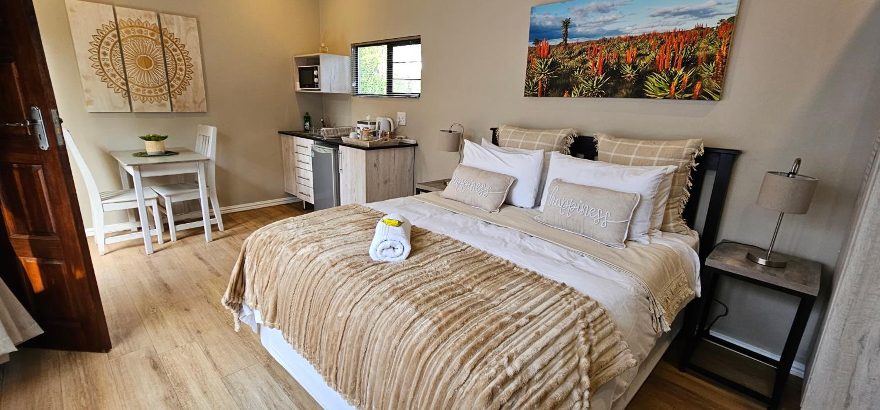 The host allowed us to check out at 11am as arranged and we appreciate that, and there was enough coffee for us in the room as its very cold in Botha Hills