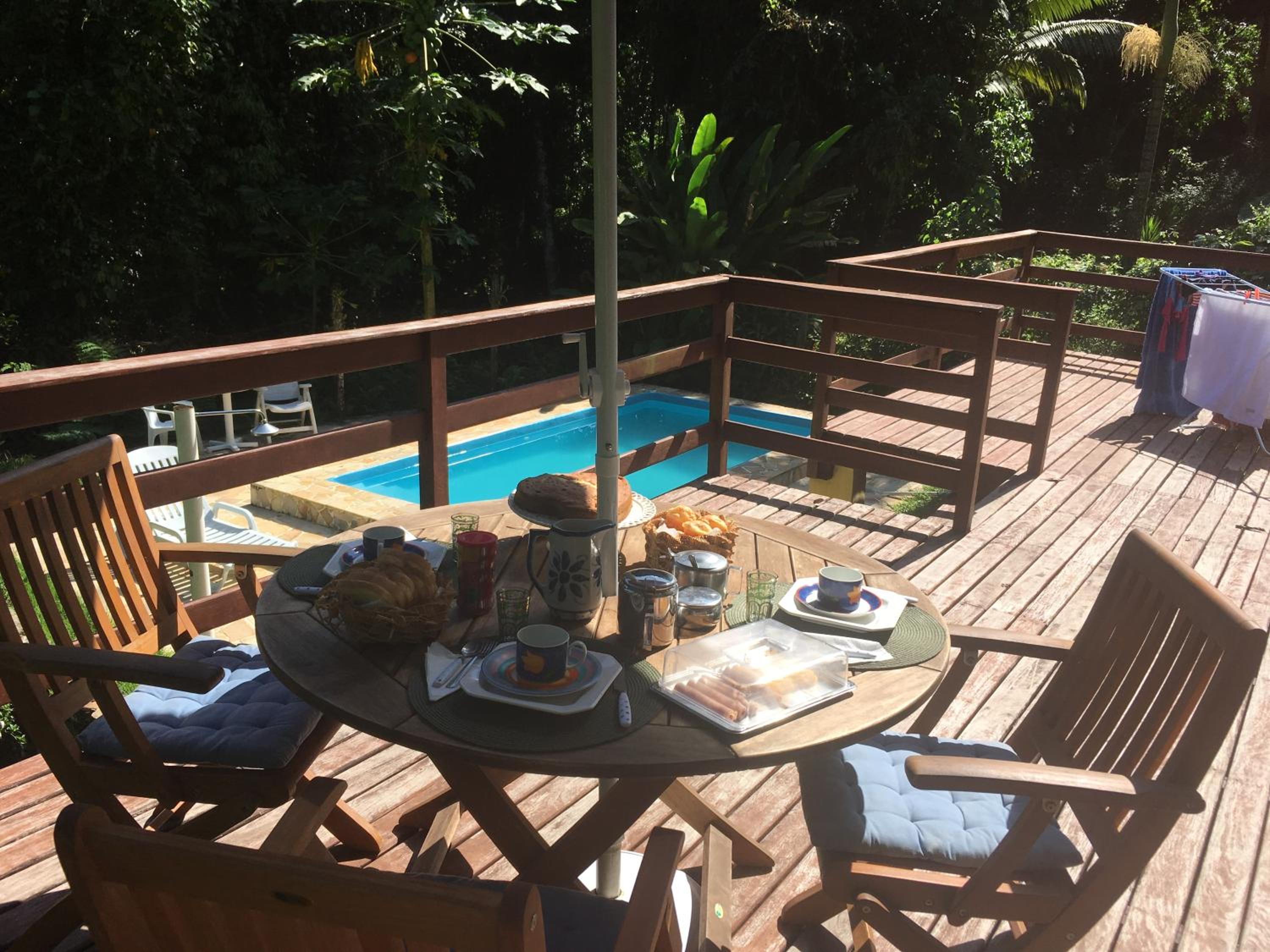 Pousada Casa da Montanha, located near Tartaruga Beach, offers a unique experience with a private beach area and a pool that overlooks the stunning surroundings.