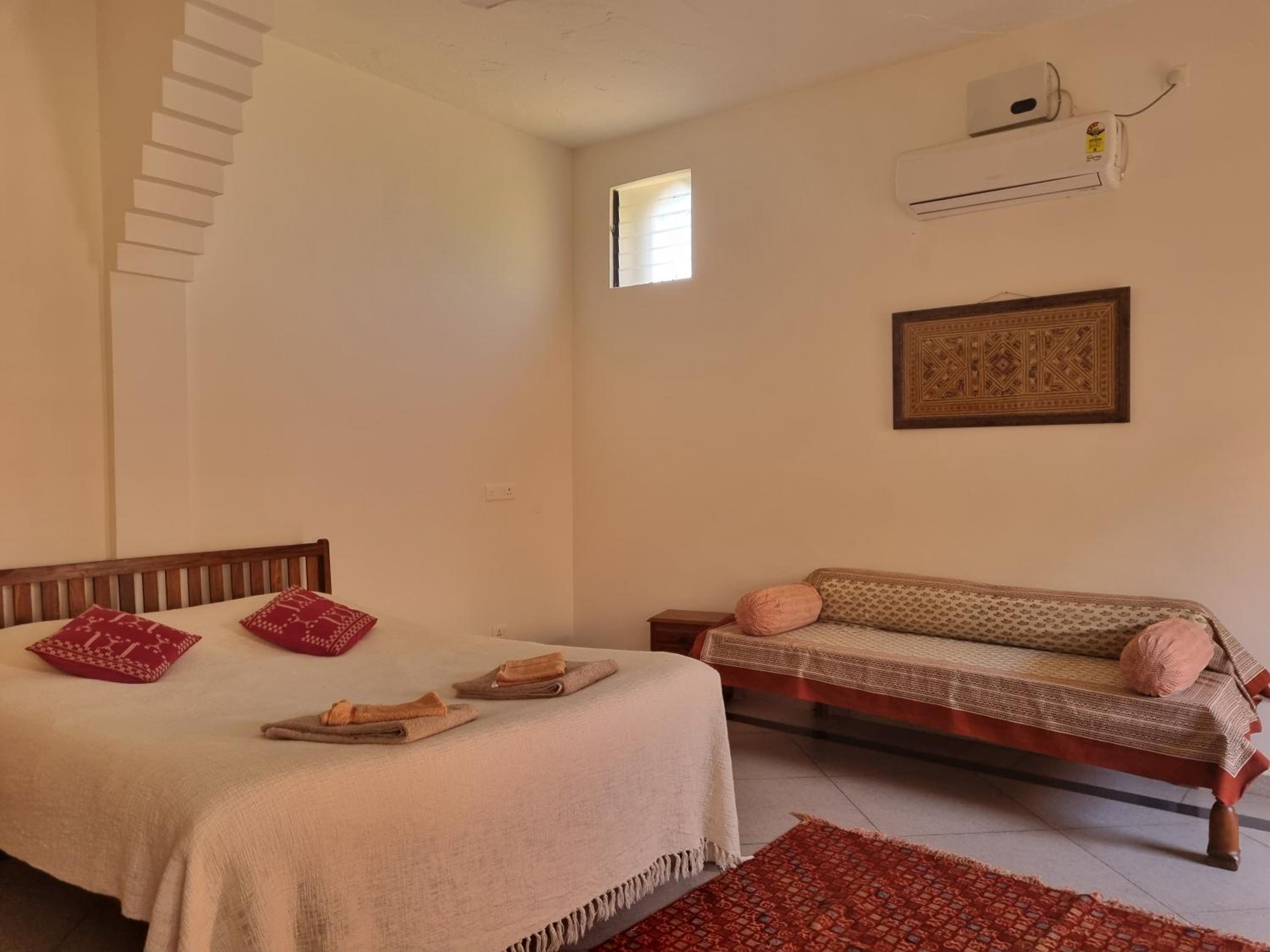 This stay has been a highlight in our India trip. The property is set in the families small organic farm and is tranquil and beautiful. Care has been taken to provide a practical and aesthetic experience. The rooms are stunning, cleanest I have experienced in India and everything works. The bed was so comfortable with soft white sheets and gorgeous simple decorations.