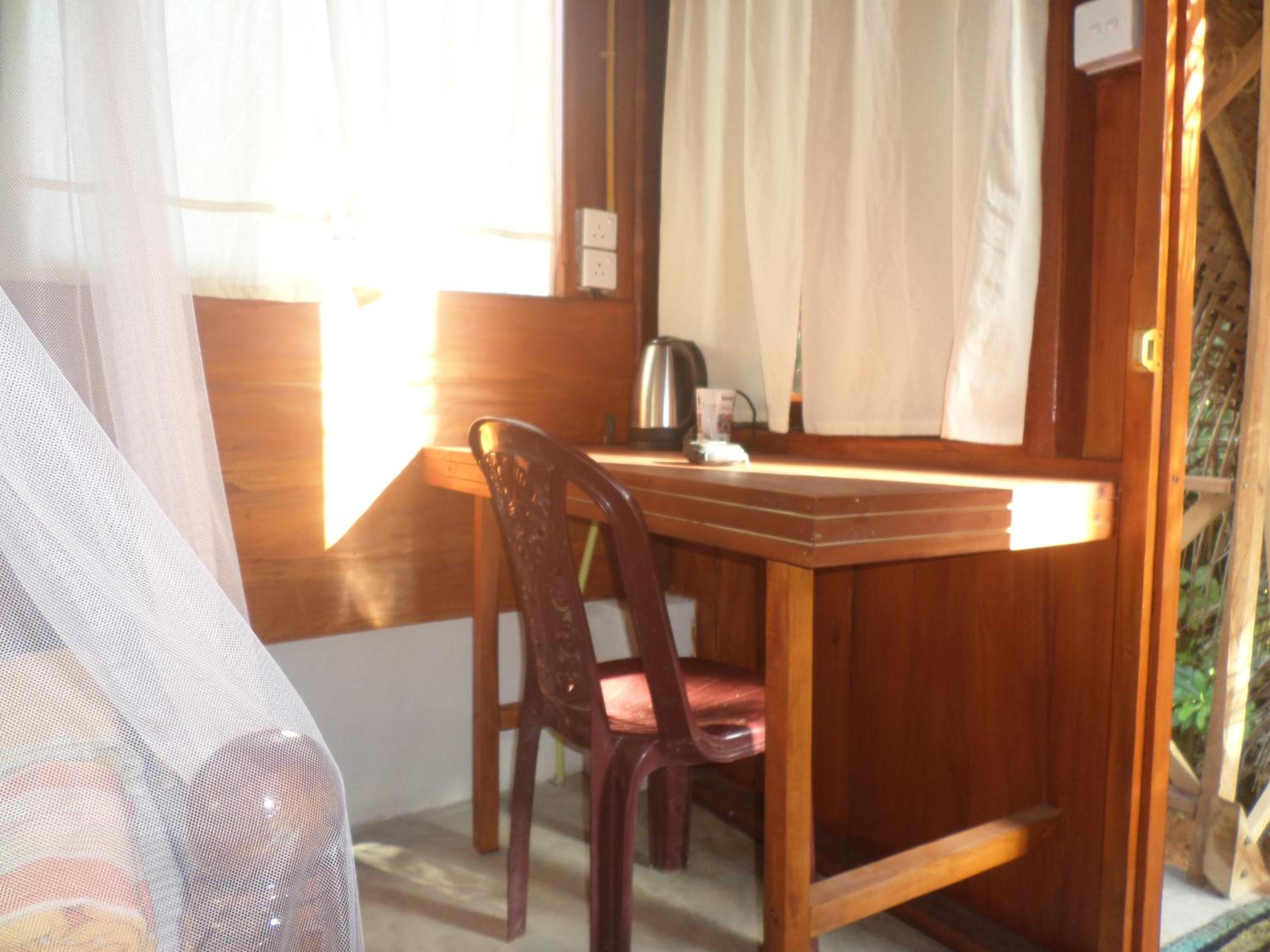 Geen waterkoker, veel apen rondom je plek. Wij maakten een pakje tuc open en meteen werden we aangevallen en volgende ochtend ook terwijl we alleen de deur open deden. Personeel hielp hier wel goed bij.