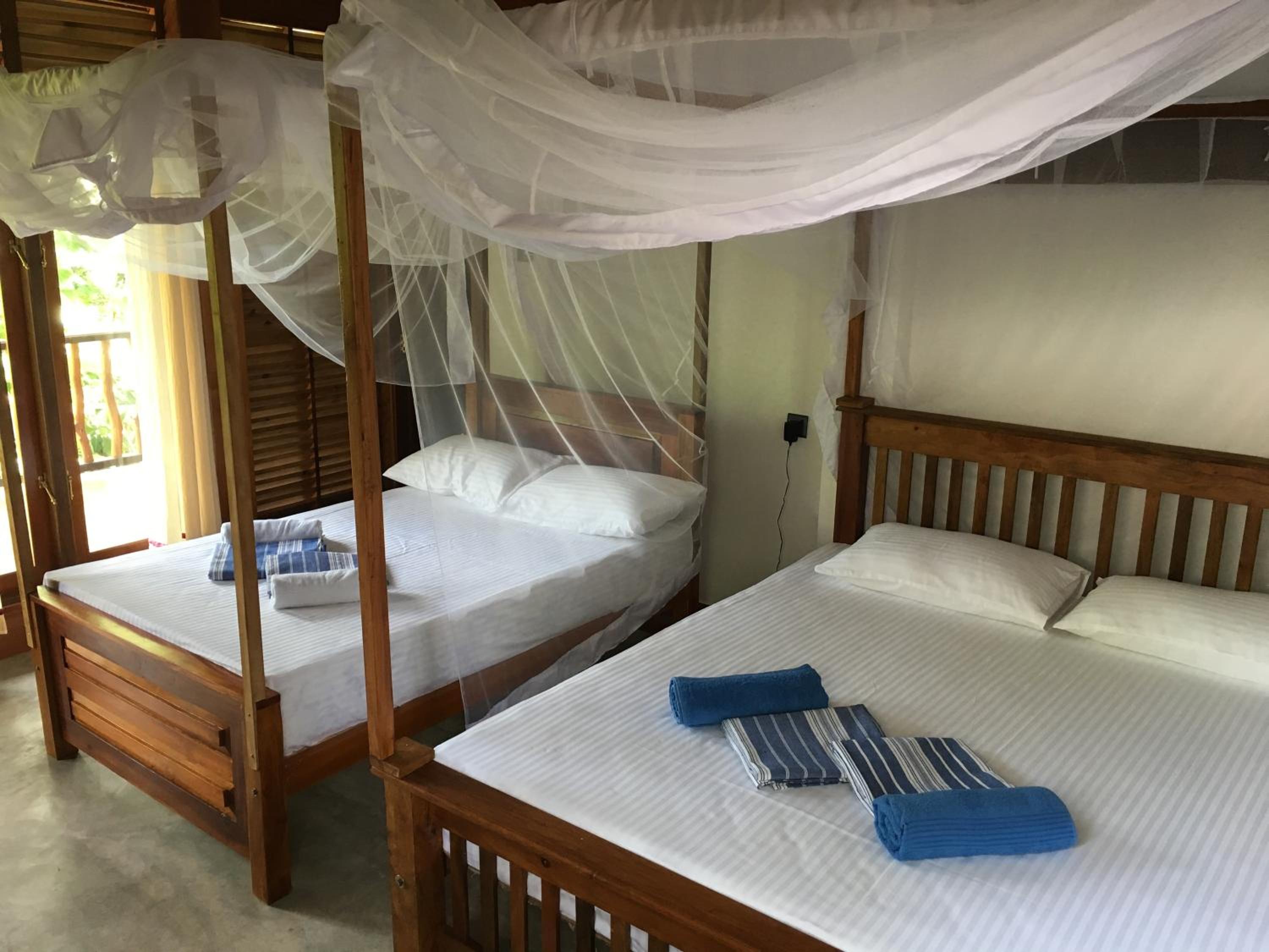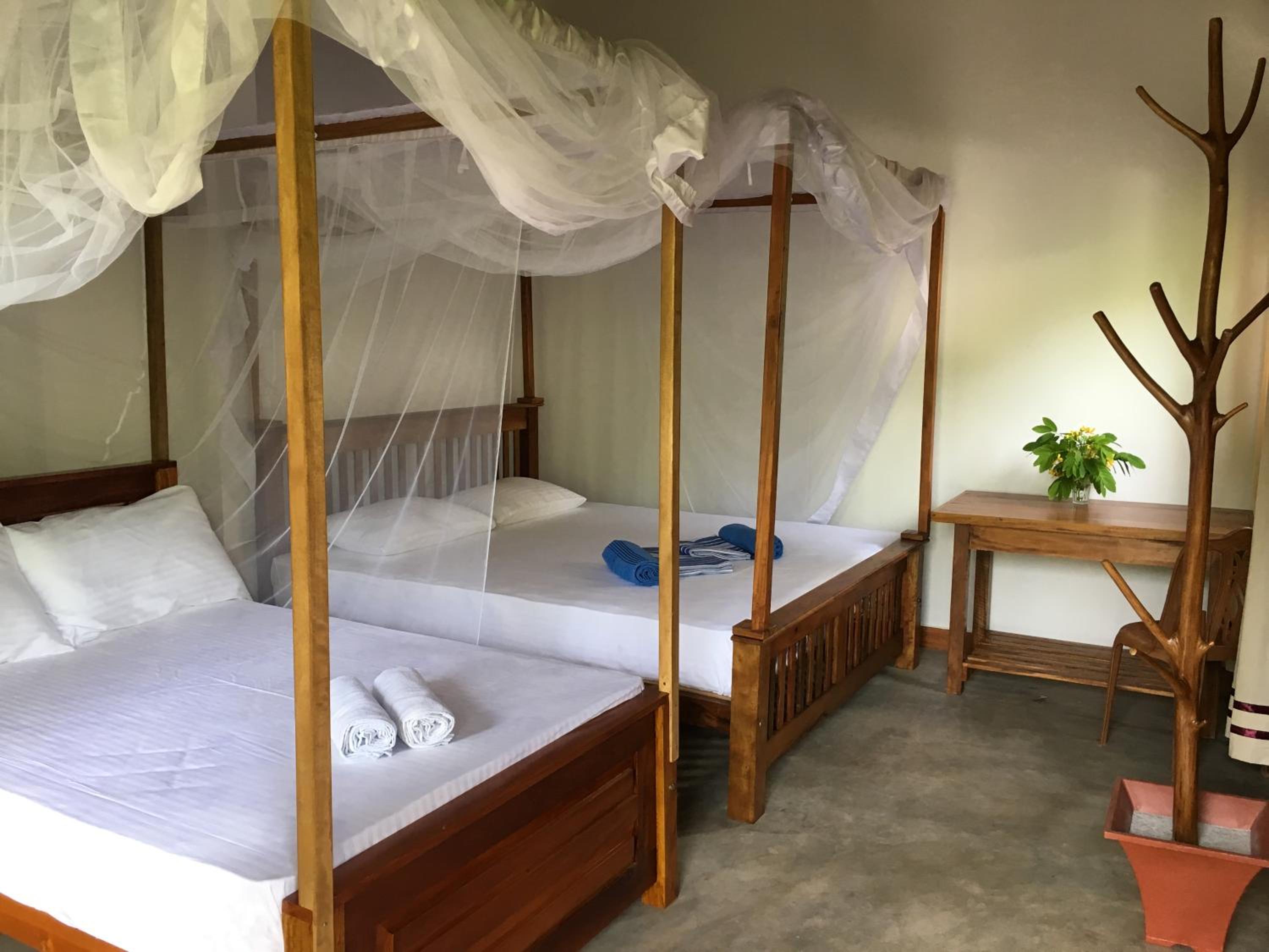 The accomodation was awful I had to leave earlierand book something else because I wasn't able to sleep at this place at all... The bed was a joke , cockroaches everywhere mosquitoes everywhere it was completely open above door and windows and the noise there was construction right next to my room Tuk tuks and you could hear everything! Also it wasn't that cheap for what it offers..Horrible if you want to have nice time in hirikiteya don't go to this place.