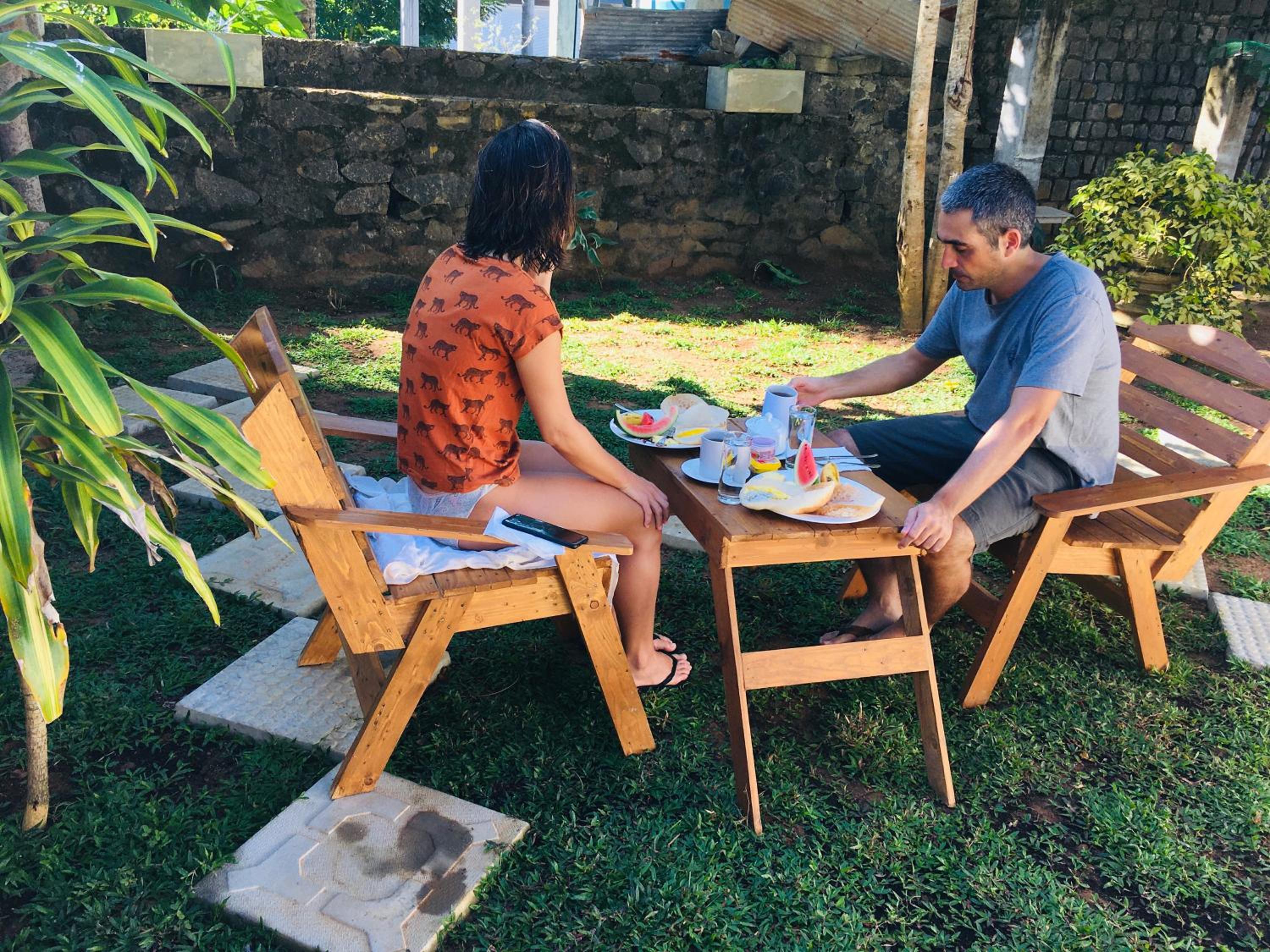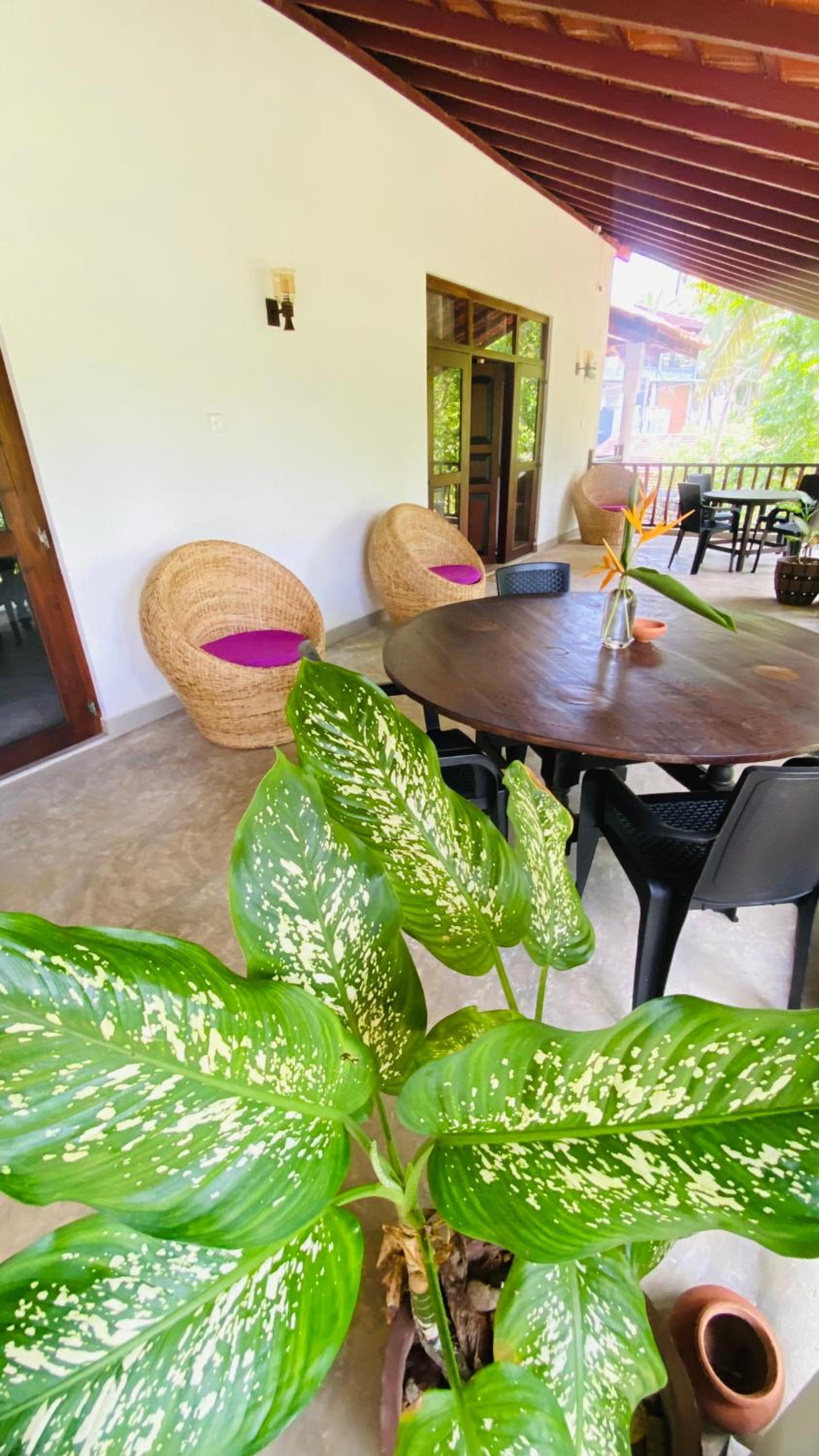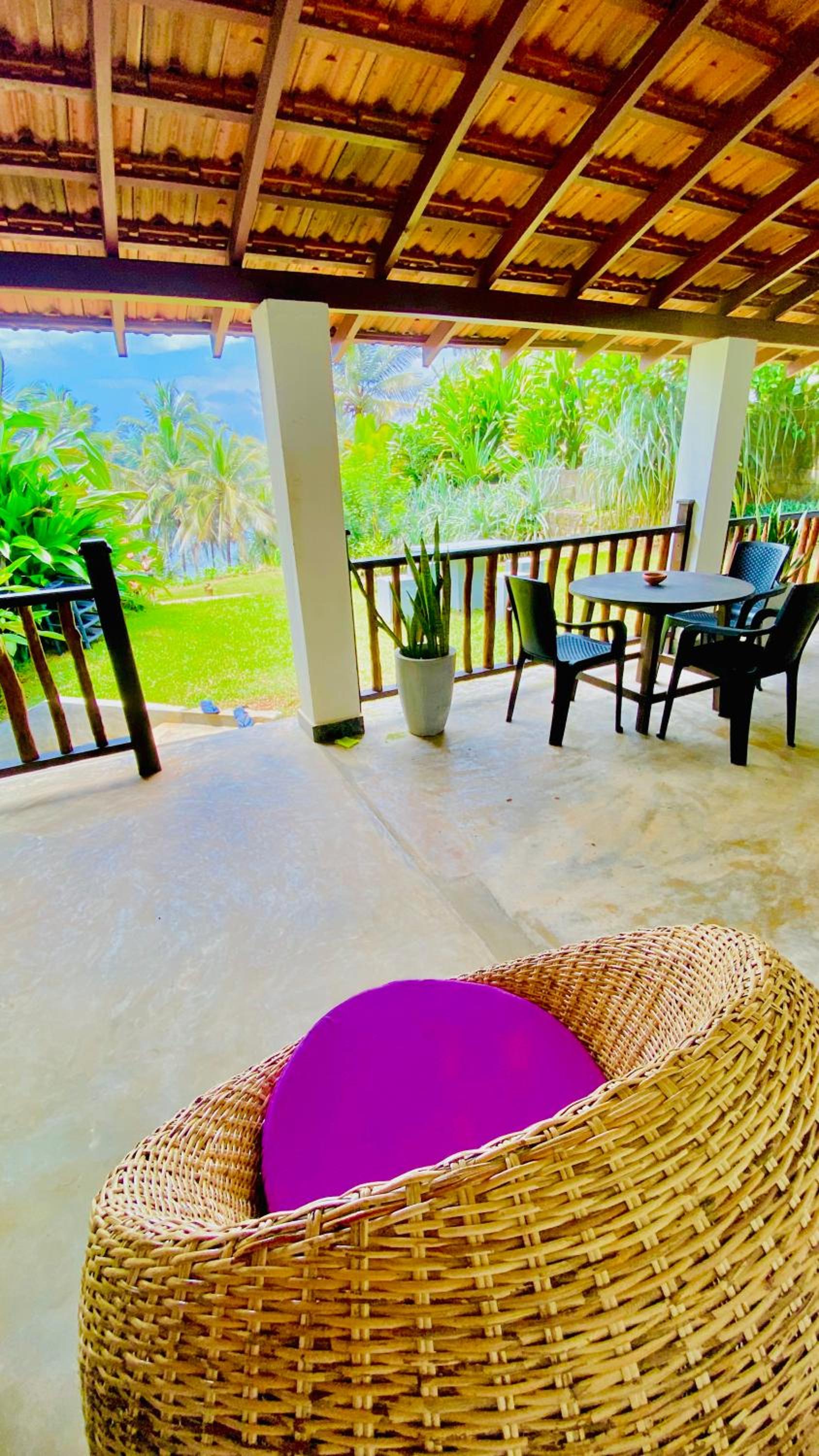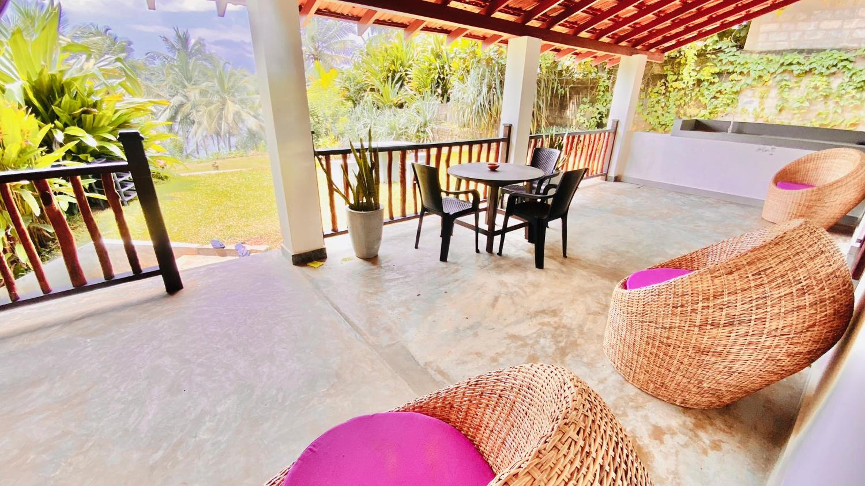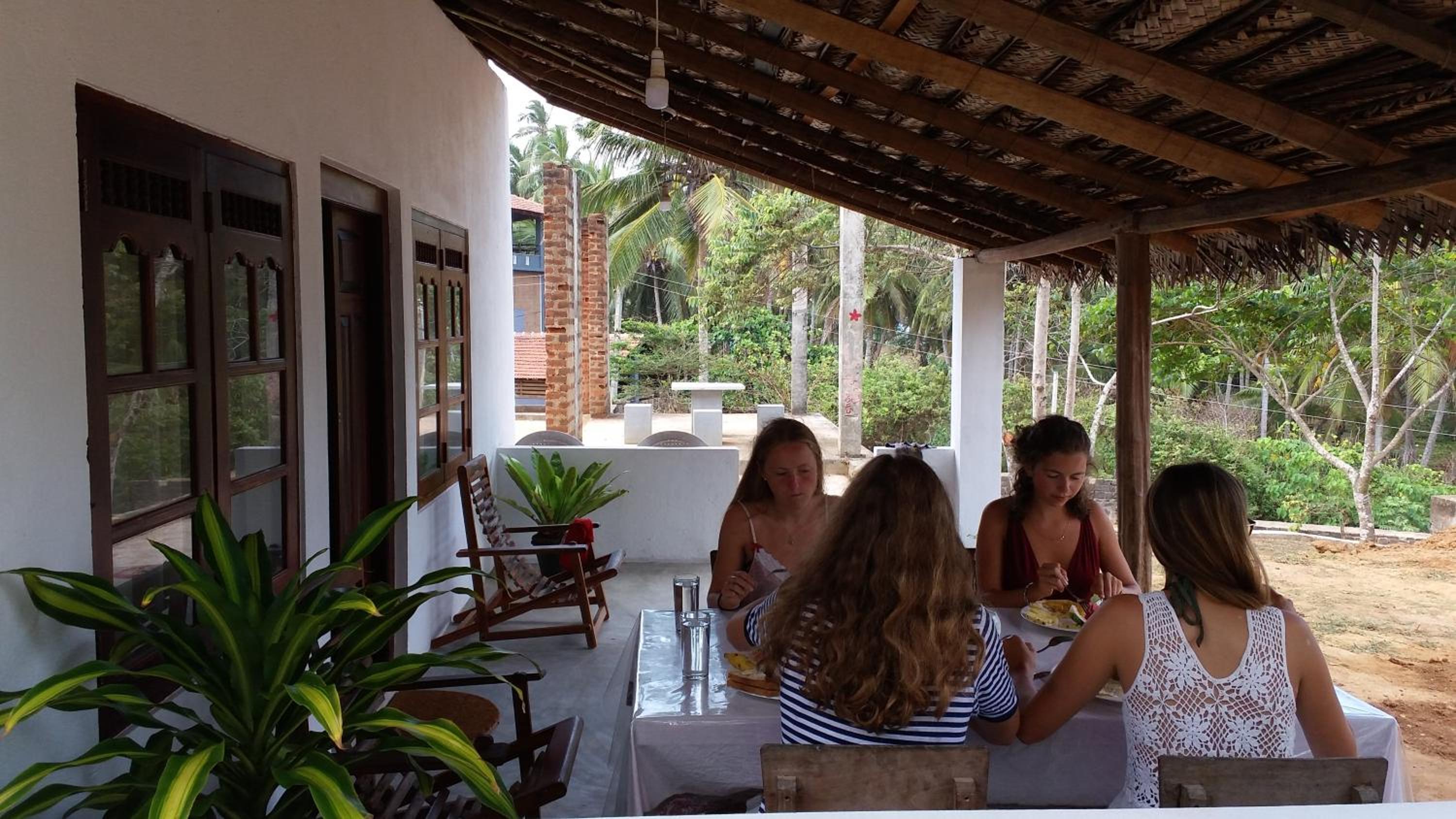 This place is just lovely! The beautiful green garden, where you can have breakfast and dinner, overlooks the surf spot in Hiriketiya. You can hear the sea from your room, and it's just a 2-minute walk down to the main beach area.