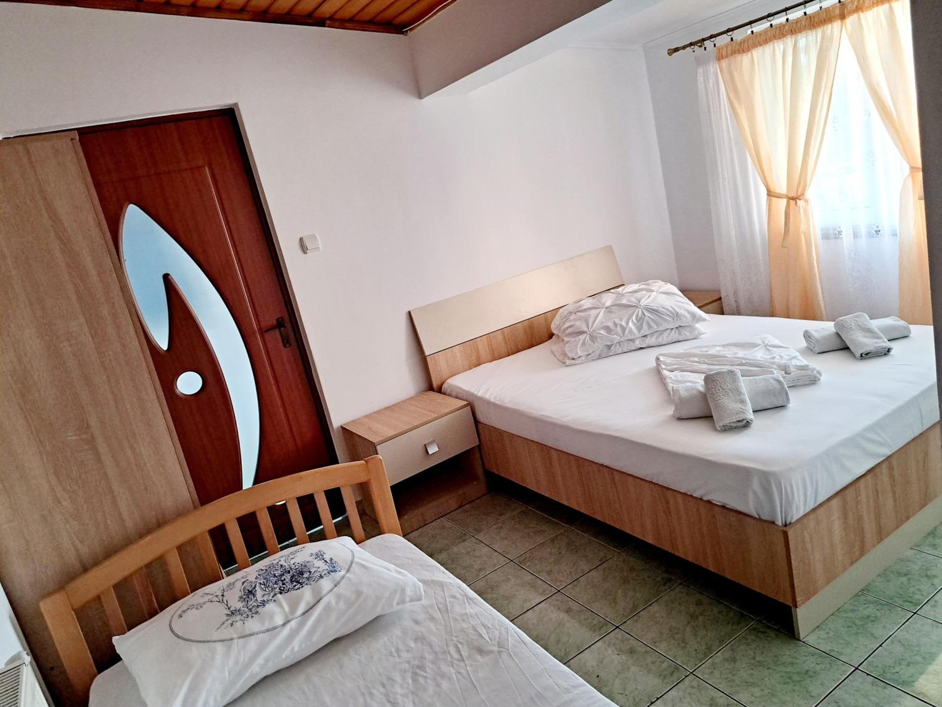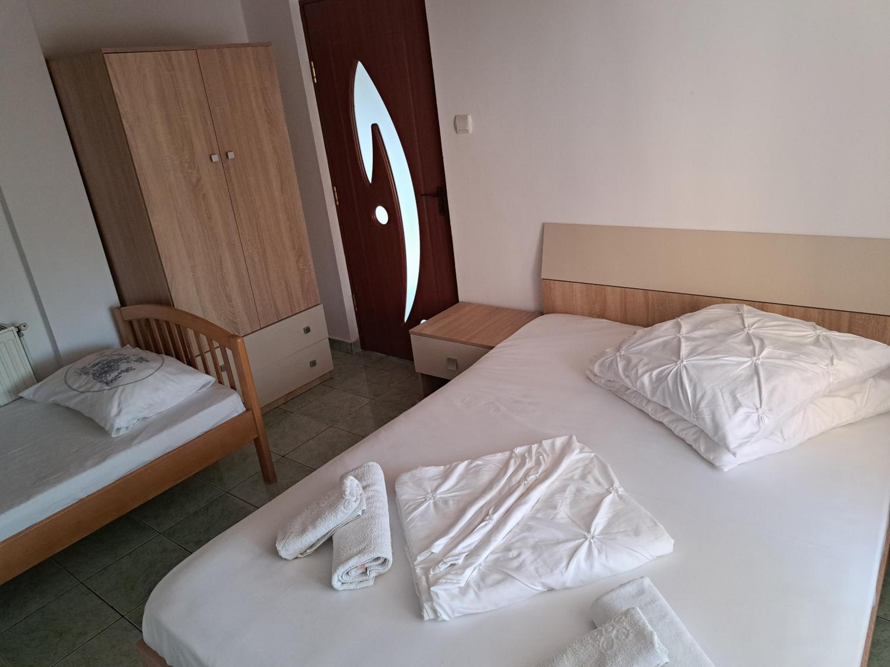 Cameră triplă mare, saltele confortabile, aer condiționat pe care l-am utilizat, lenjerie pentru paturi și prosoape din bumbac, curate.