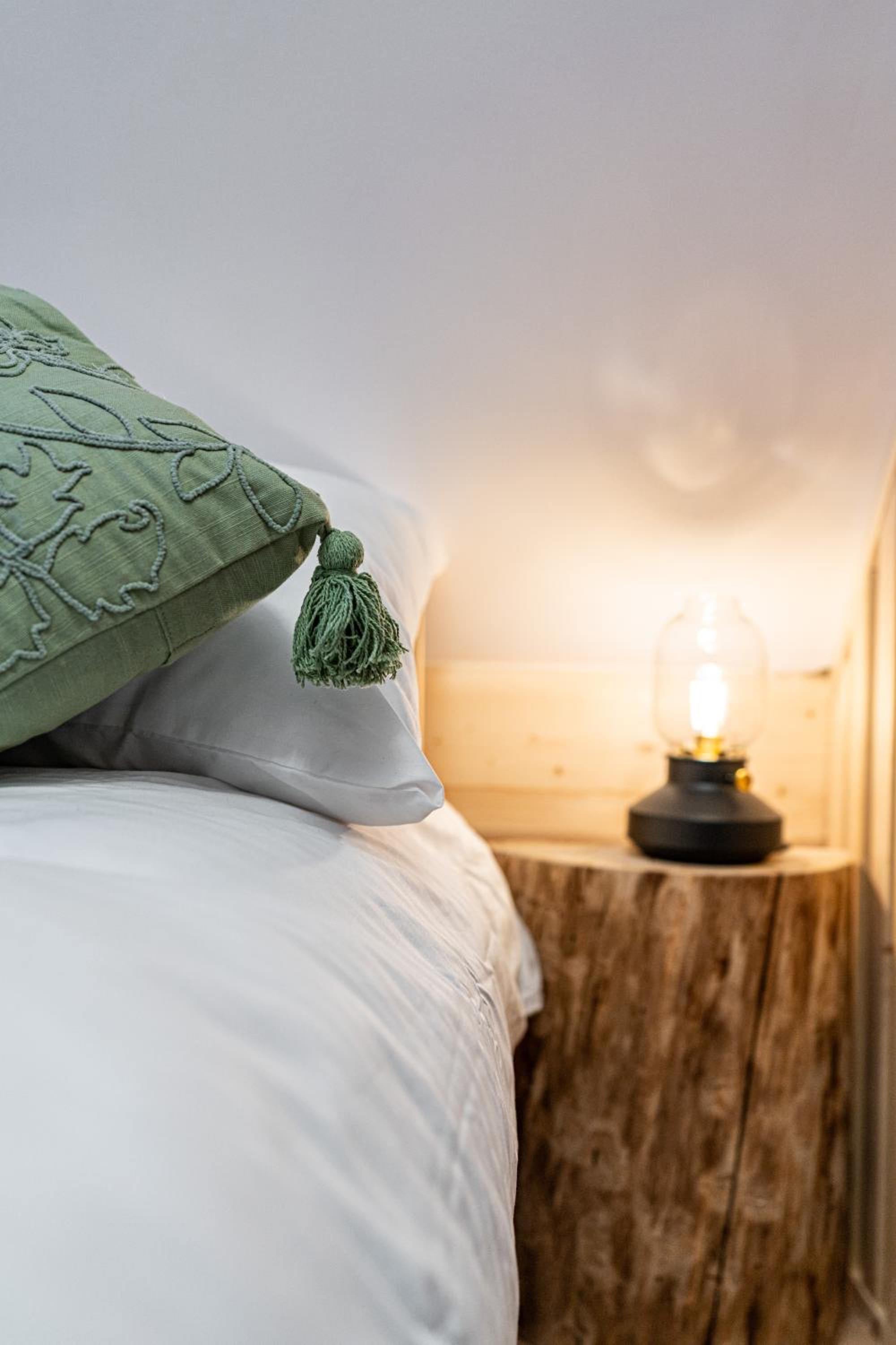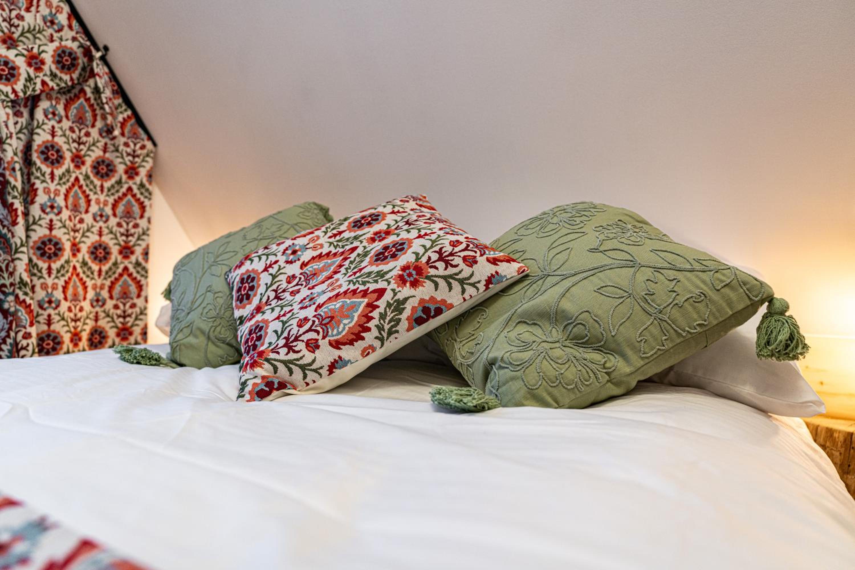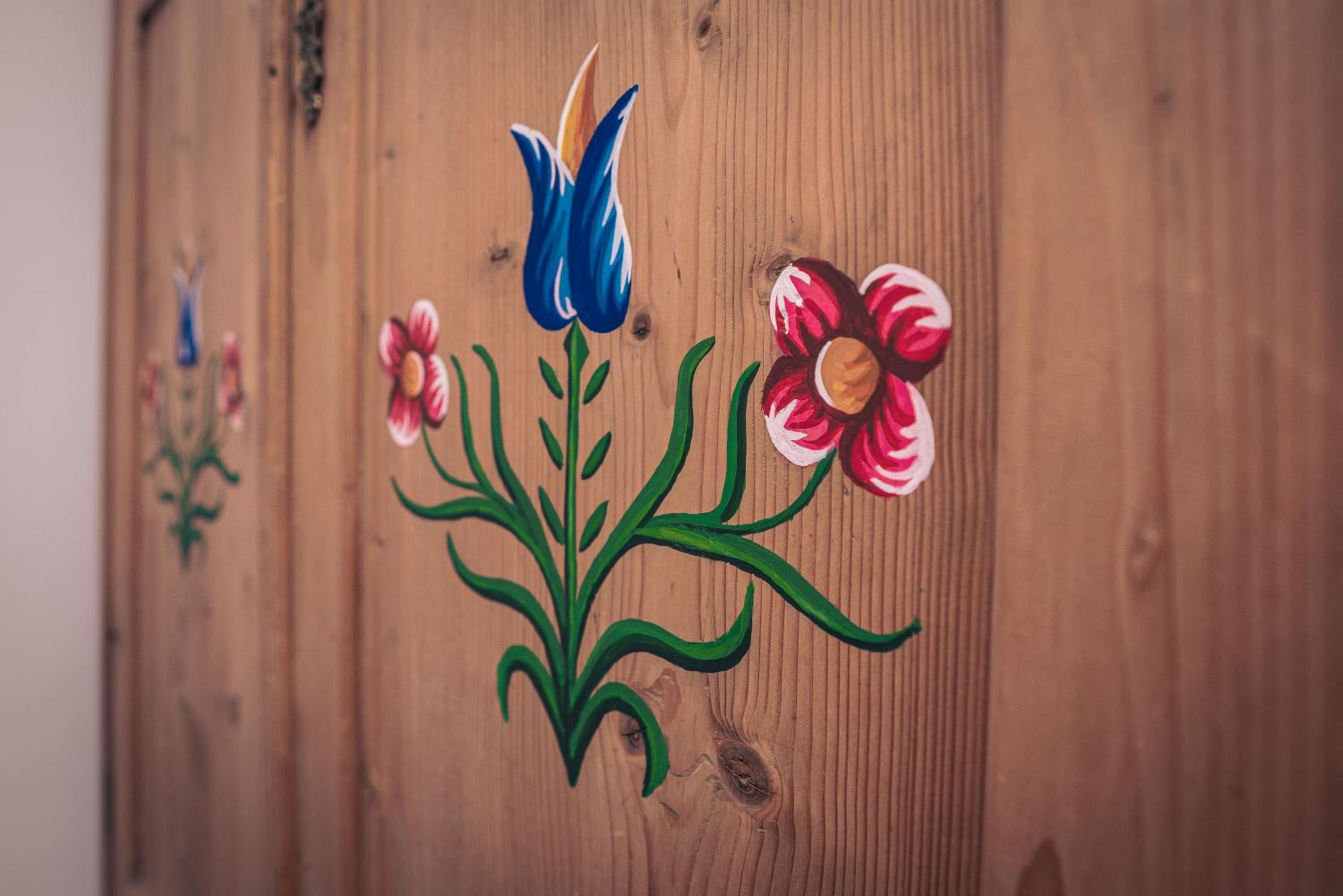 Experience vibrant and unique interiors with hand-painted furniture in our apartments. Each room is designed to create a cheerful and cozy atmosphere for your stay.