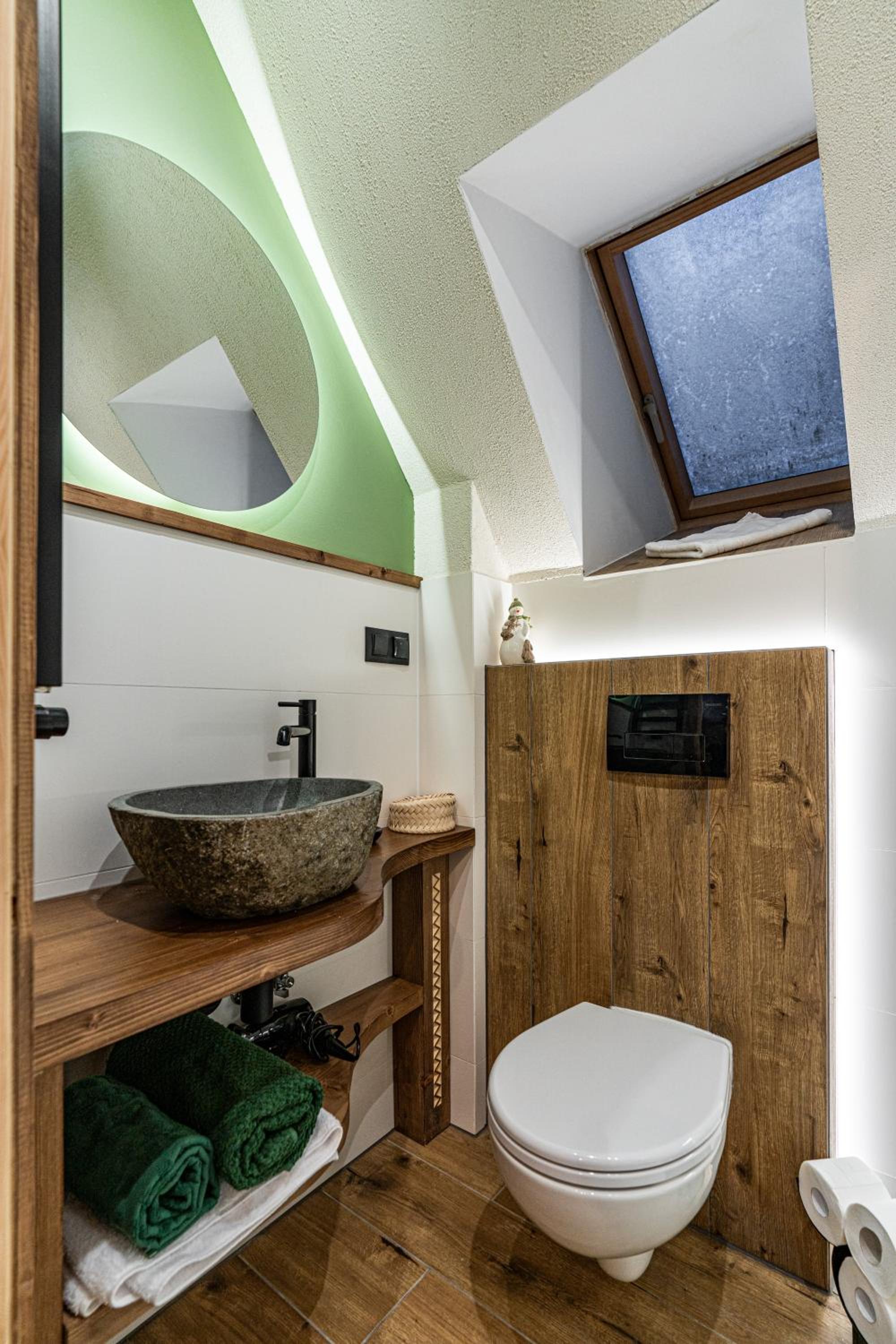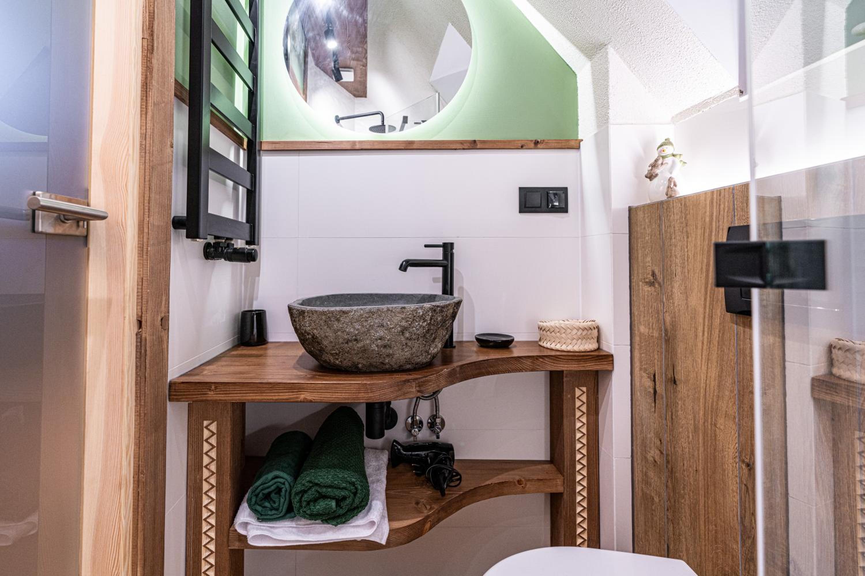 Przyjemy, 2-poziomowy apartament w stylu góralskim w mojej ulubionej części Zakopanego, w pobliżu ulicy Strążyskiej, ale na uboczu, więc nie były słychać samochodów. Wygodne łóżko i dostęp do kuchni, dobrze wyposażonej, na użytek tylko tego apartamentu. Bardzo mili i pomocni właściciele. Idealne dla 1-2 osób.