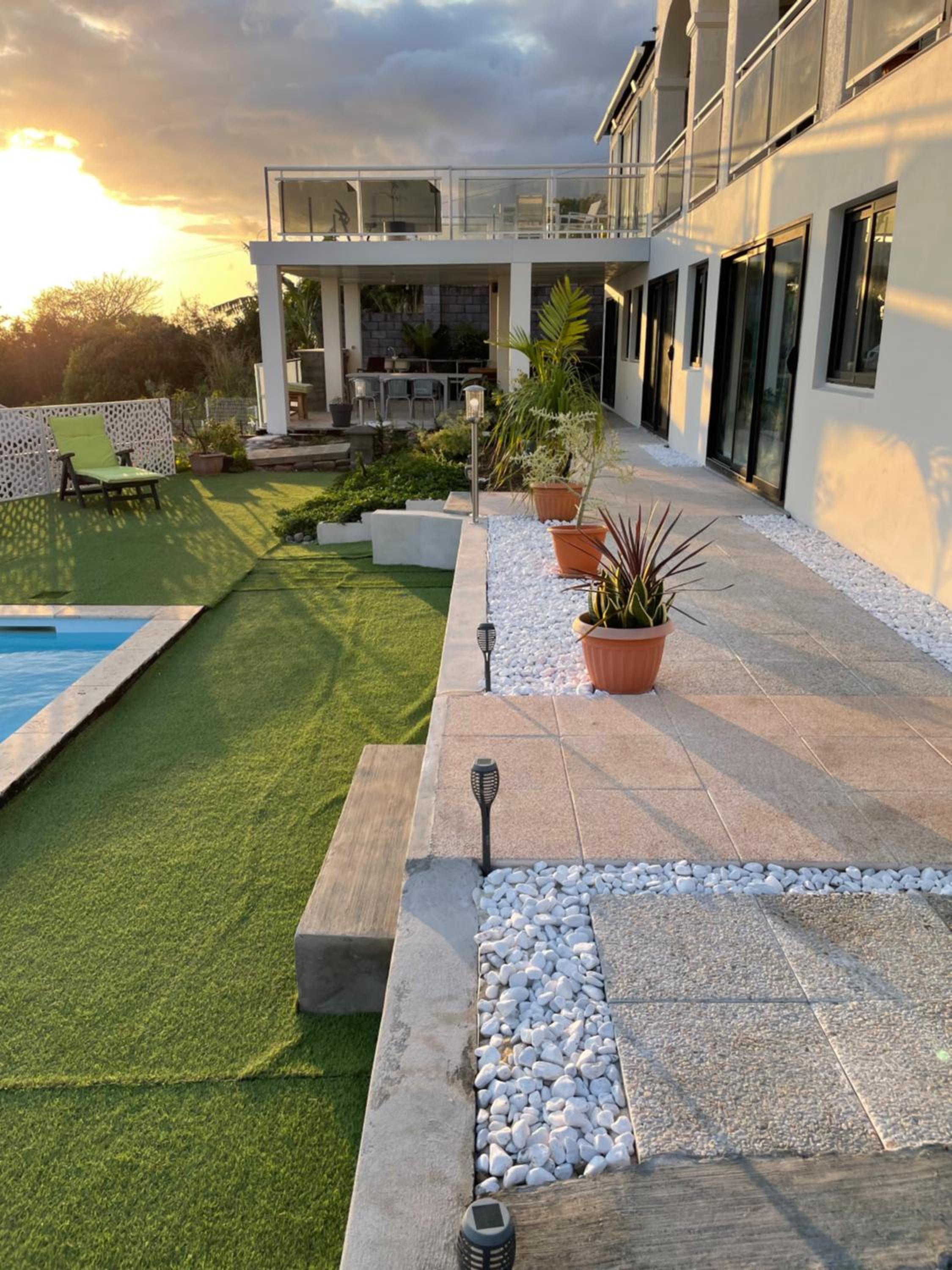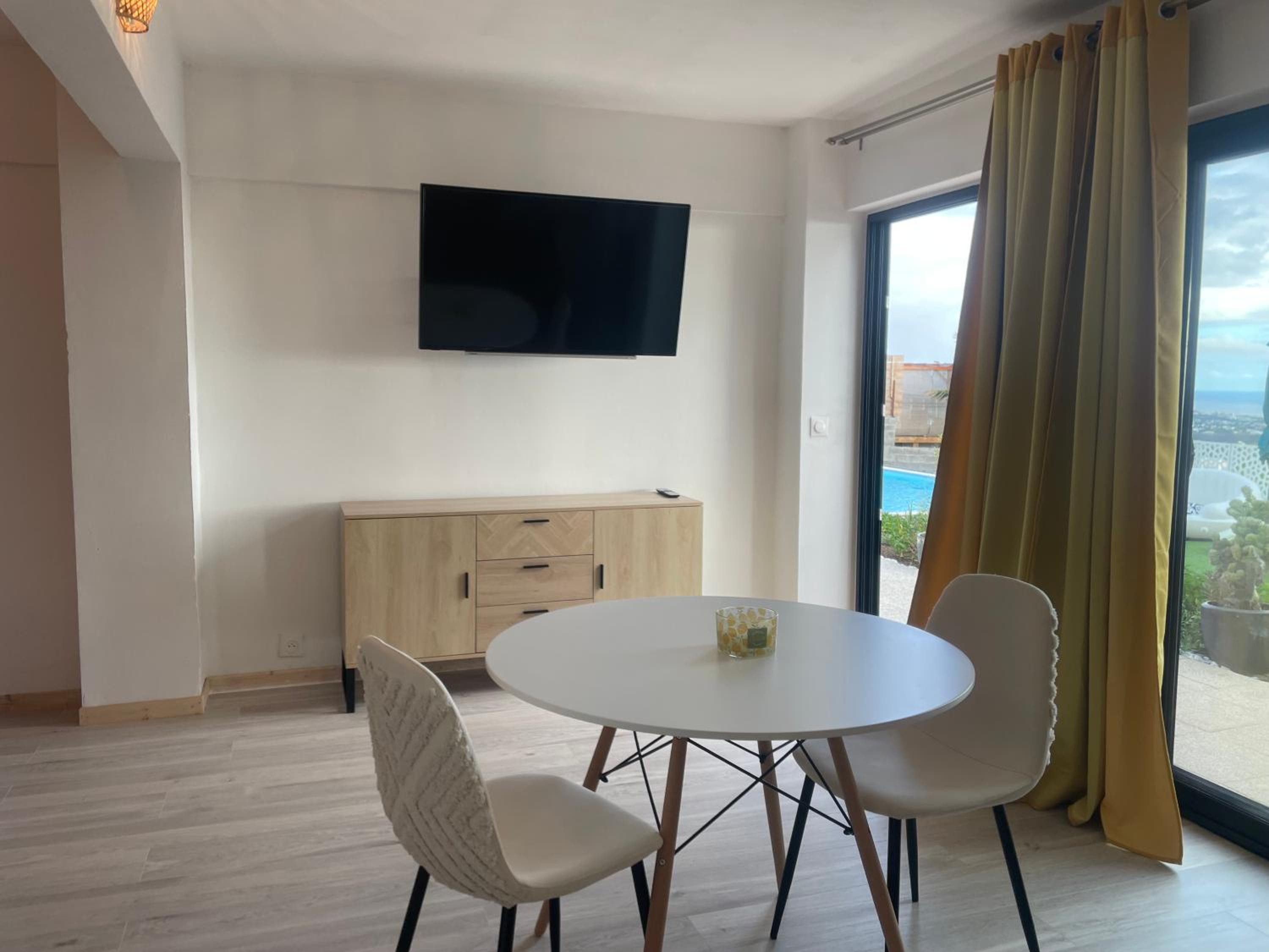 Nous avons été reçu dans l’un des logements de cette grande et magnifique villa. La propriétaire nous a offert un cocktail. Il nous avons pu profiter de la piscine et du magnifique coucher du soleil la vue. Le logement était très propre et bien aménagé. Le lieu est calme et nous avons pu disposer d’une cuisine, afin de cuisiner.