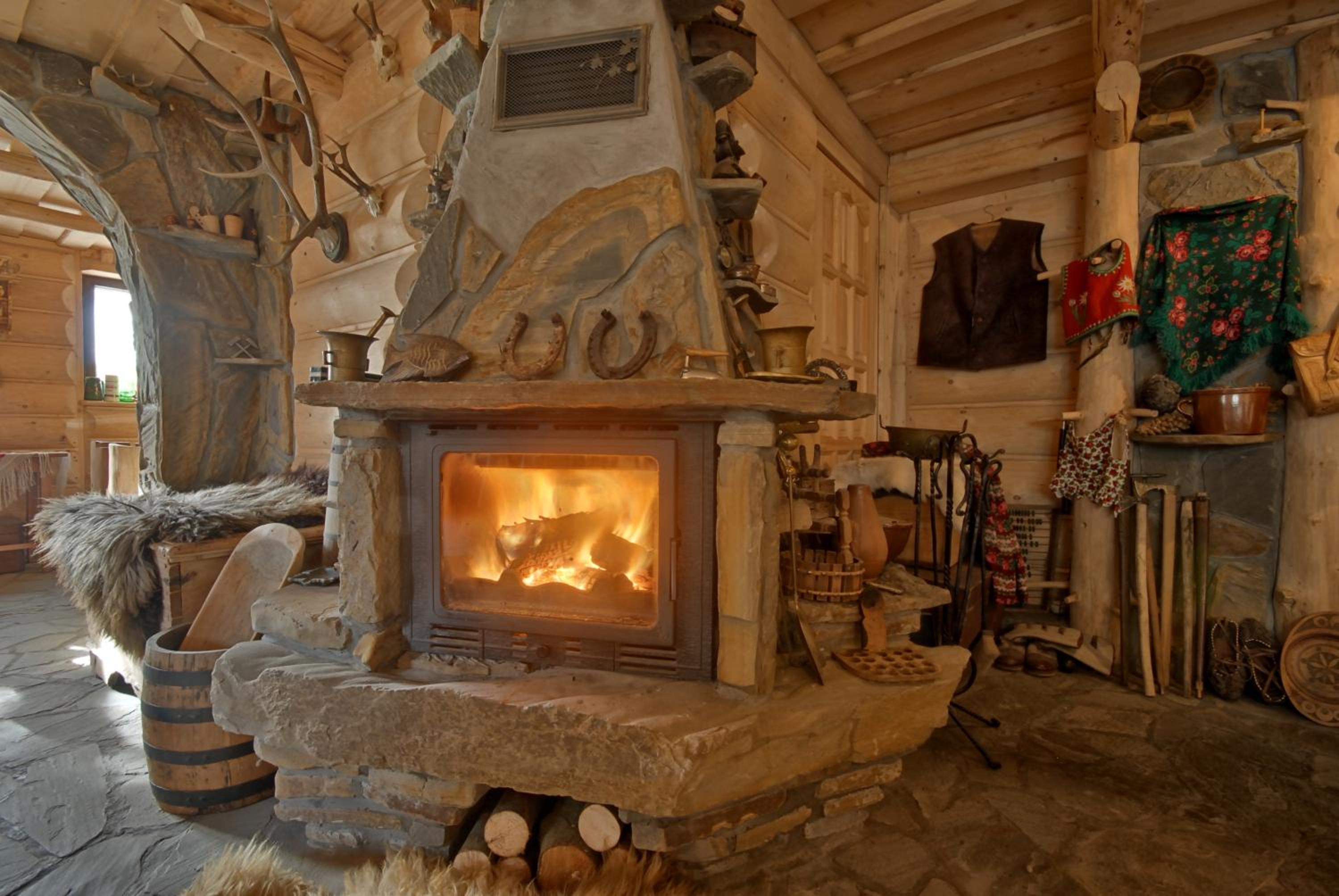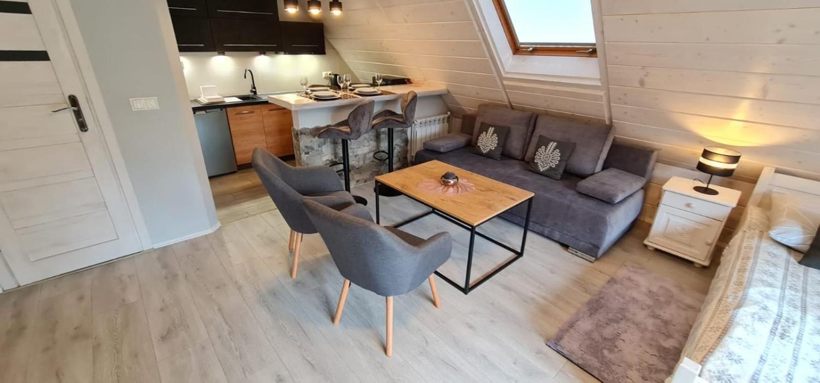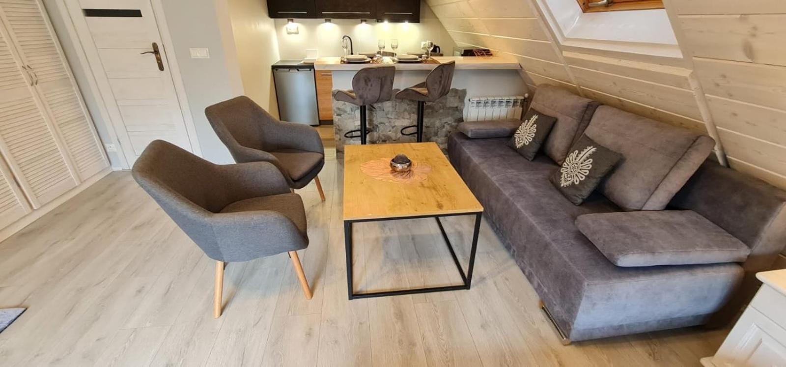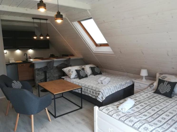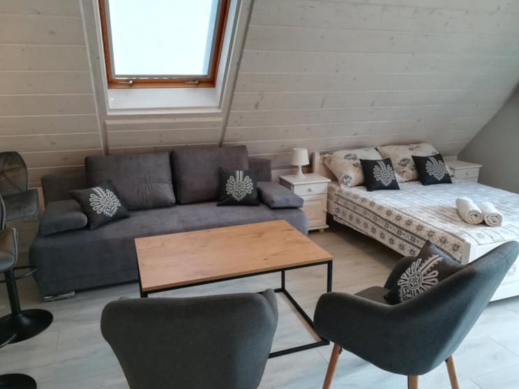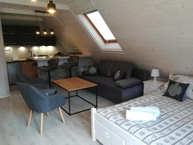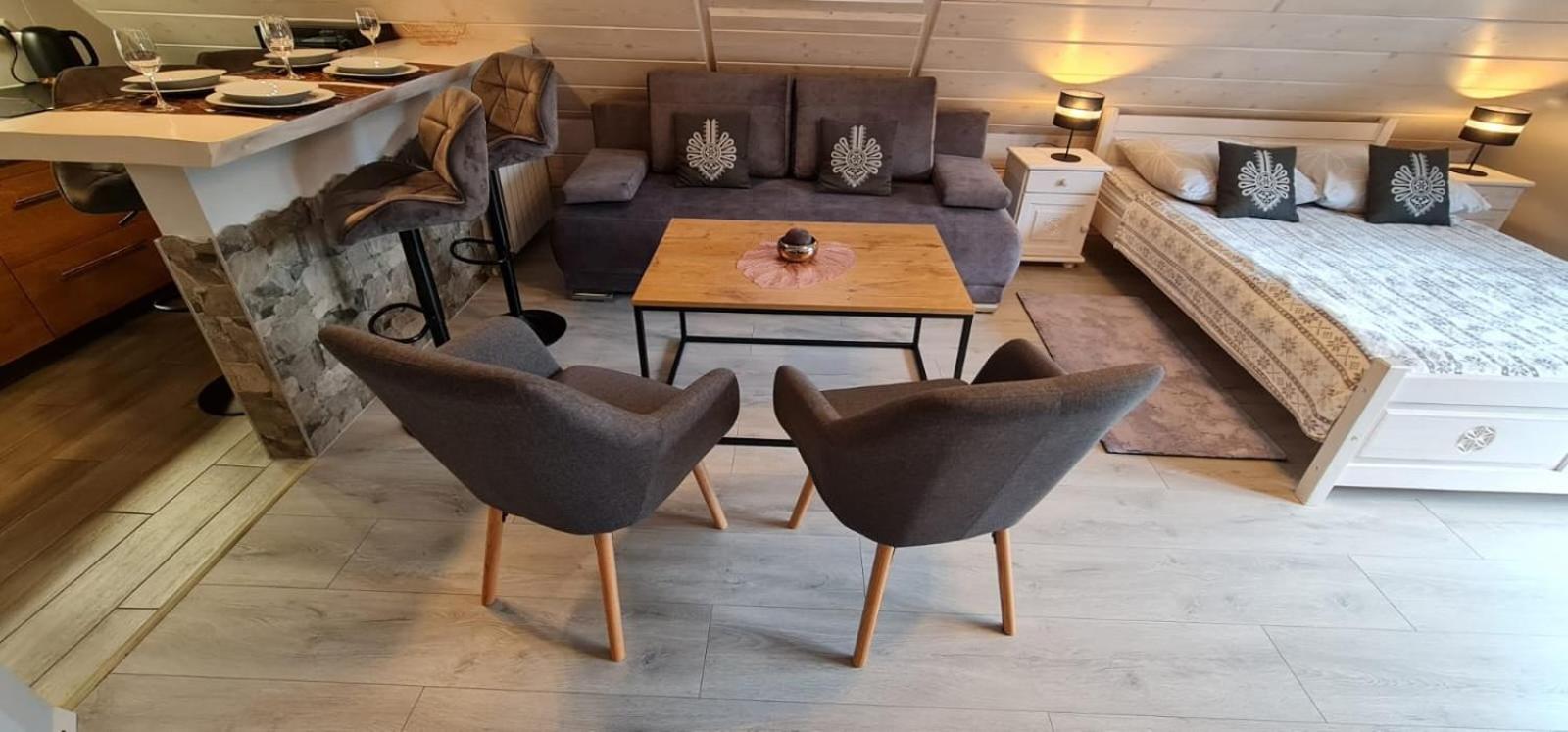 Rustic Charm and Modern Comfort: Experience the perfect blend of traditional highlander's hut ambiance with modern amenities at Dom Gościnny Efka. Enjoy the warmth of free Wi-Fi in the beautifully decorated rooms and cozy up by the fireplace in the common room.