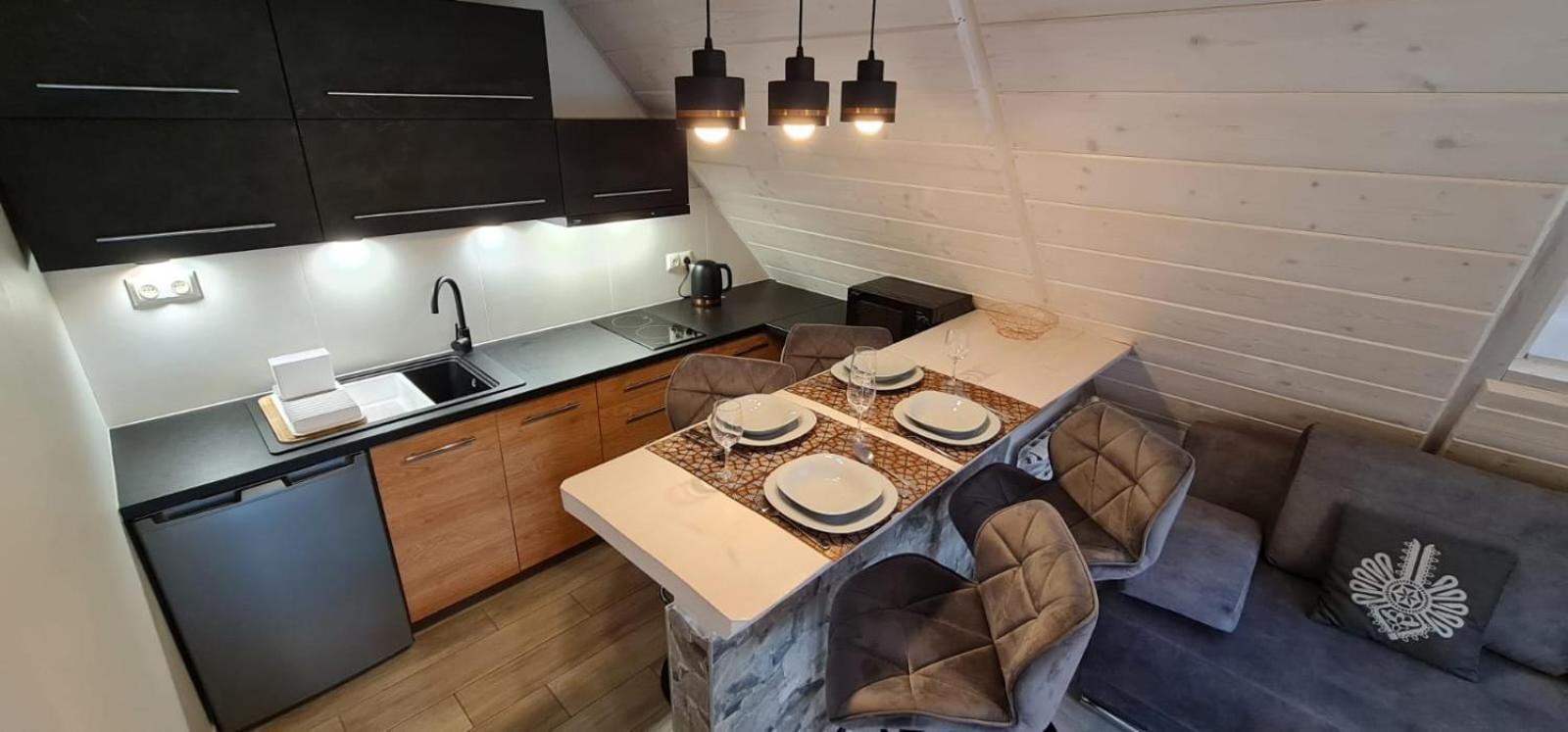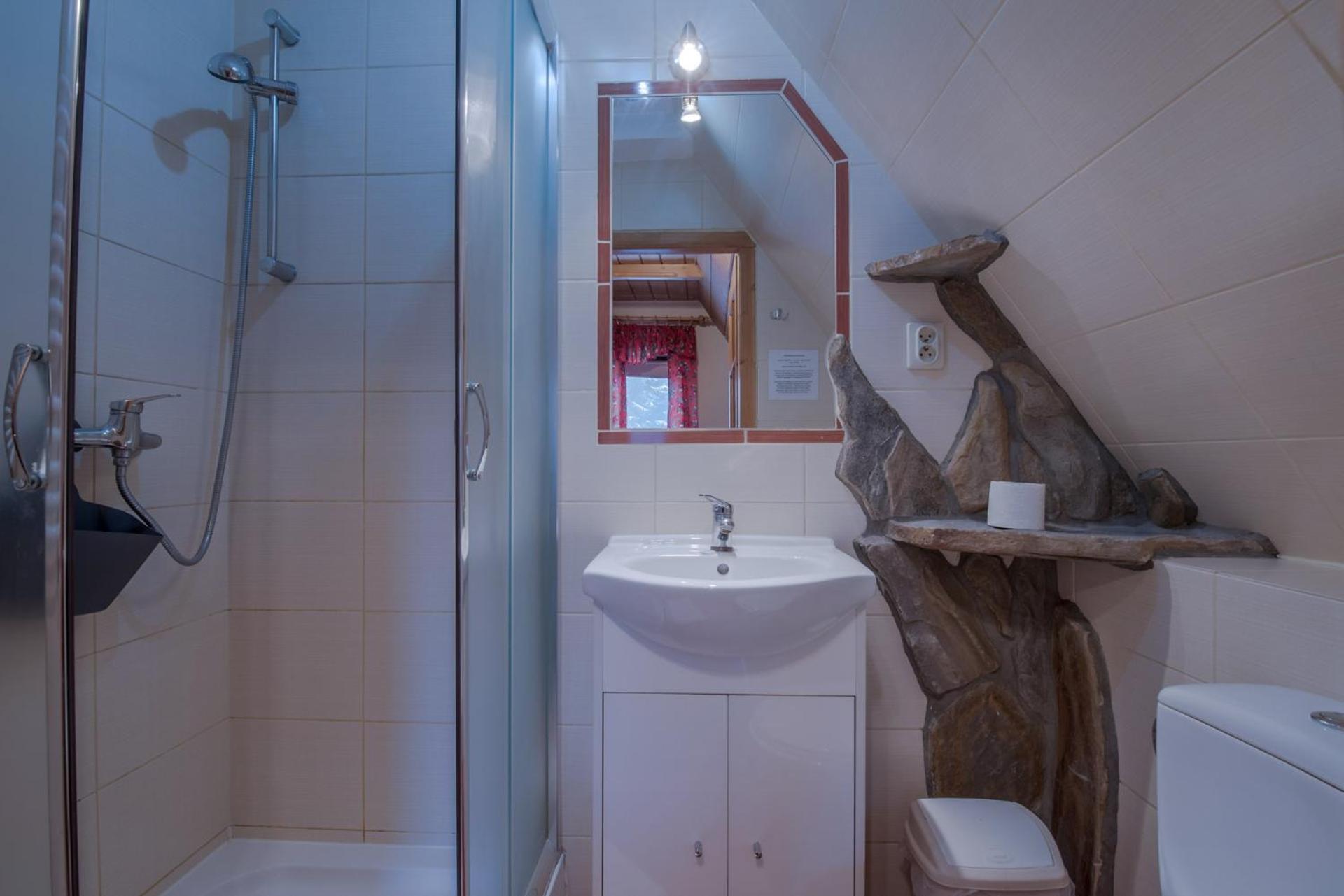 Ogromnym plusem obiektu jest ogrzewana podłoga w łazience, zimą to naprawdę miłe udogodnienie. Dodatkowo pitna woda w kranie. Świetny dzielony aneks kuchenny. Salka na dole była idealnym miejscem na wypoczynek, organizacje wyjść w góry czy grę planszową. Świetna lokalizacja!!