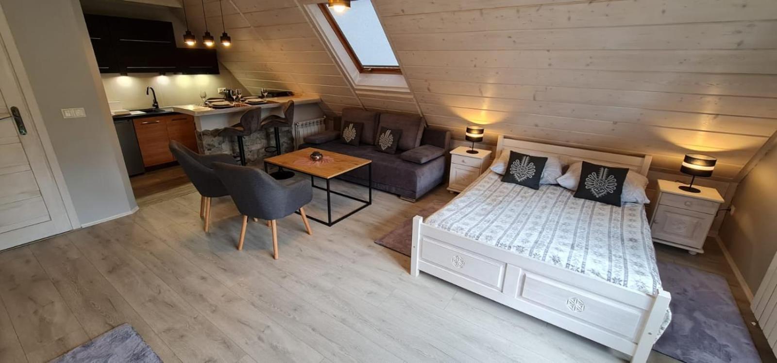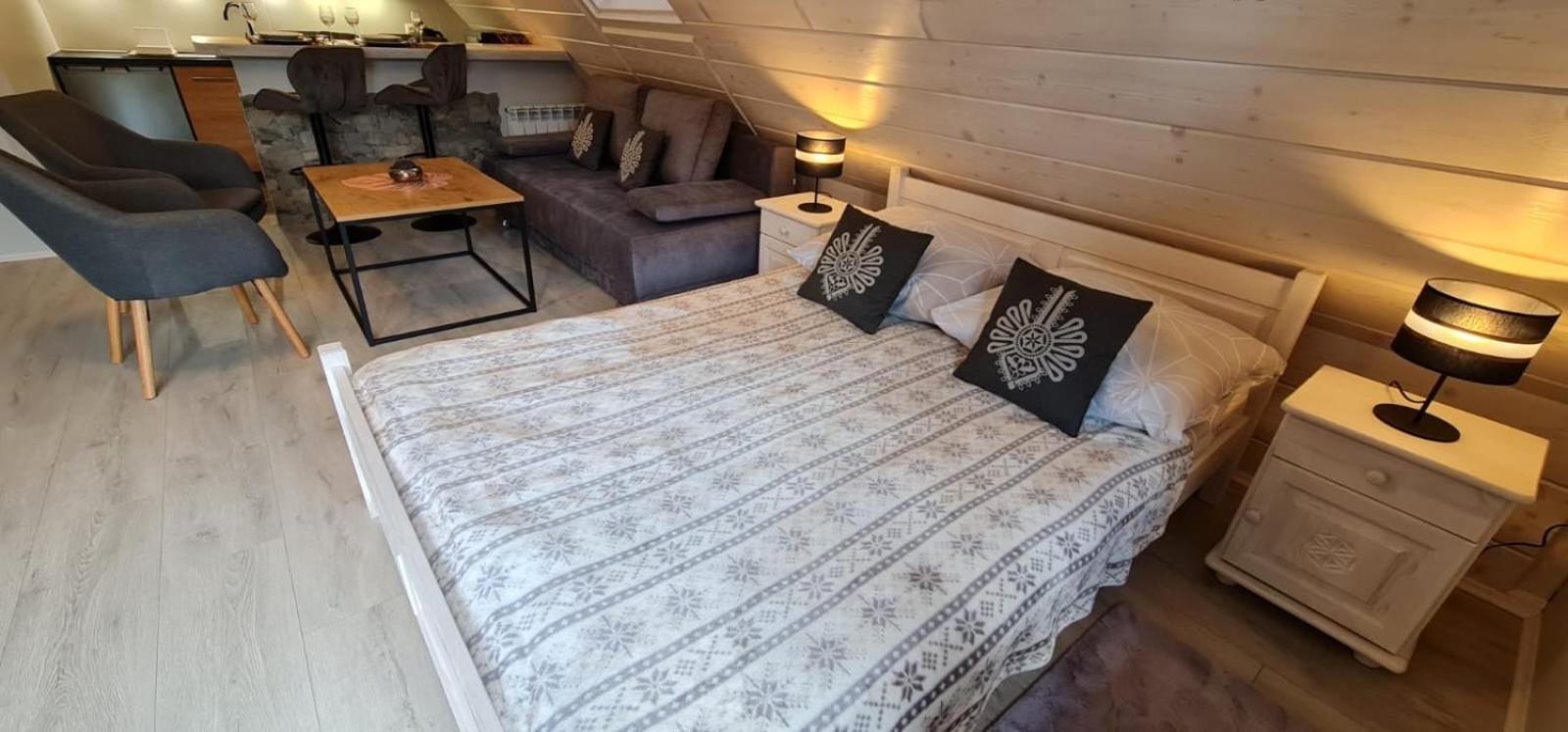 Bardzo fajne miejsce. Pokój przytulny i uroczy, dość spory. Bardzo wygodne łóżko. W pokoju niczego nie brakowało. Tuż przed pokojem aneks kuchenny tylko dla dwóch pokoi, więc idealnie. Widok z okna na ogród. Podjazd ośnieżony. Internet bez zarzutu. Bardzo miła Pani właścicielka. Obiekt raczej dla rodzin i singli niż dla grup imprezowych.