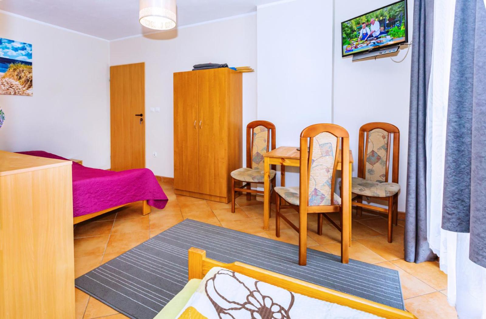 Brak chlodziarki i czajnika w pokoju,ale dostepne na pietrze. Pokoj powinien byc juz dawno wyremontowany,stan mocno nadwyrezony.
