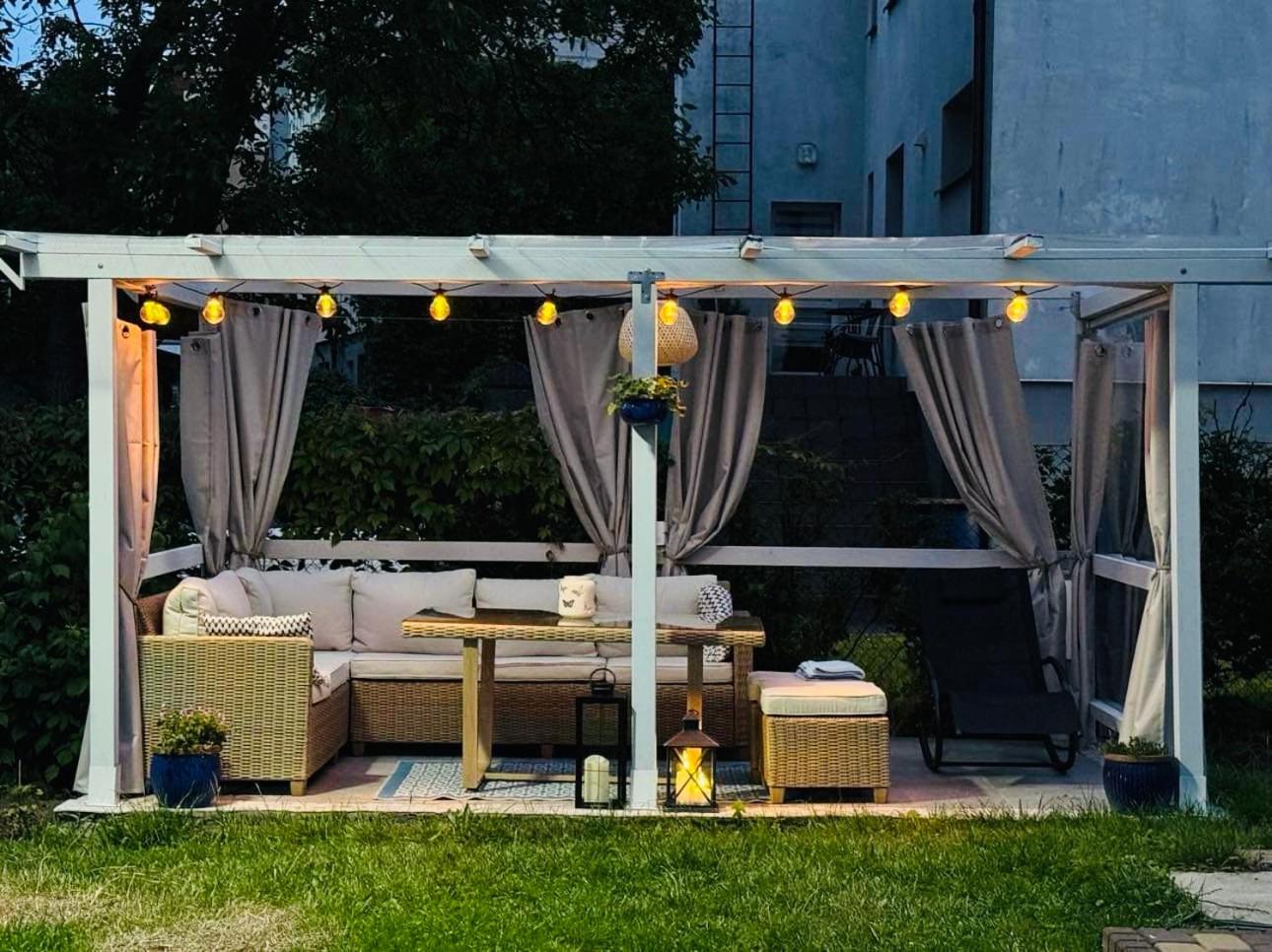 Enjoy our garden with a view and outdoor fireplace, perfect for relaxing and unwinding in nature.