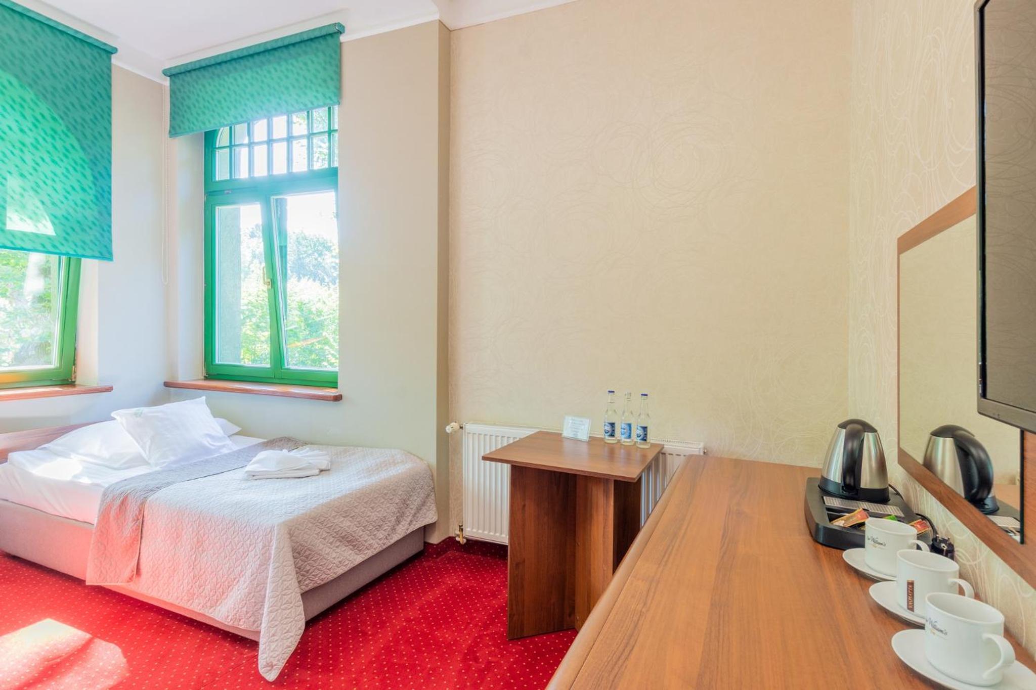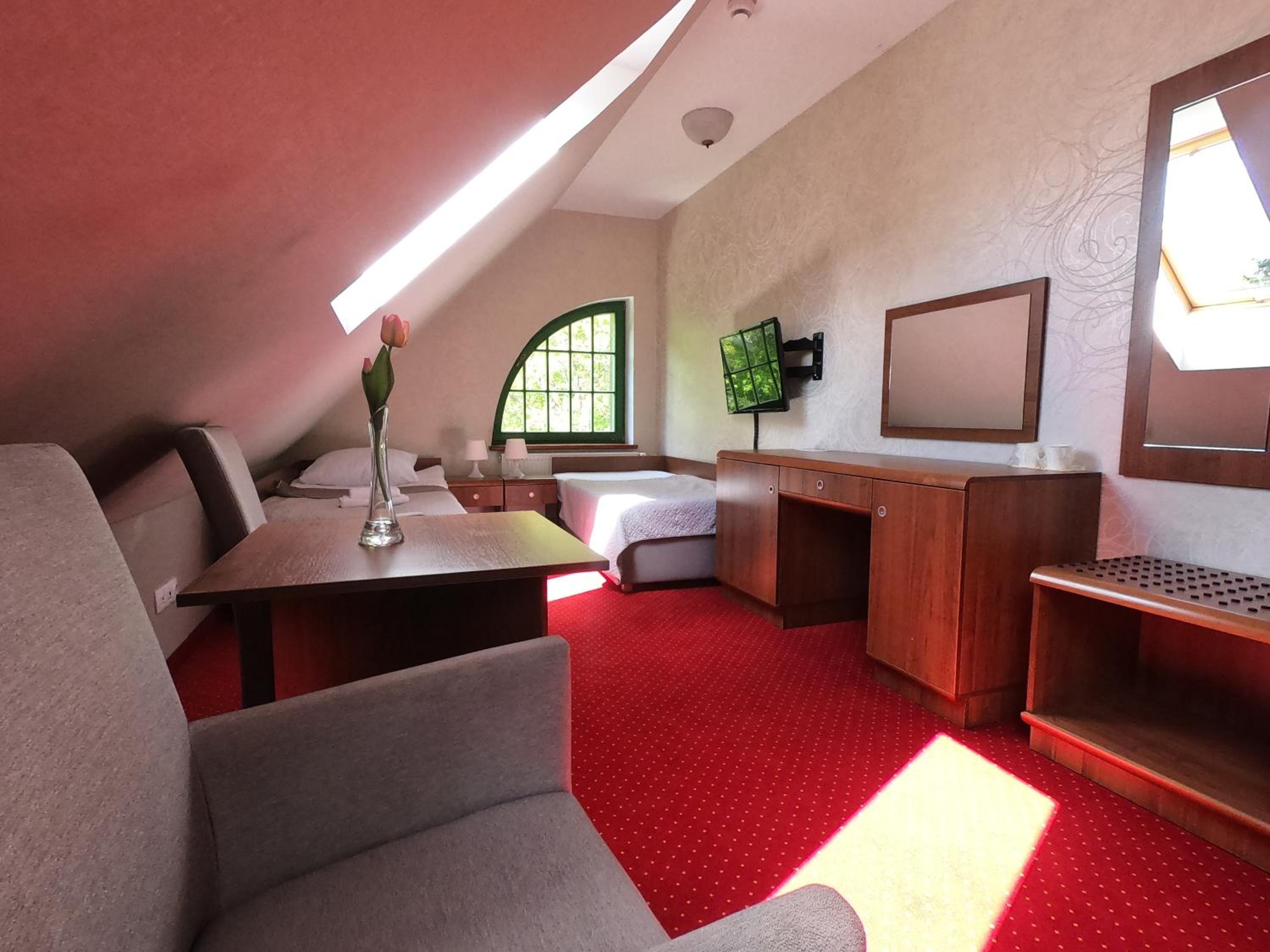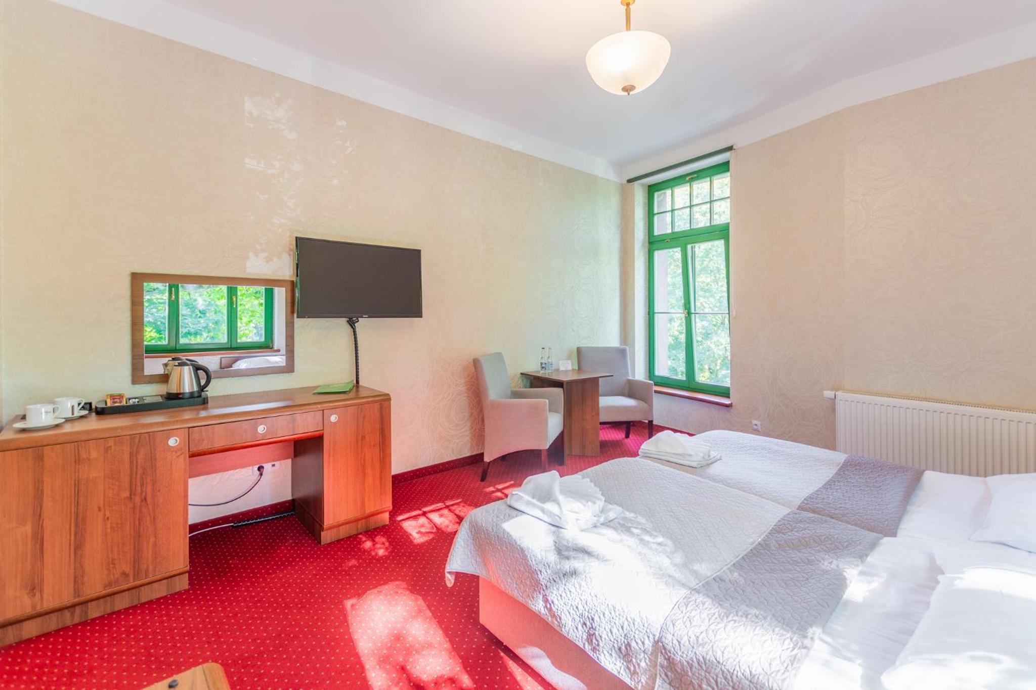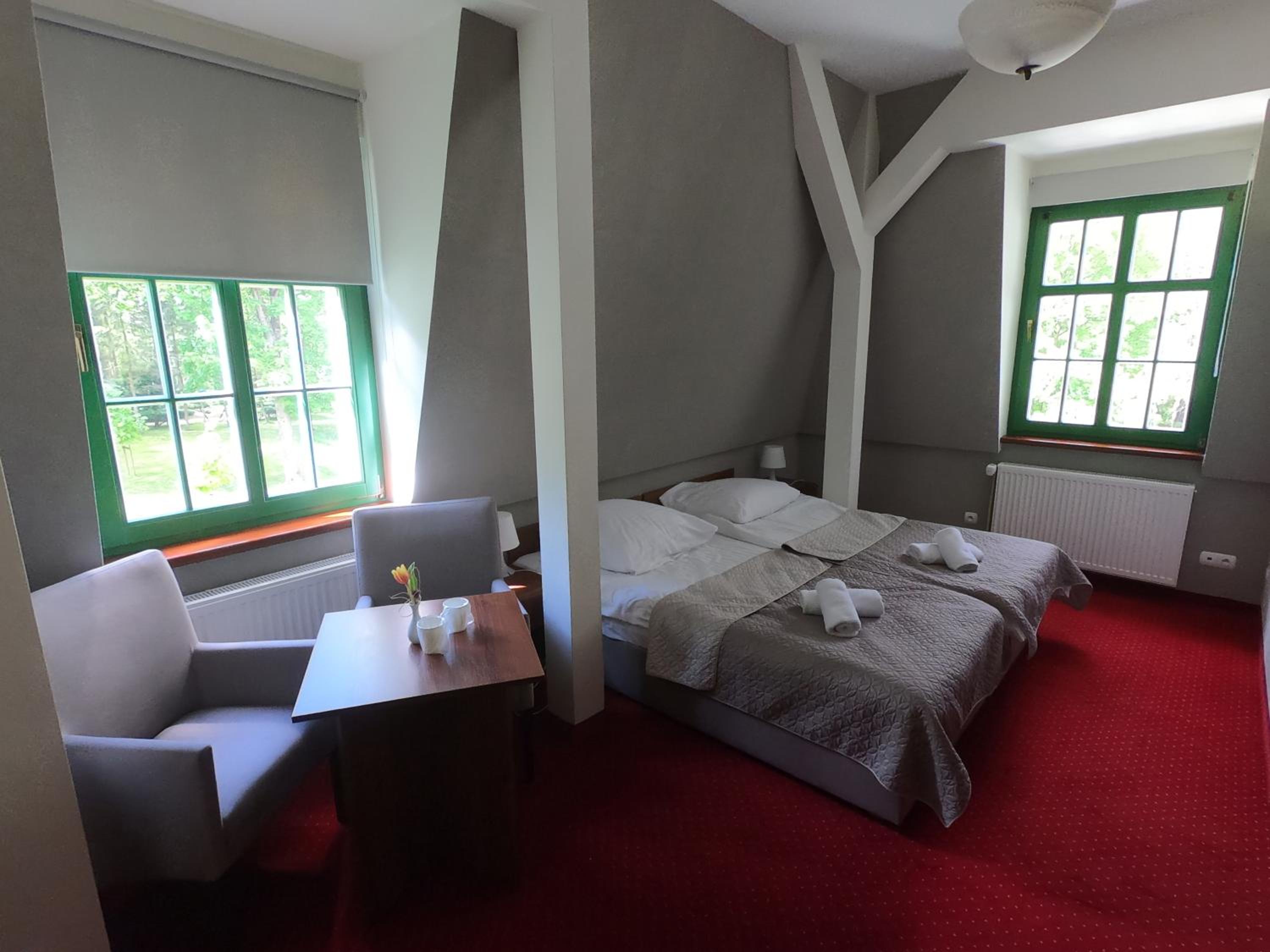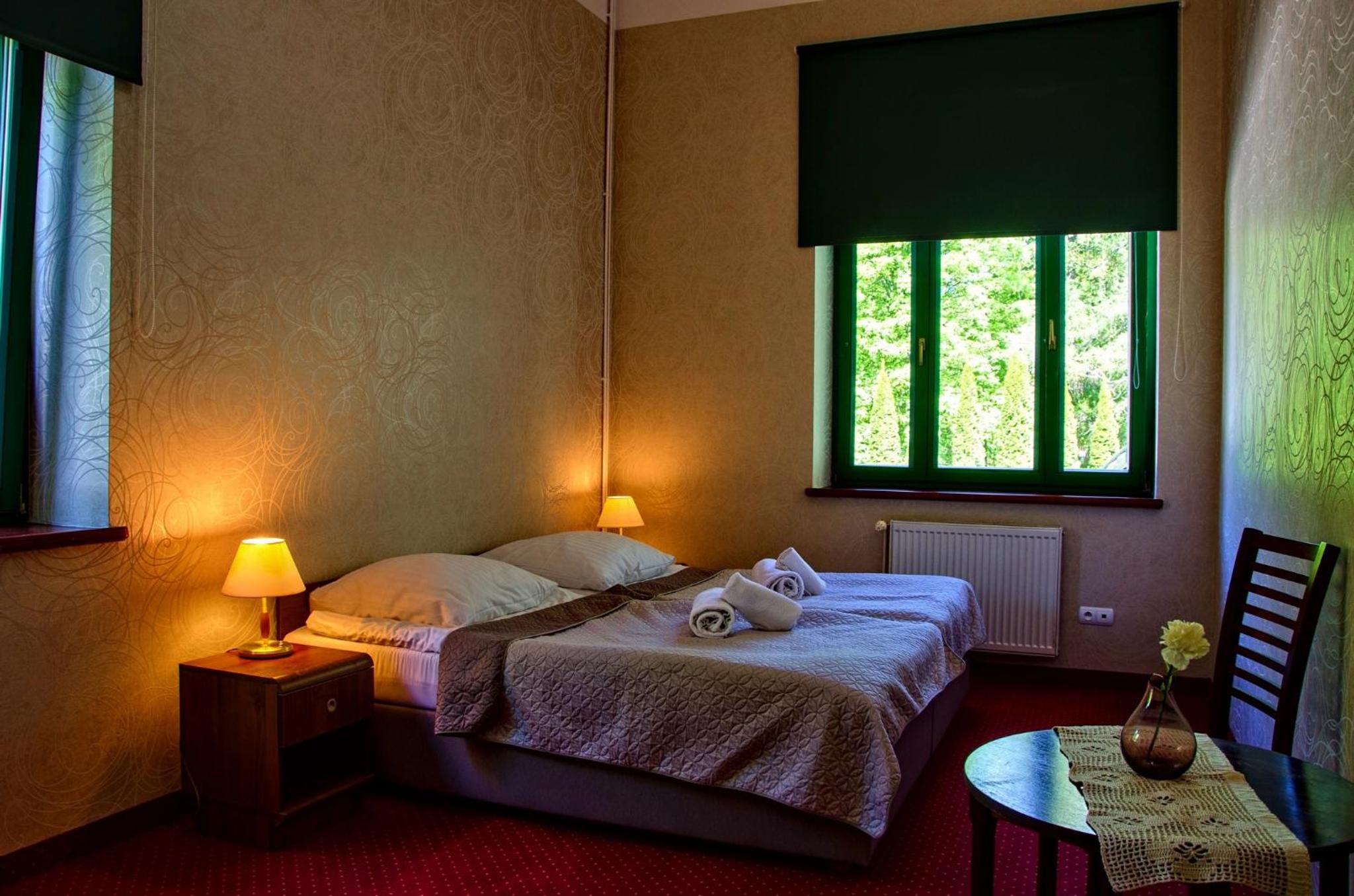 Pobyt w hotelu był bardzo udany. Obiekt zachwyca klimatem i przyjemną atmosferą, sprzyjającą wypoczynkowi. Pokoje są przestronne, czyste i dobrze utrzymane, co zapewnia wysoki komfort pobytu. Zameldowanie przebiegło szybko i bezproblemowo. Dużym atutem są smaczne śniadanie w formie szwedzkiego stołu świeże i urozmaicone. Na miejscu działa również restauracja serwująca bardzo dobre dania, dzięki czemu nie trzeba szukać posiłków poza hotelem. Hotel ma świetną lokalizację, blisko Sanatorium Gryf, gdzie można skorzystać z zabiegów lub basenu. To idealne miejsce zarówno na relaks, jak i pobyt zdrowotny.