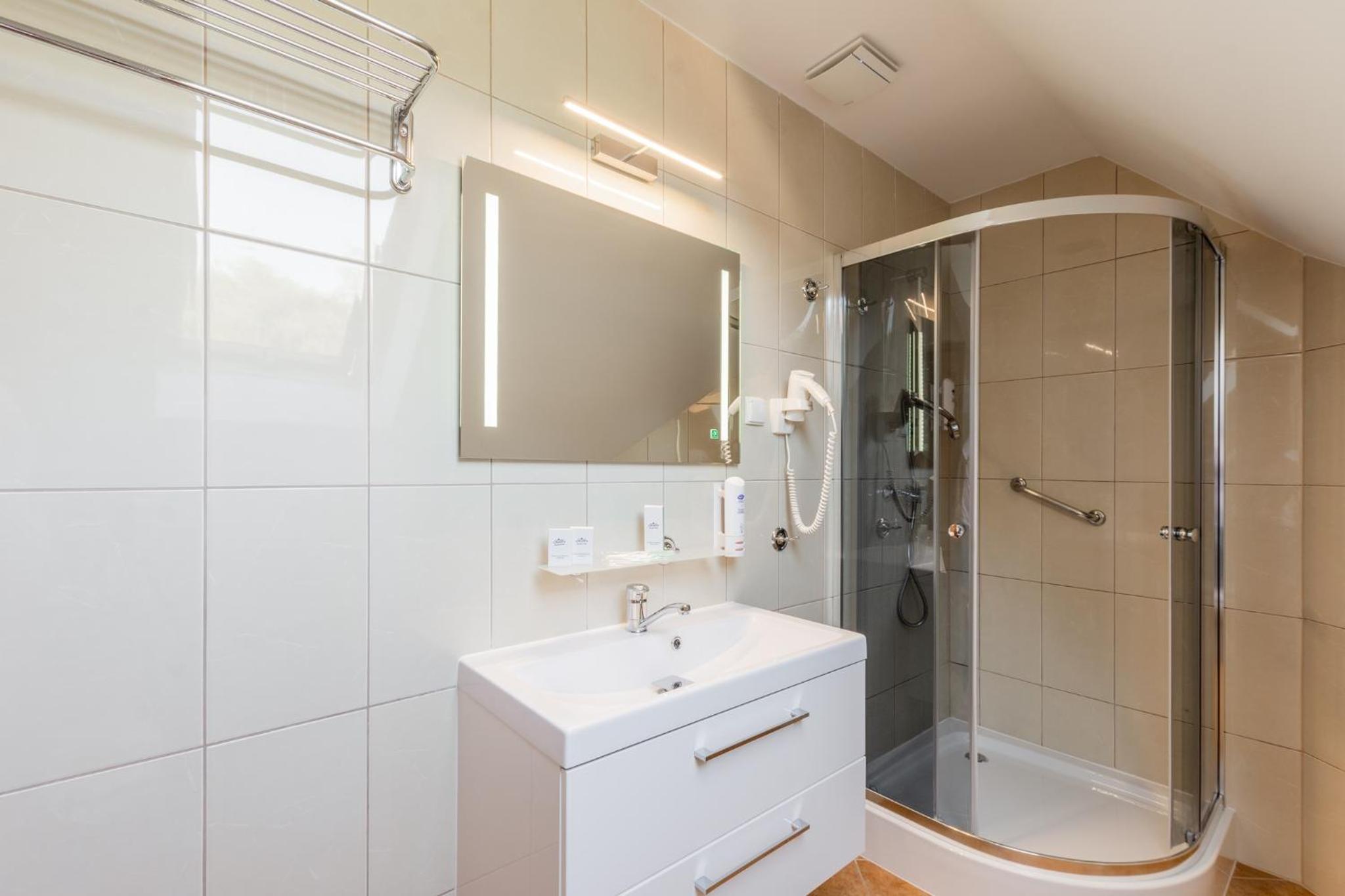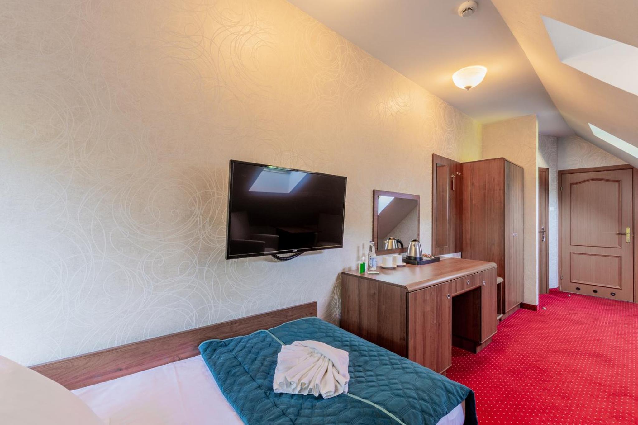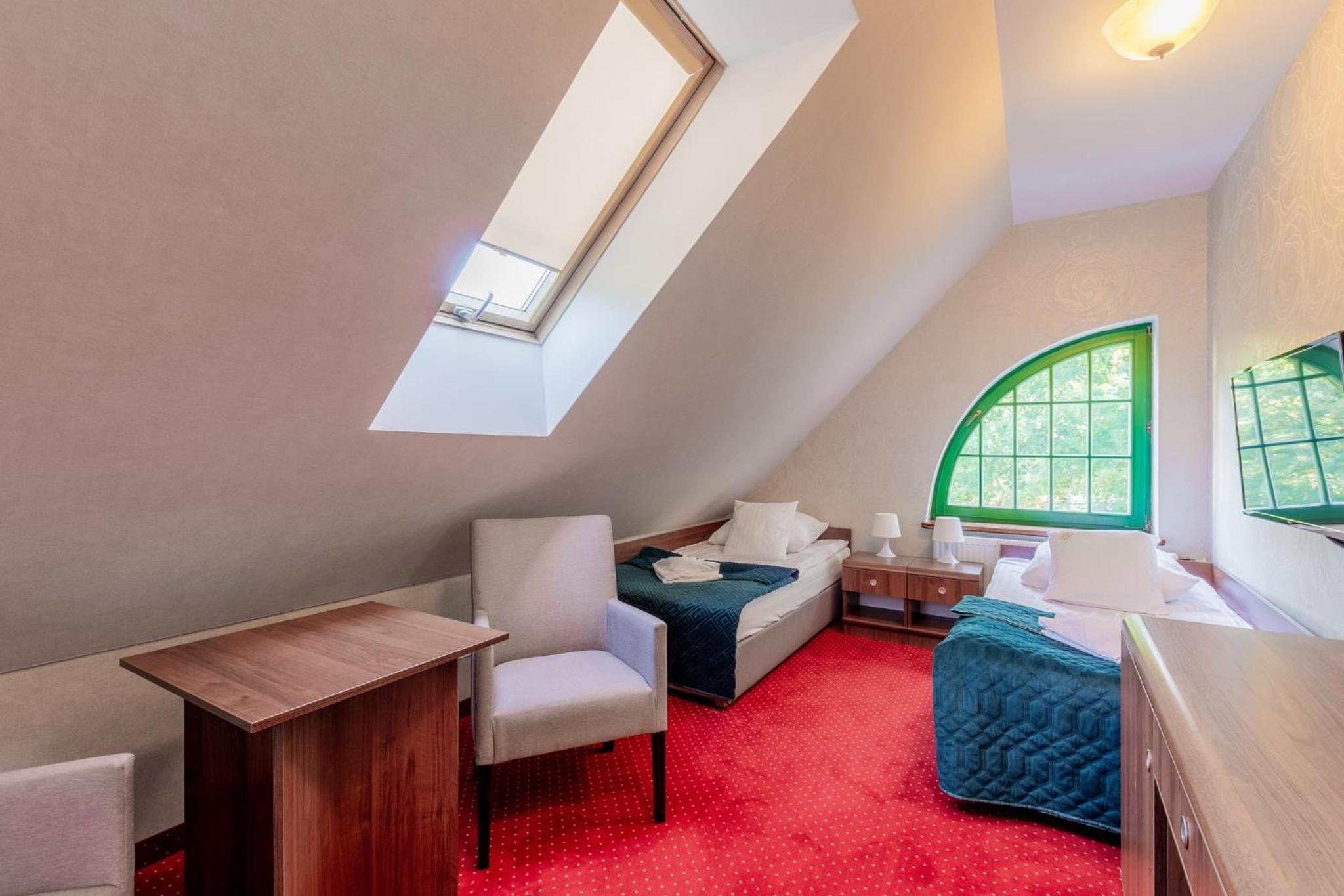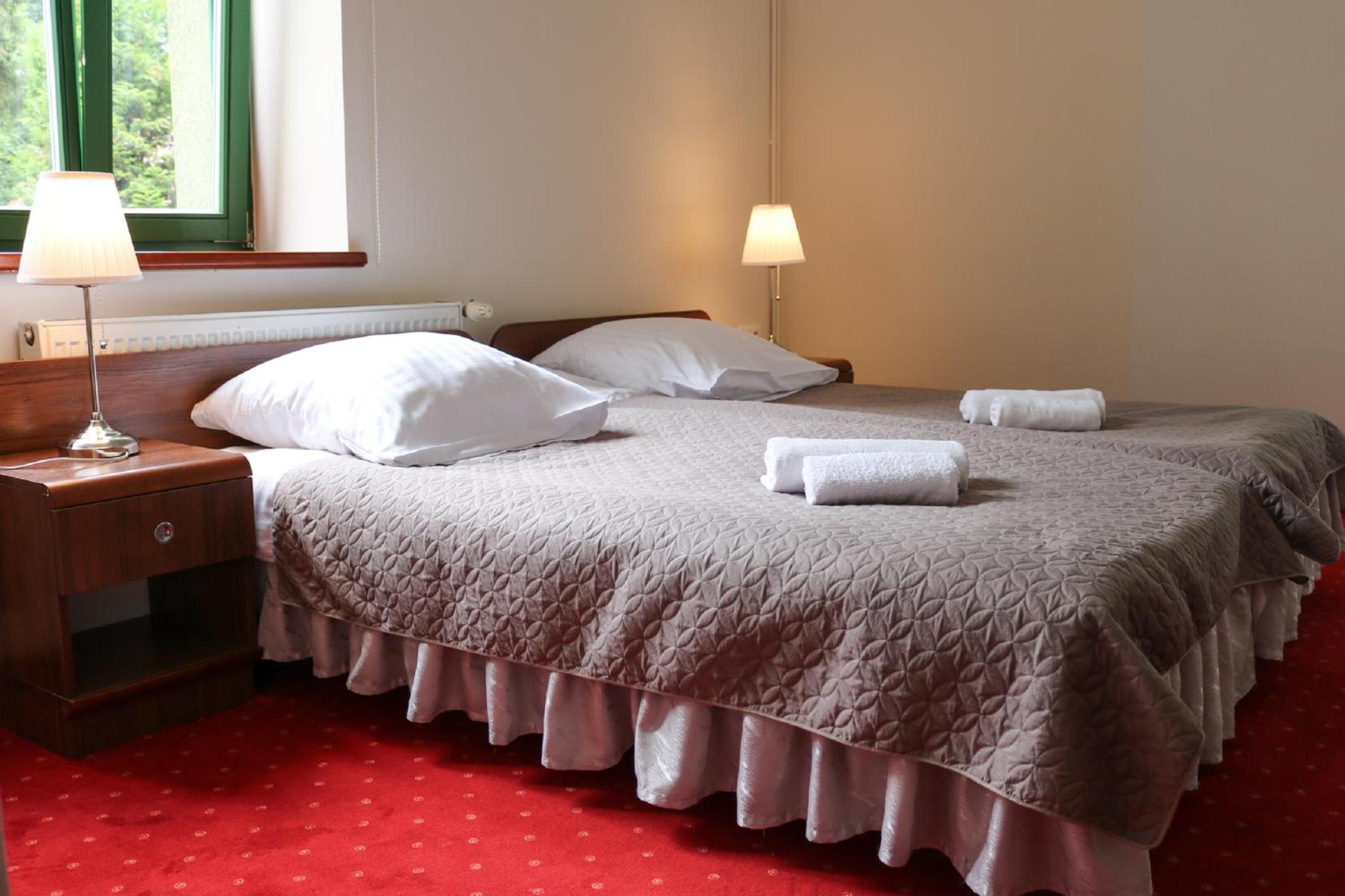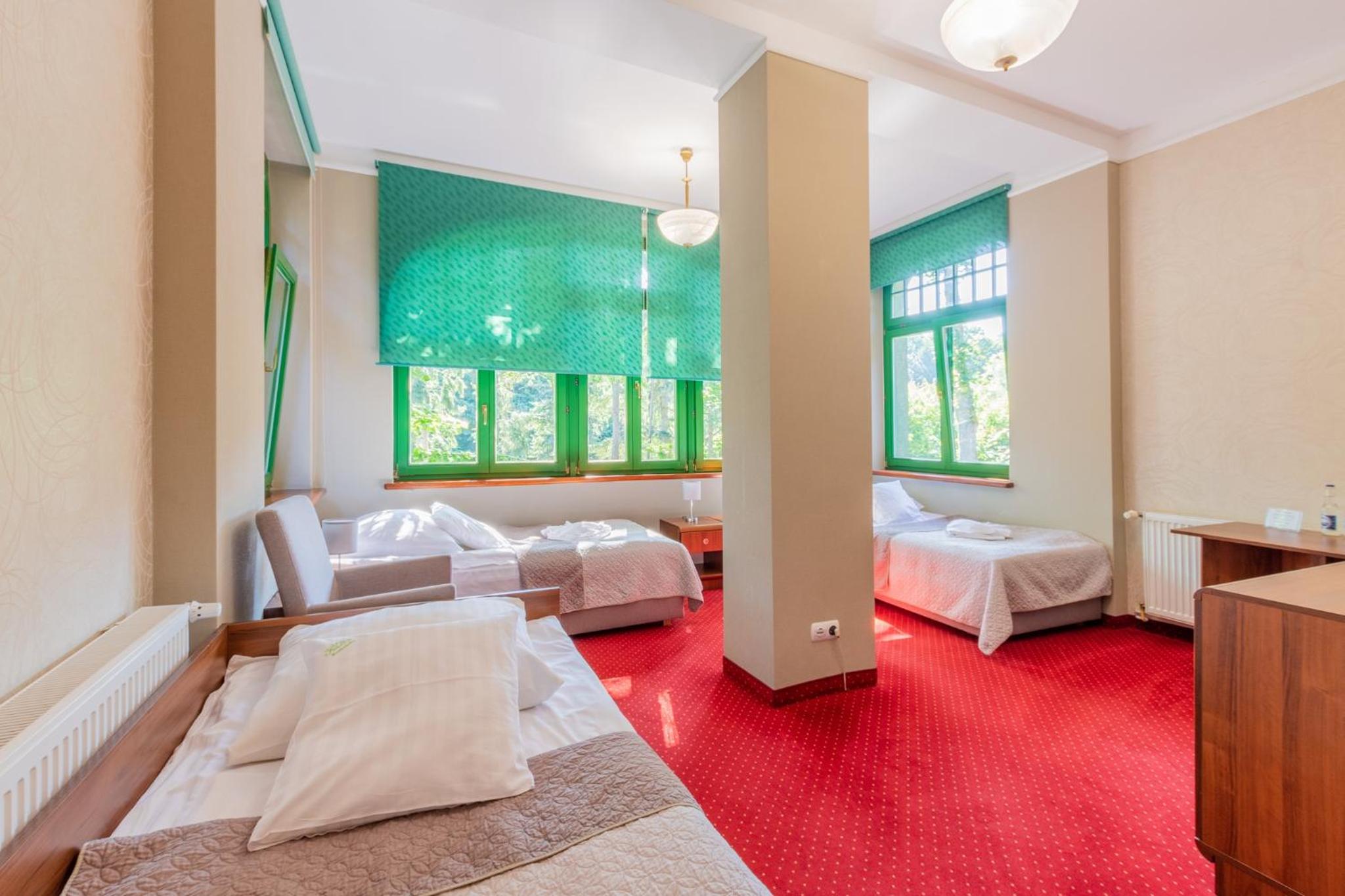 Pobyt w hotelu był bardzo udany. Obiekt zachwyca klimatem i przyjemną atmosferą, sprzyjającą wypoczynkowi. Pokoje są przestronne, czyste i dobrze utrzymane, co zapewnia wysoki komfort pobytu. Zameldowanie przebiegło szybko i bezproblemowo. Dużym atutem są smaczne śniadanie w formie szwedzkiego stołu świeże i urozmaicone. Na miejscu działa również restauracja serwująca bardzo dobre dania, dzięki czemu nie trzeba szukać posiłków poza hotelem. Hotel ma świetną lokalizację, blisko Sanatorium Gryf, gdzie można skorzystać z zabiegów lub basenu. To idealne miejsce zarówno na relaks, jak i pobyt zdrowotny.