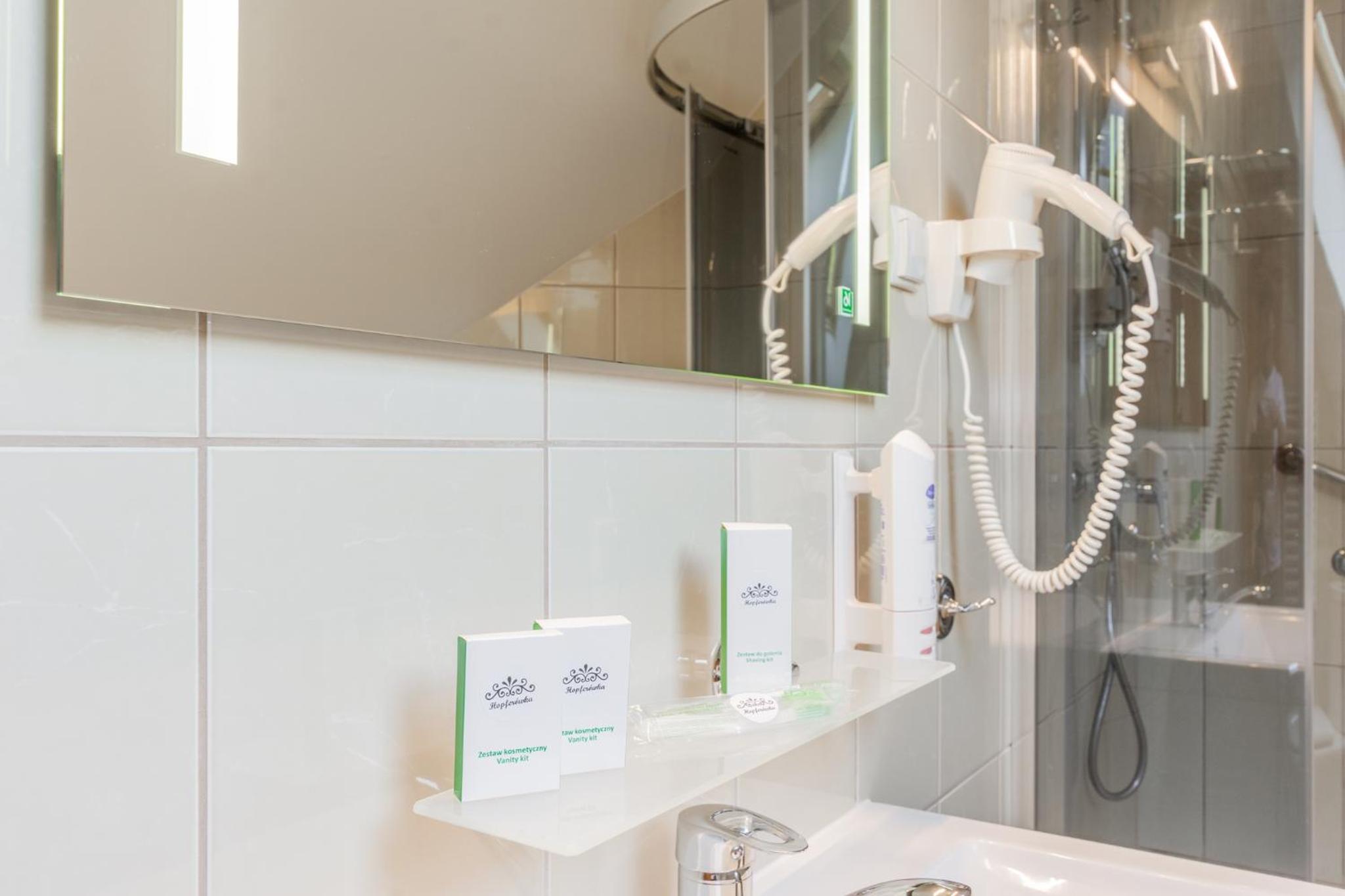 The rooms at Hopferówka are not only spacious but also elegantly decorated in warm colors, providing a cozy and inviting atmosphere. Guests can unwind and rejuvenate with a selection of wellness treatments, including massages, offered on-site at an additional cost.