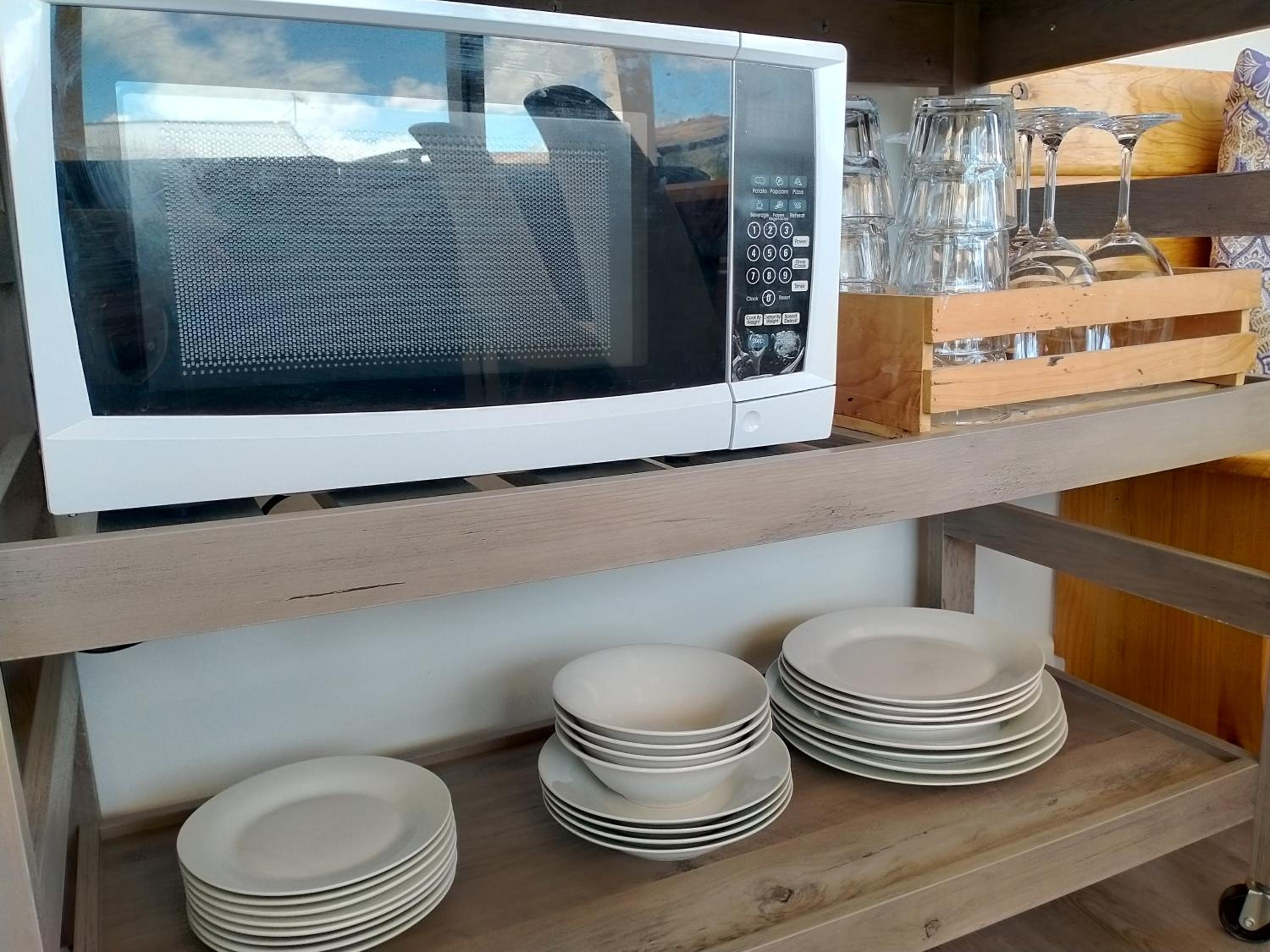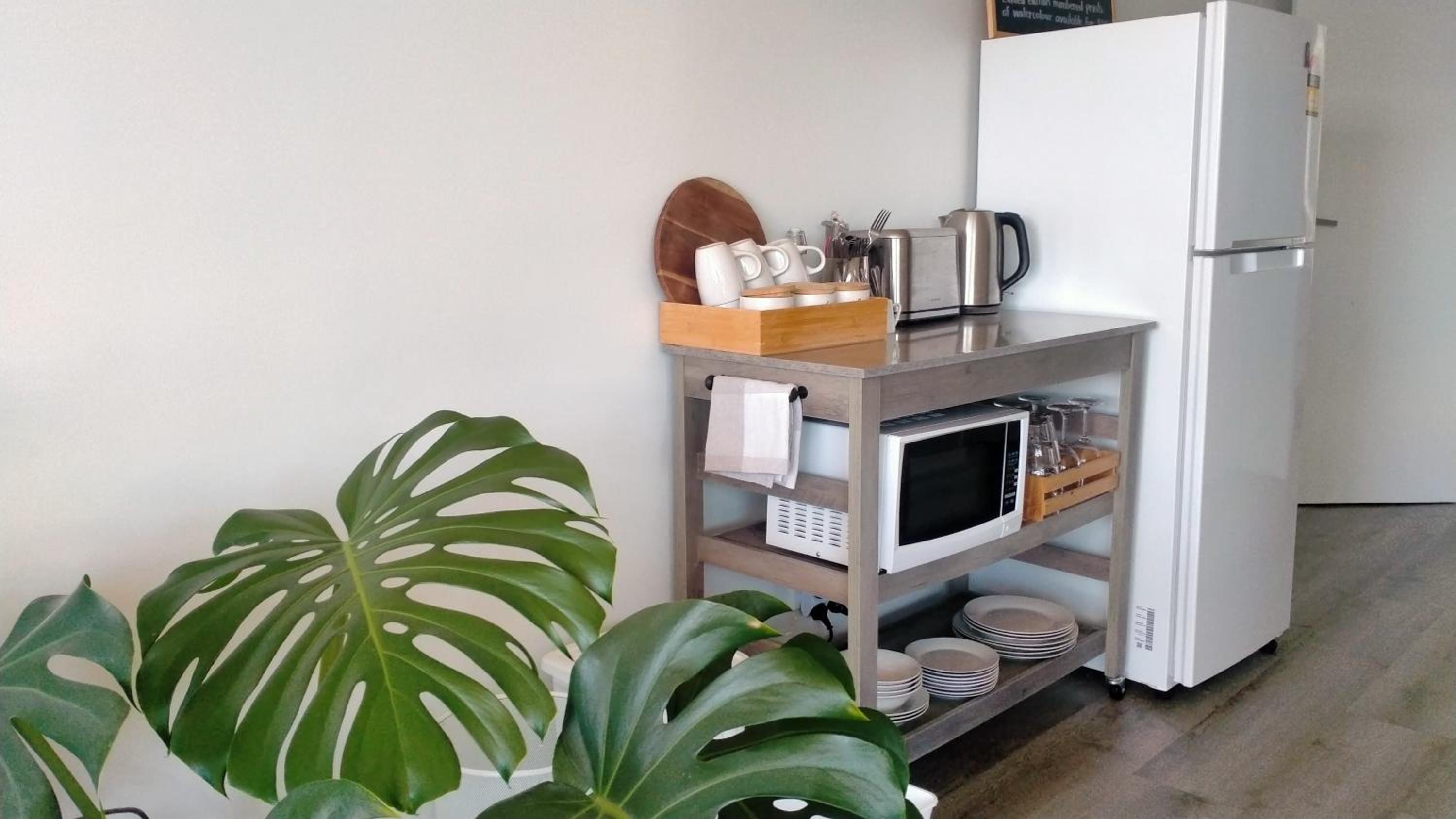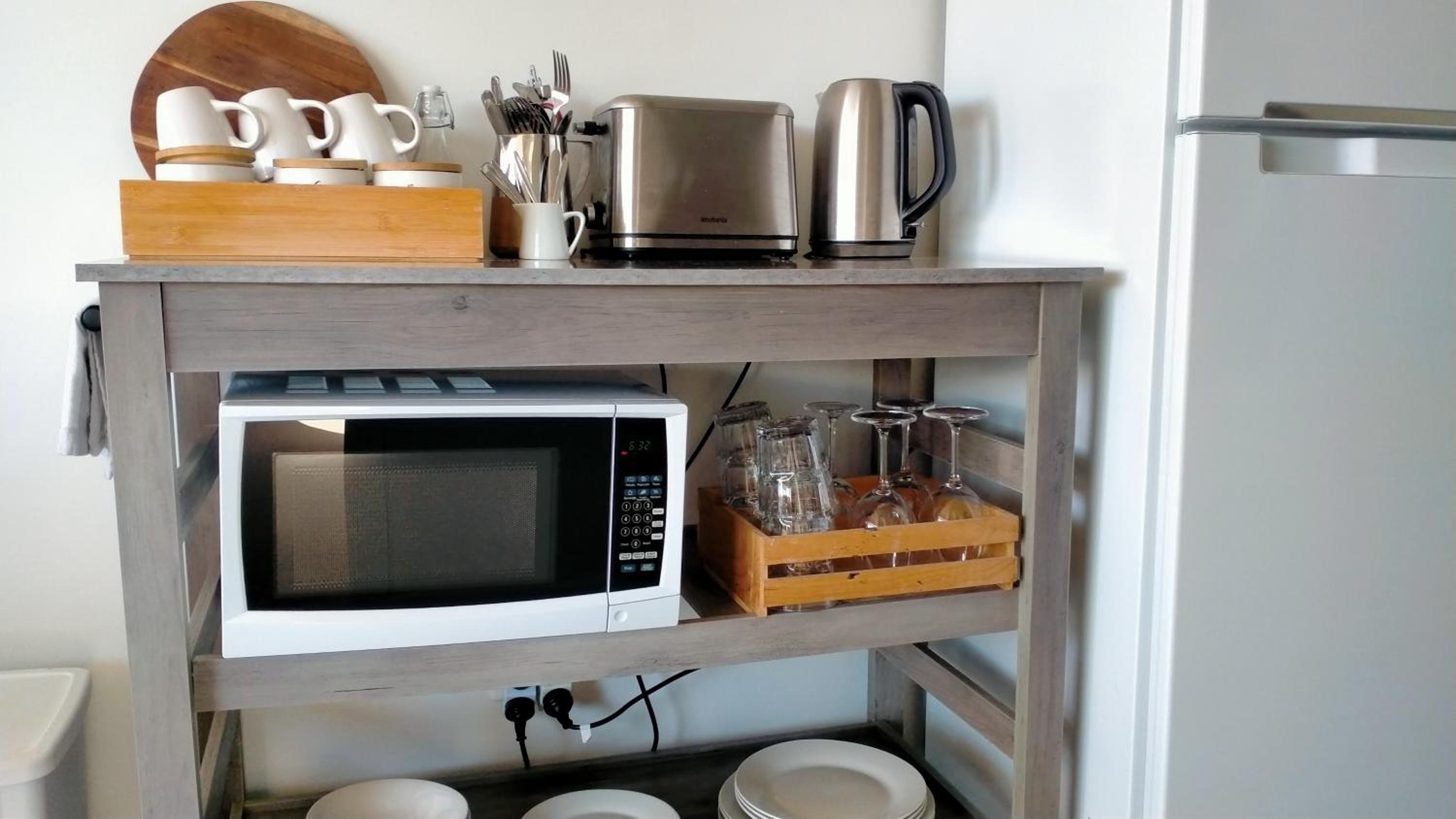 Kitchen facilities excellent except it would have been nice to have some way of cleaning up rather than leaving dirt dishes on floor until the morning . Had to use bathroom basin to swill my dinner plate but other guests just left theirs ( as we were told to do ). I prefer to clean up after dinner and have something to wipe down surfaces and dinner table after other guests . Apart from that hosts very friendly and helpful .