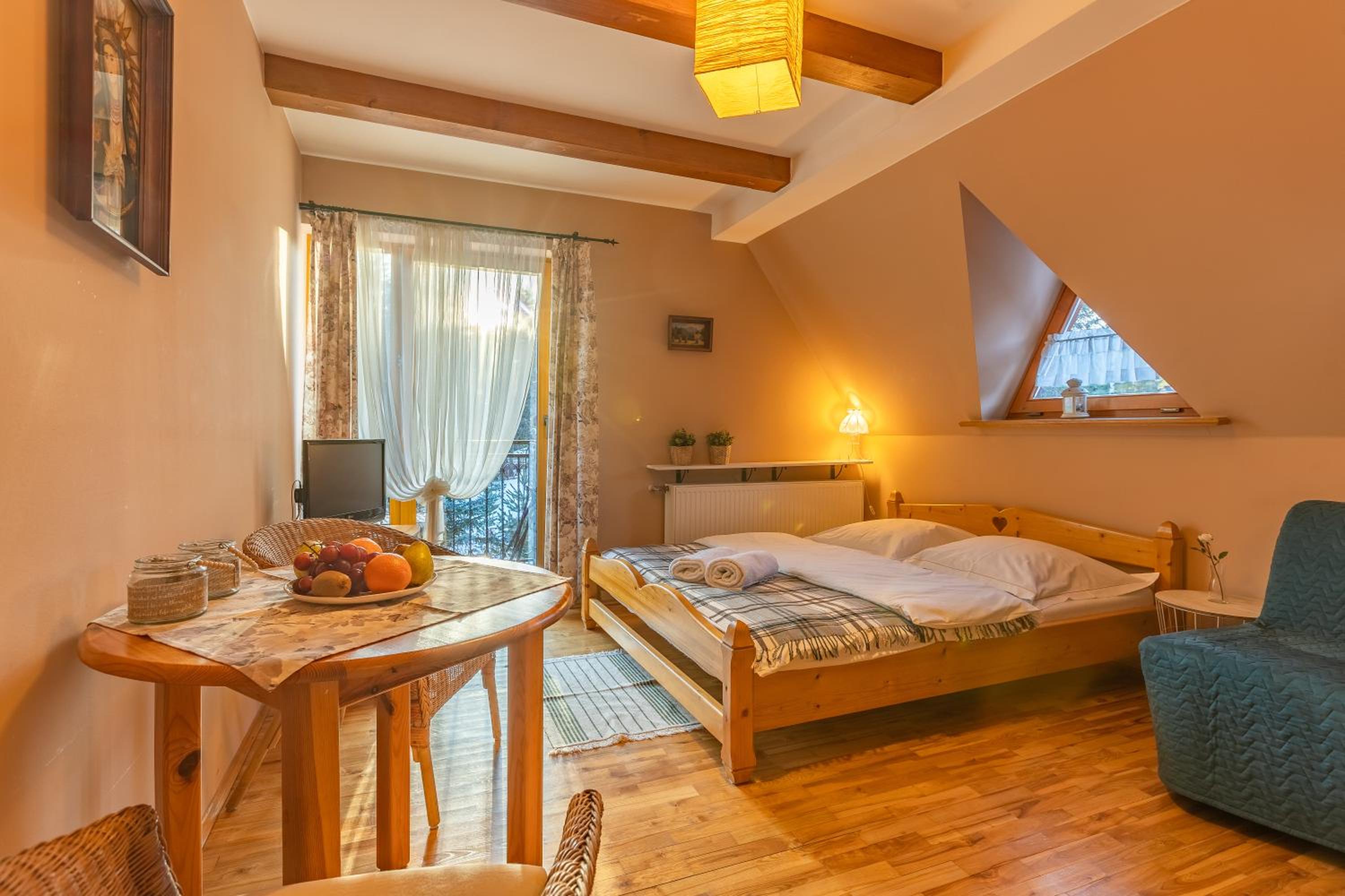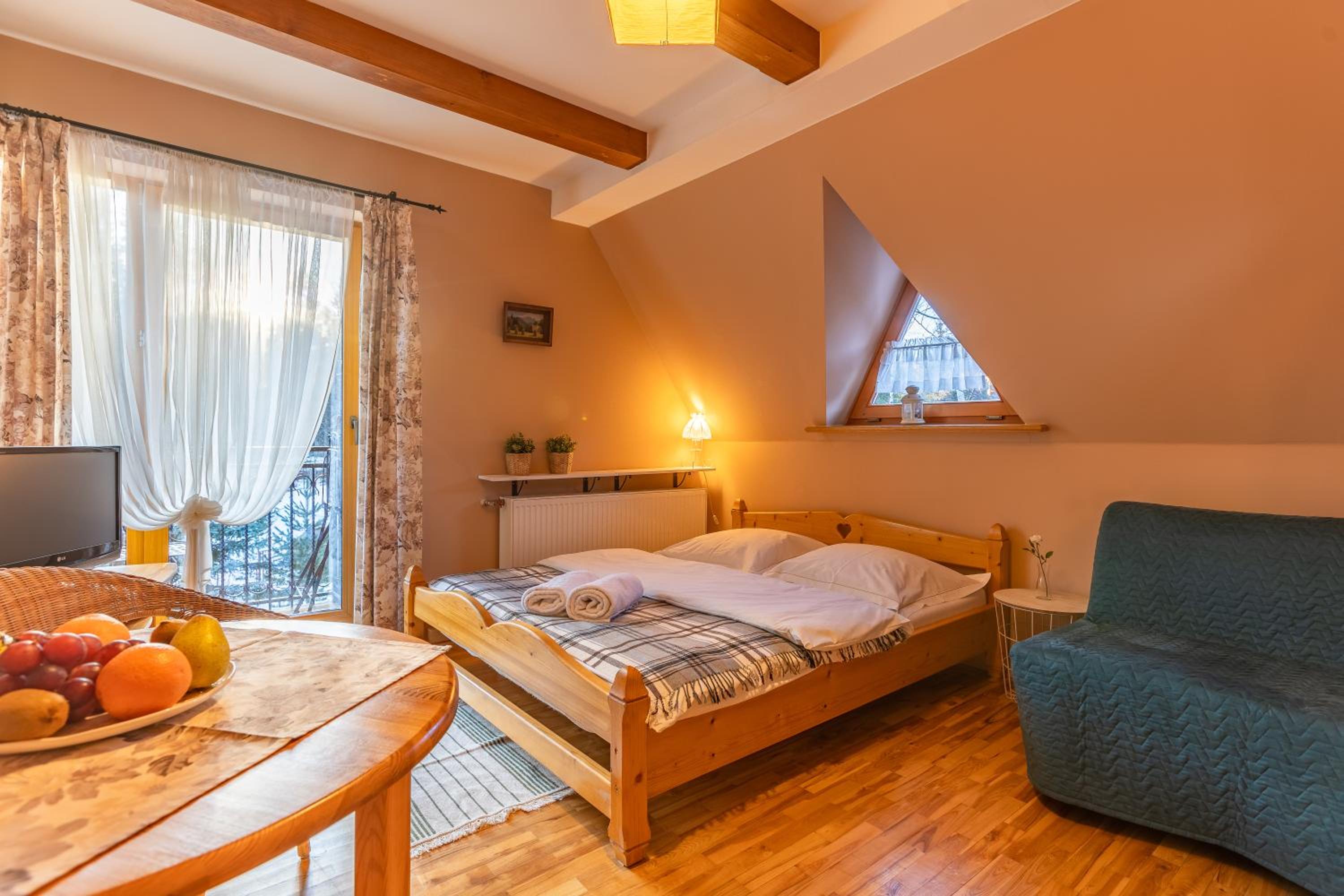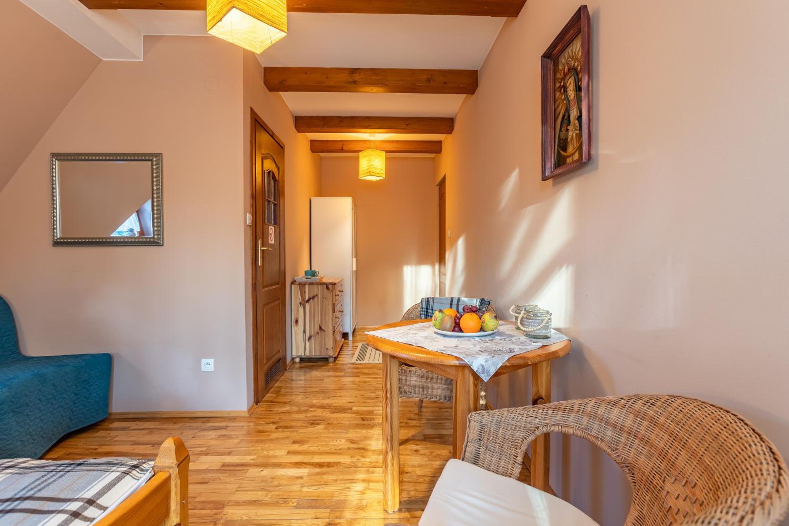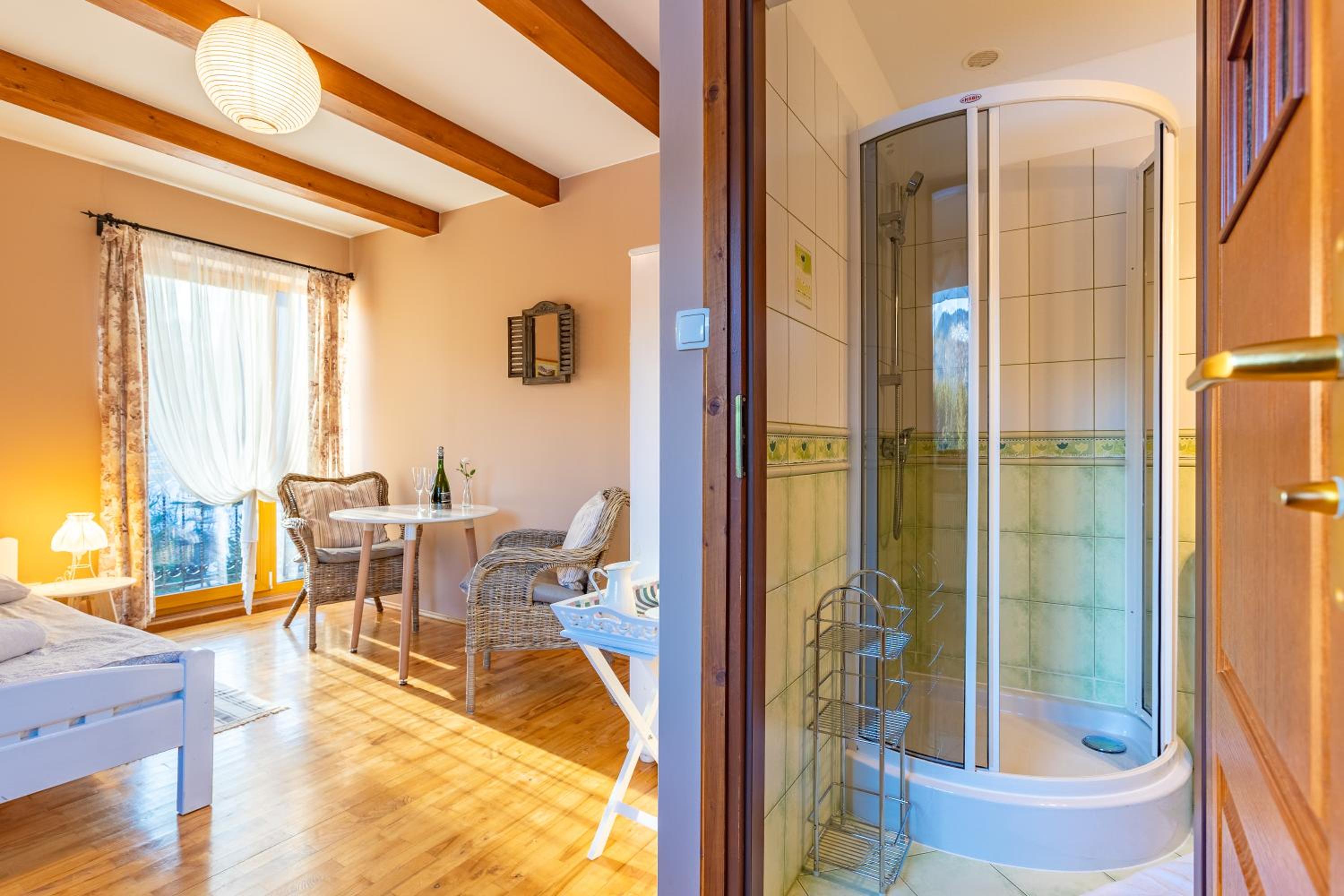 Fajne miejsce na wypad w Dolinę Małej Łąki i Dolinę Kościeliską. Cisza wokół, piękne widoki na Czerwone Wierchy i Giewont. Rano można usiąść z kawka na balkonie i popatrzeć na szczyty. Czysto pachnąco, w aneksie kuchennym wszystko co potrzebne jest. Komfortowe pokoje, łóżka wygodne można się porządnie wyspać. Polecam, wrócimy zapewne 😄