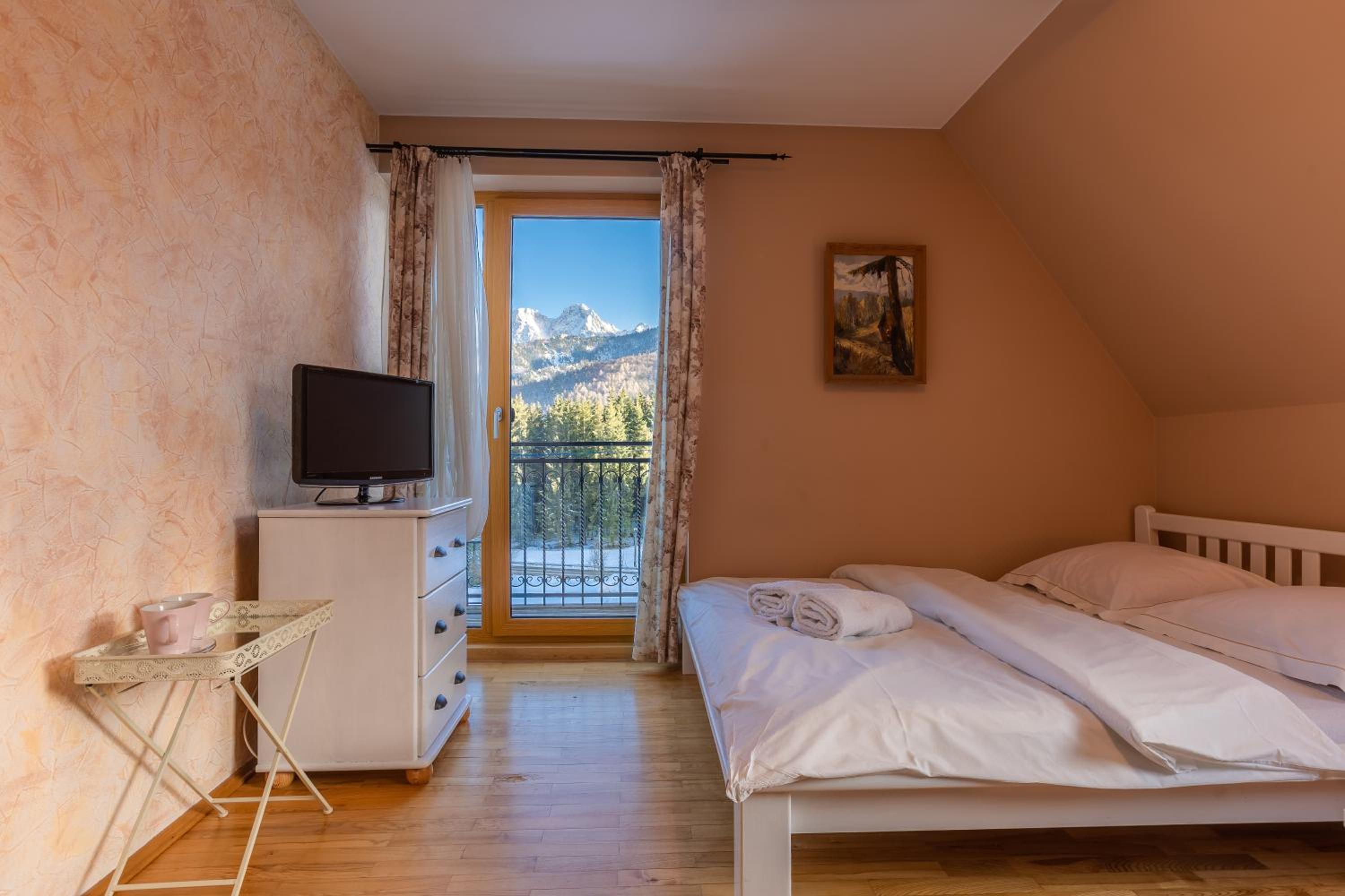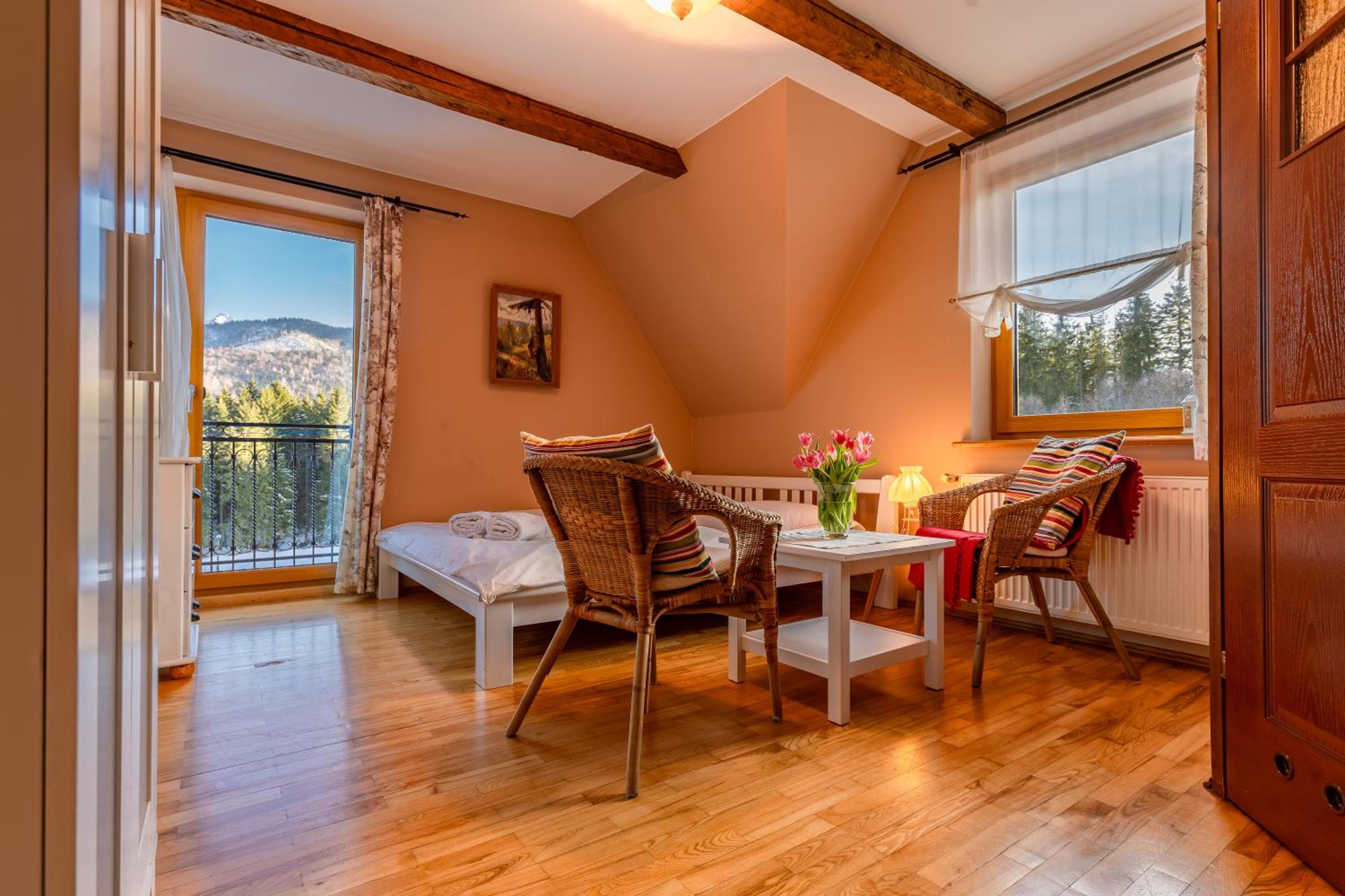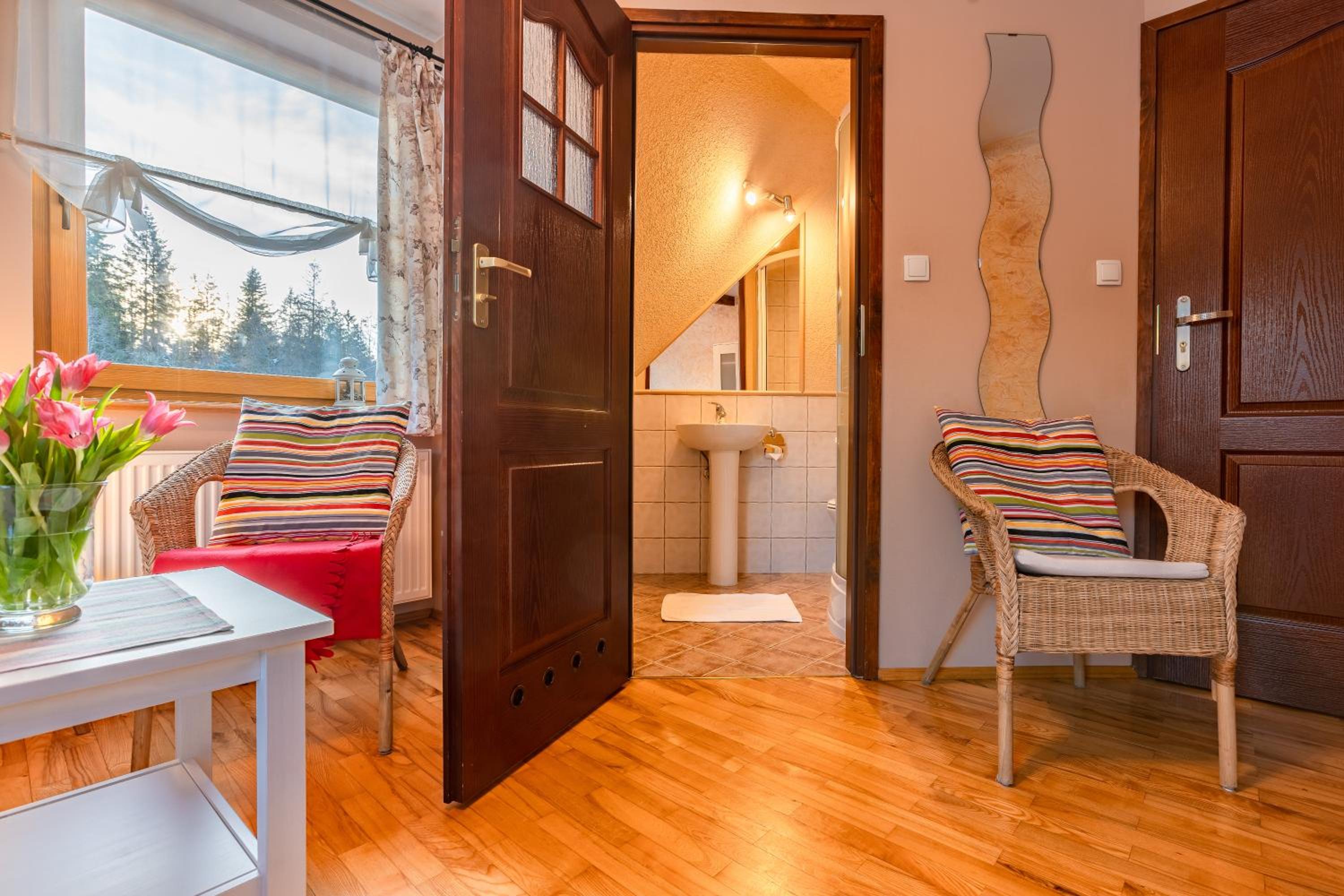 Fajne miejsce na wypad w Dolinę Małej Łąki i Dolinę Kościeliską. Cisza wokół, piękne widoki na Czerwone Wierchy i Giewont. Rano można usiąść z kawka na balkonie i popatrzeć na szczyty. Czysto pachnąco, w aneksie kuchennym wszystko co potrzebne jest. Komfortowe pokoje, łóżka wygodne można się porządnie wyspać. Polecam, wrócimy zapewne 😄