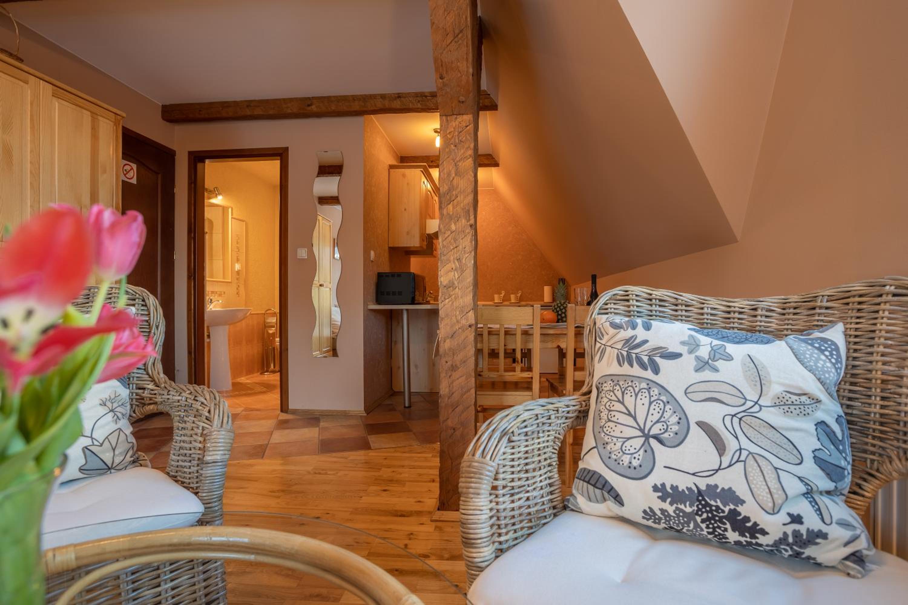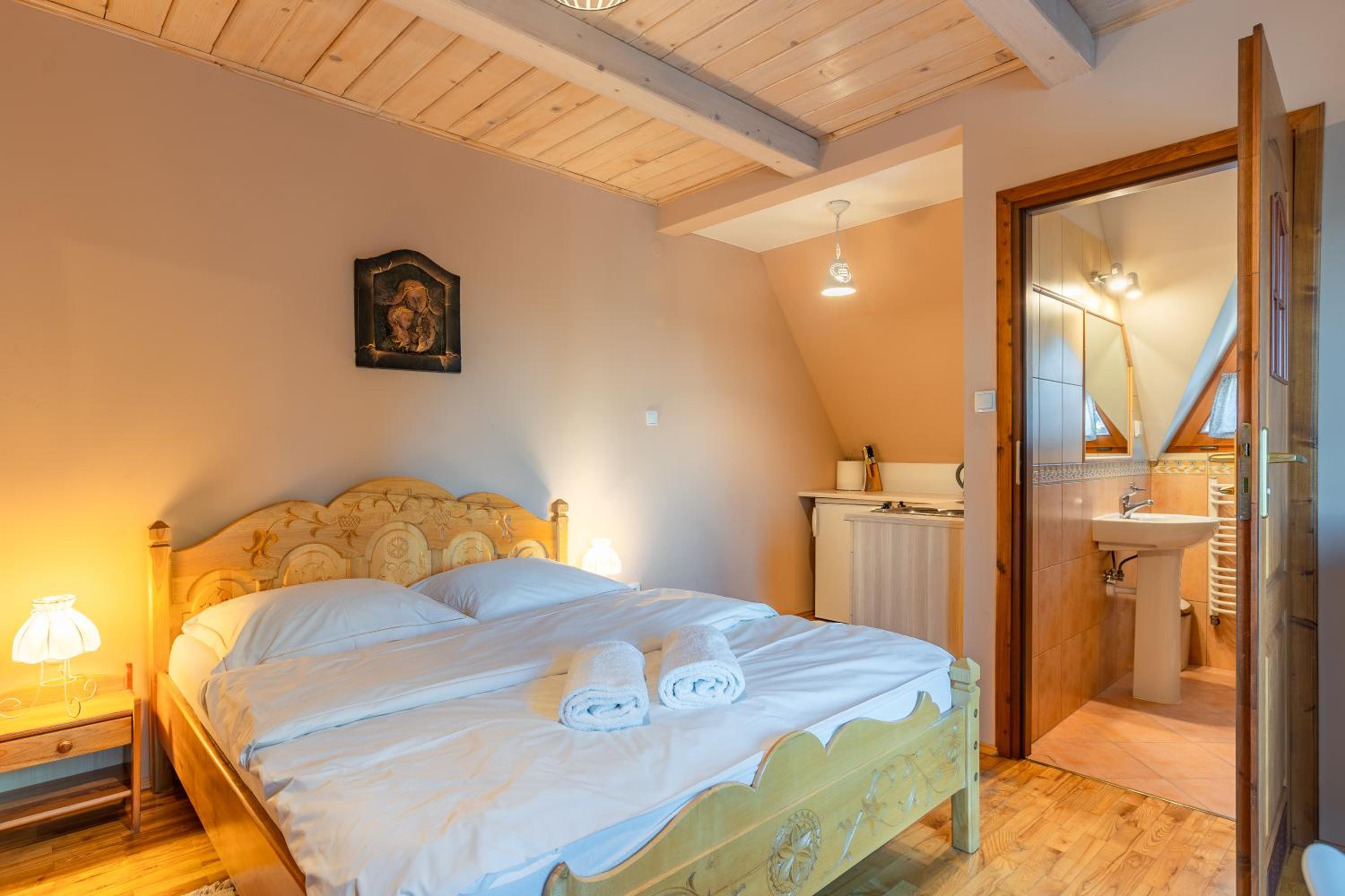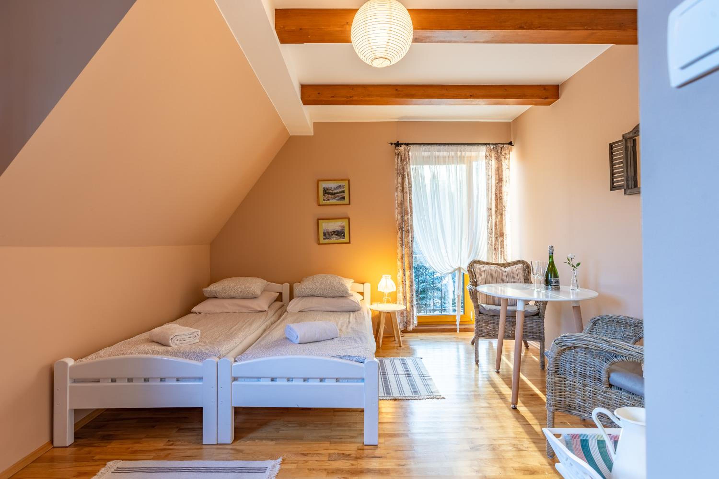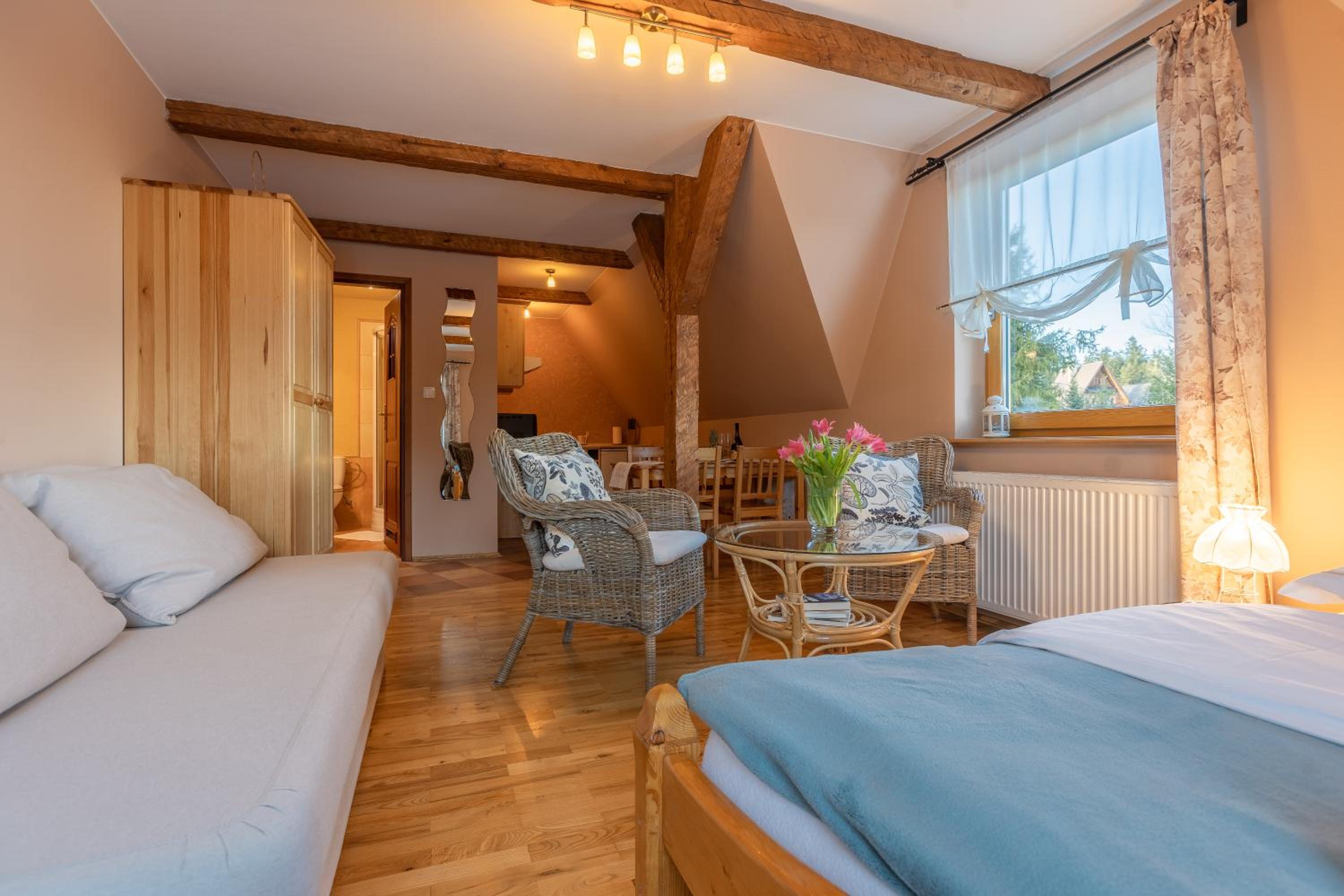 Fajne miejsce na wypad w Dolinę Małej Łąki i Dolinę Kościeliską. Cisza wokół, piękne widoki na Czerwone Wierchy i Giewont. Rano można usiąść z kawka na balkonie i popatrzeć na szczyty. Czysto pachnąco, w aneksie kuchennym wszystko co potrzebne jest. Komfortowe pokoje, łóżka wygodne można się porządnie wyspać. Polecam, wrócimy zapewne 😄