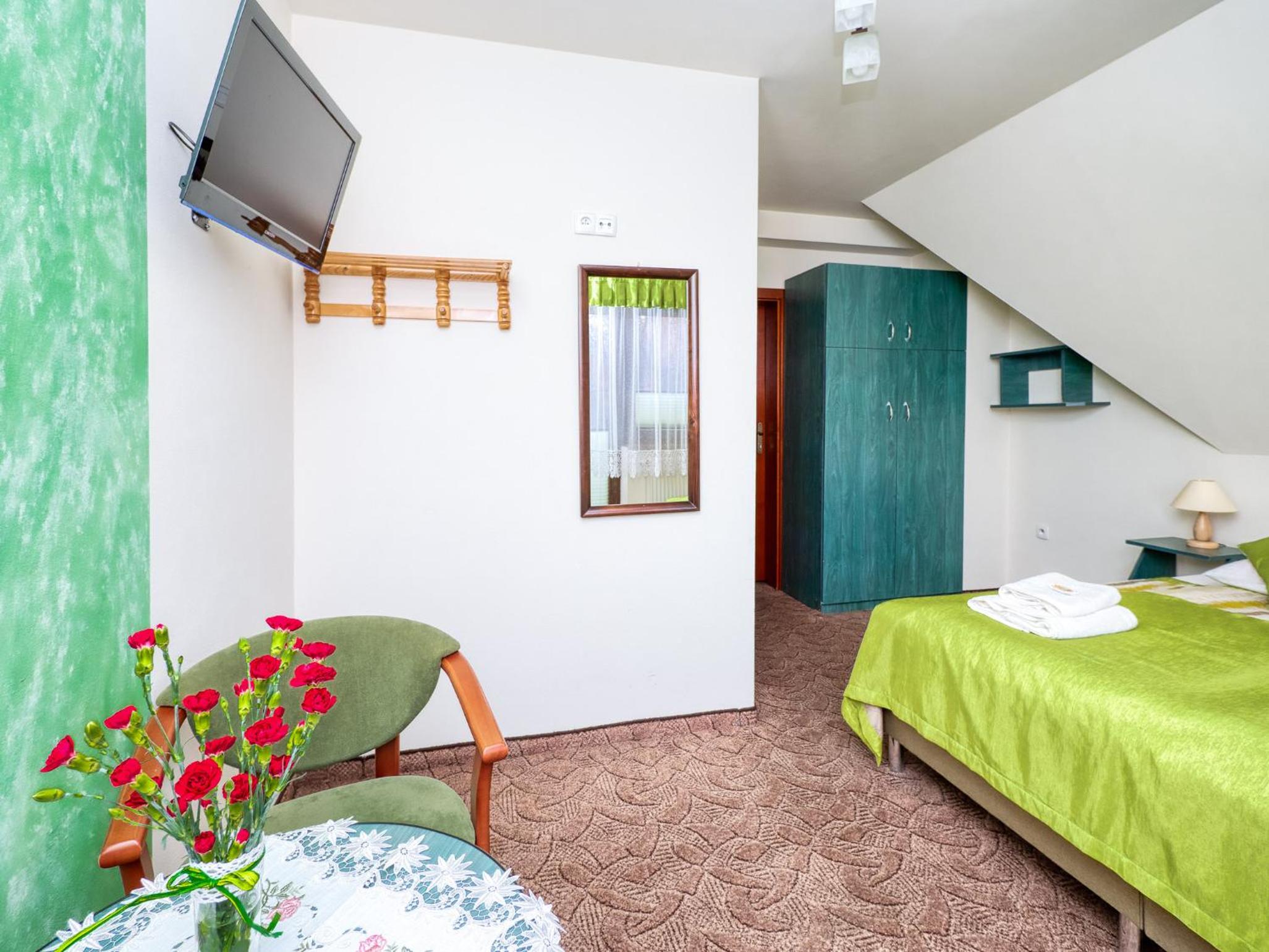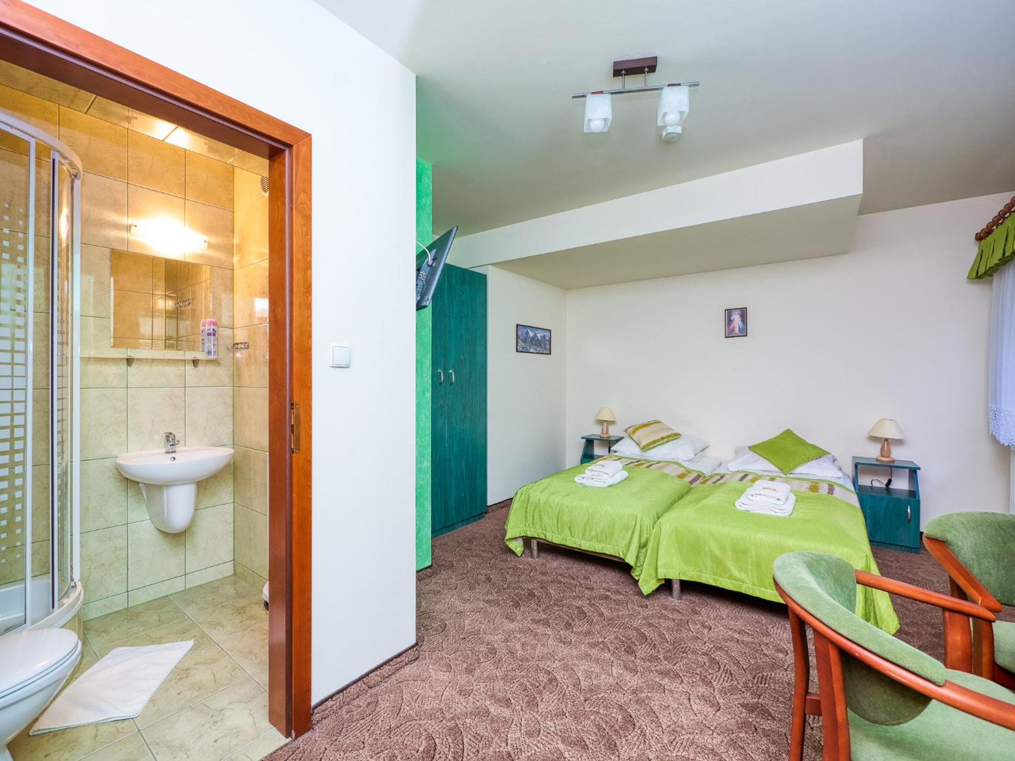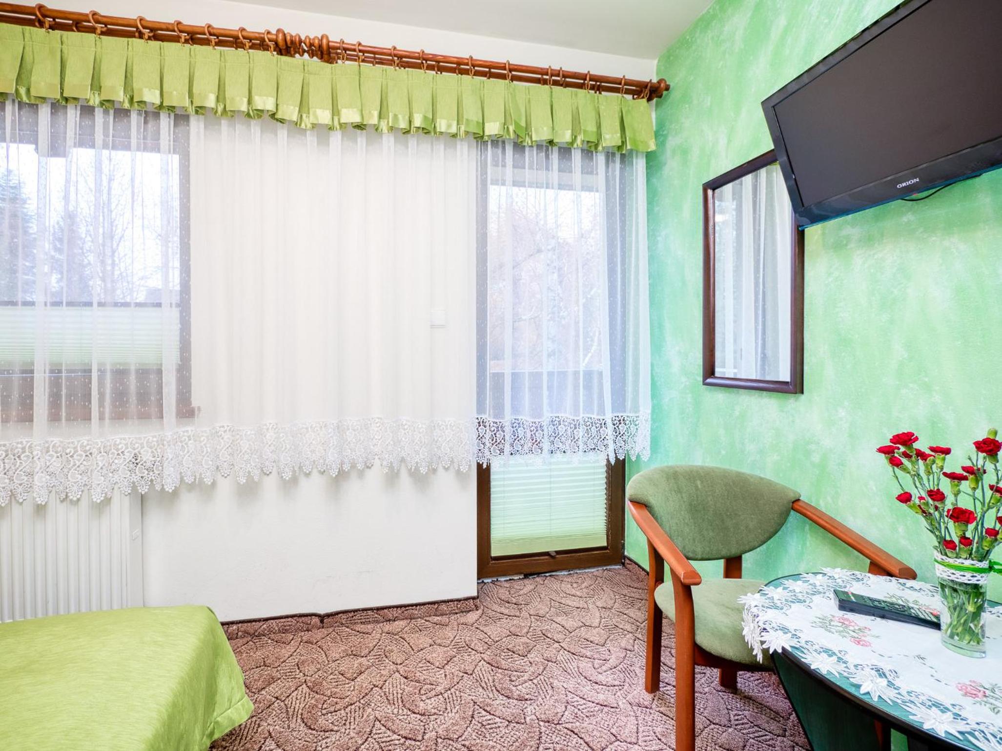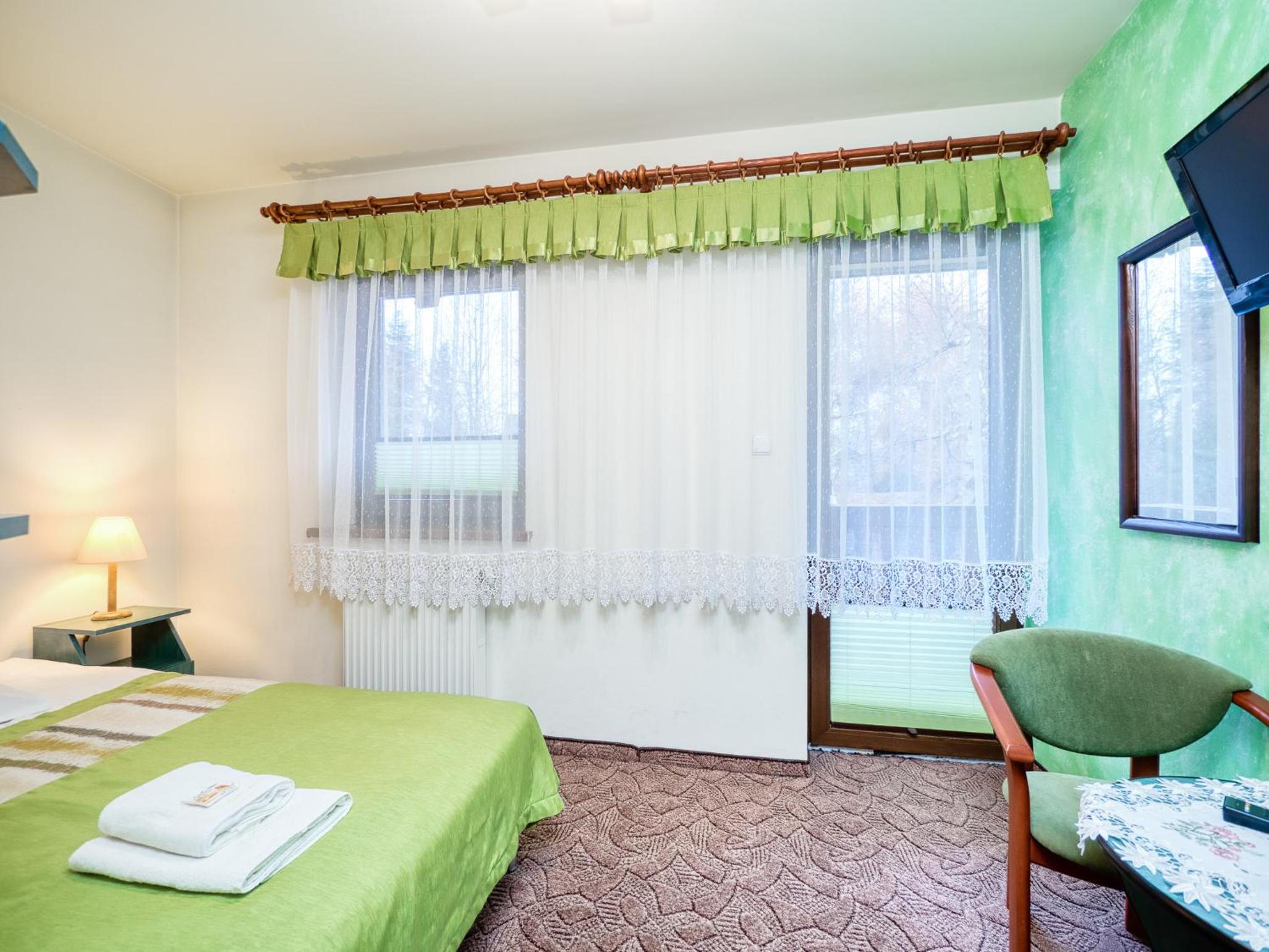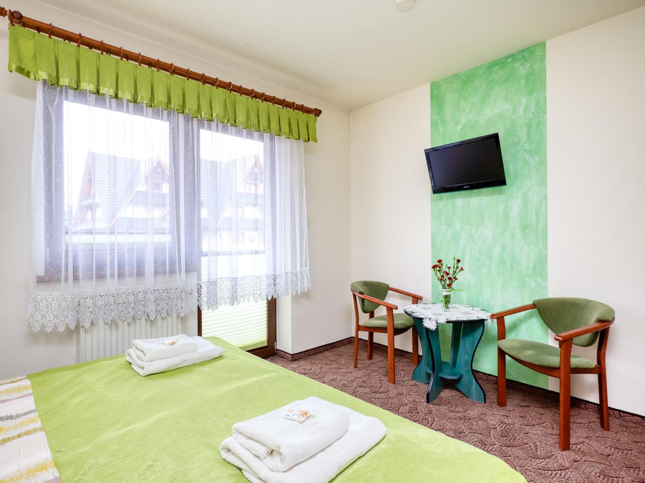 Lokalizacja super. Piechotą 15 minut do wyciągu. Bardzo dobre śniadania. Narciarnia z suszarkami na buty. Bardzo mili właściciele i personel w kuchni.