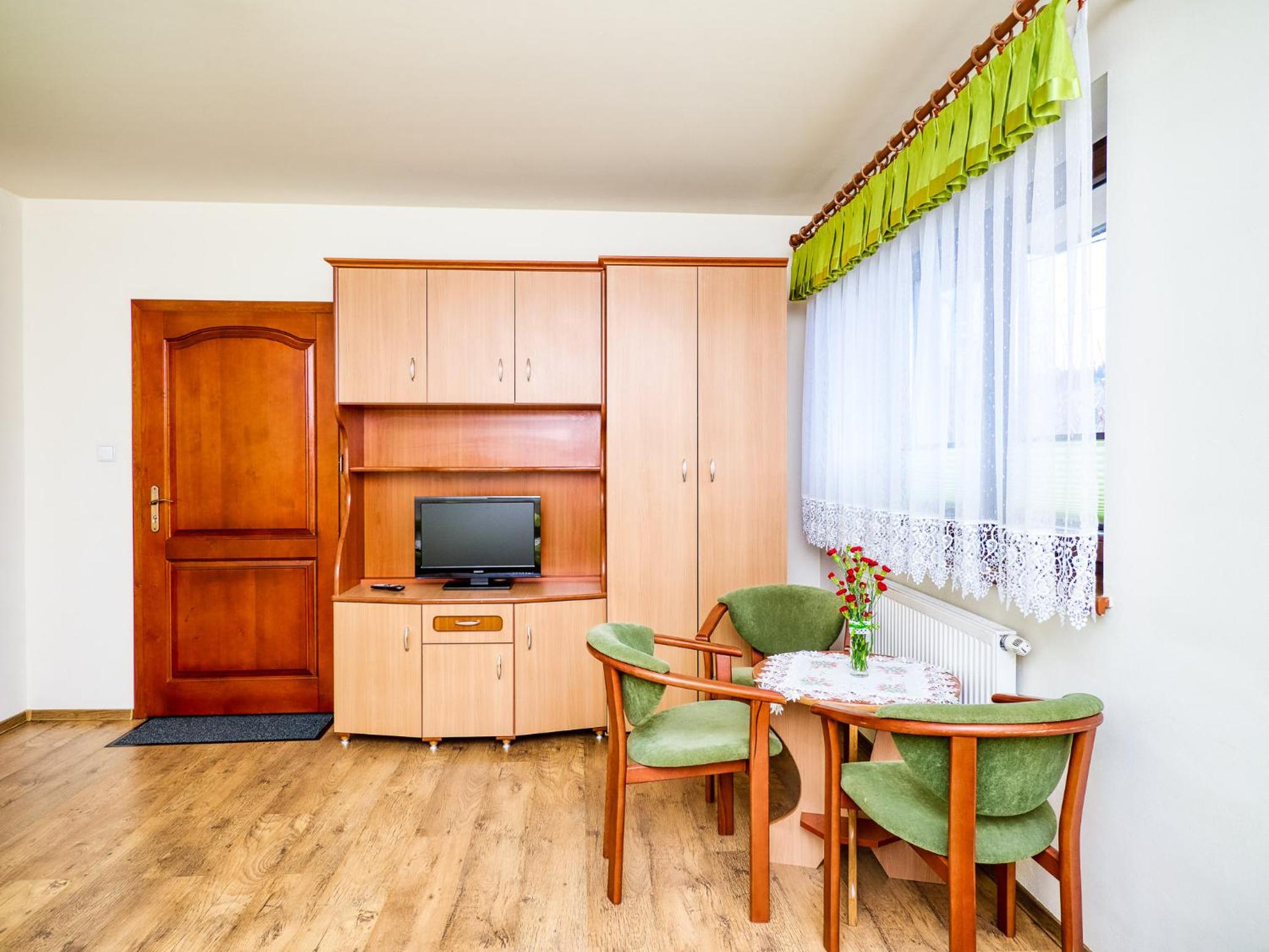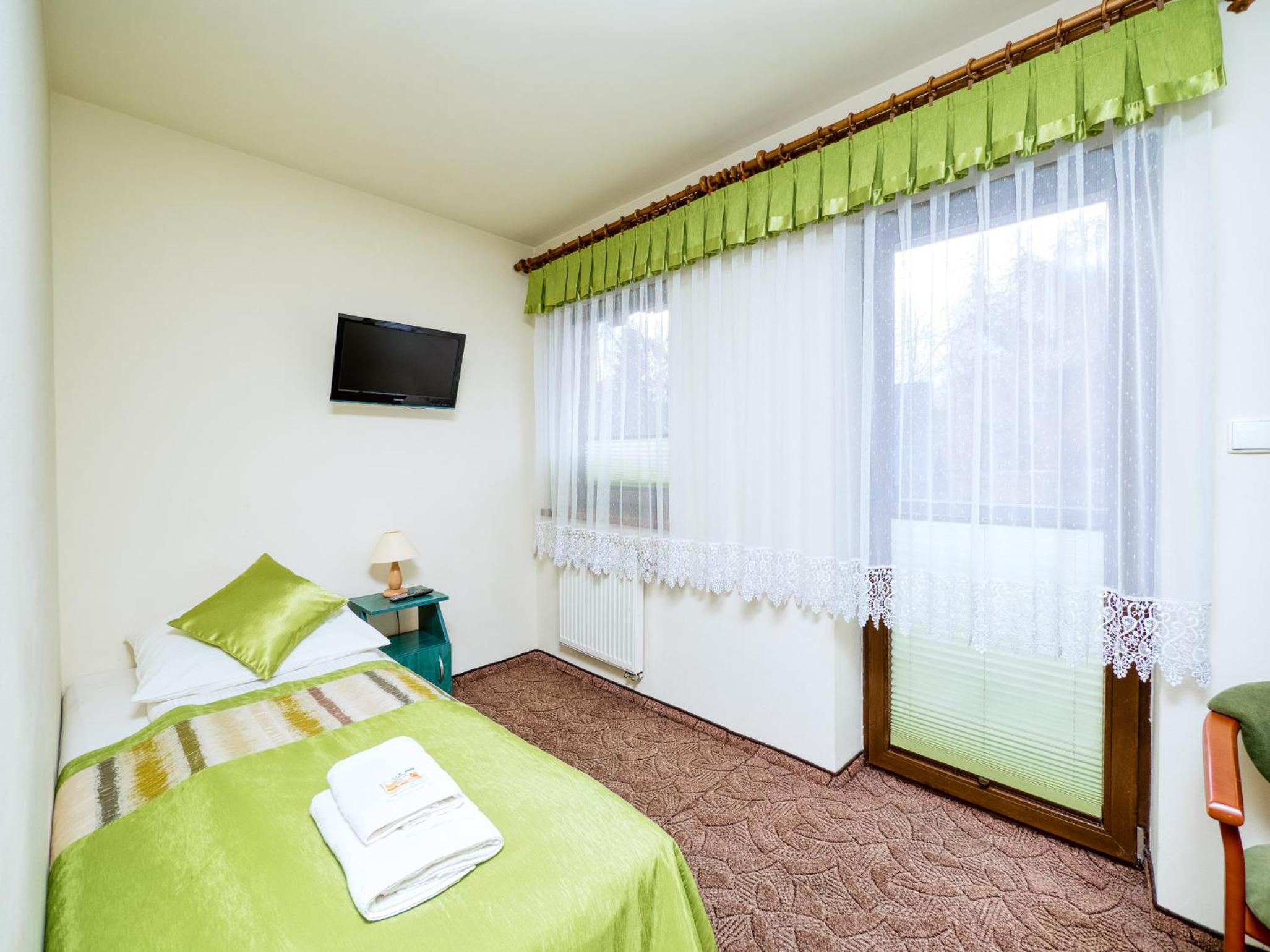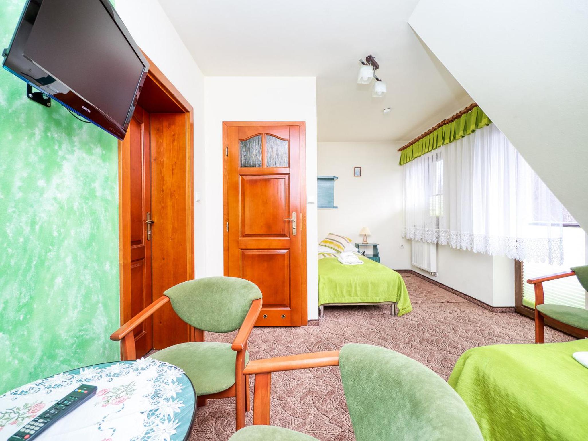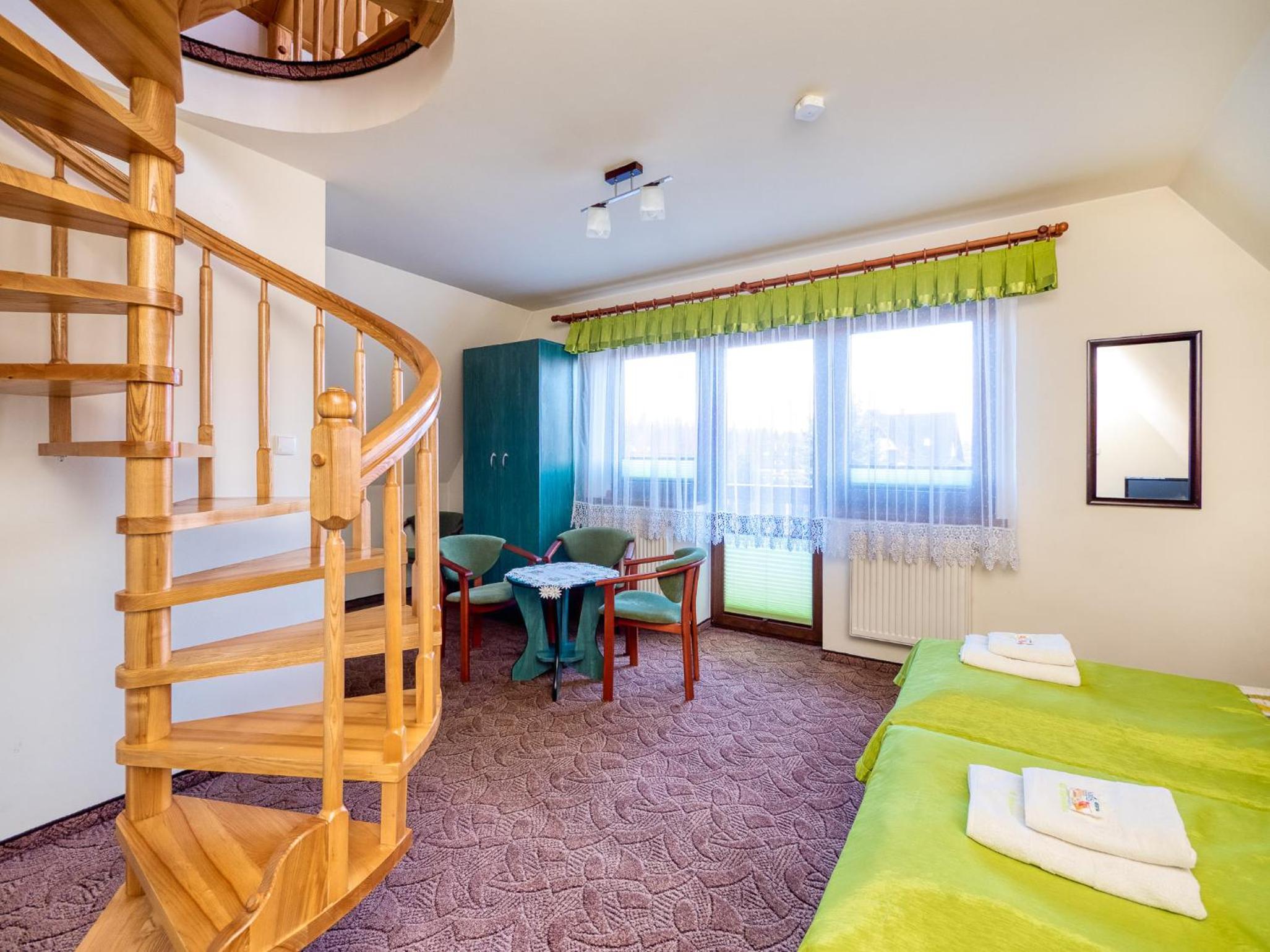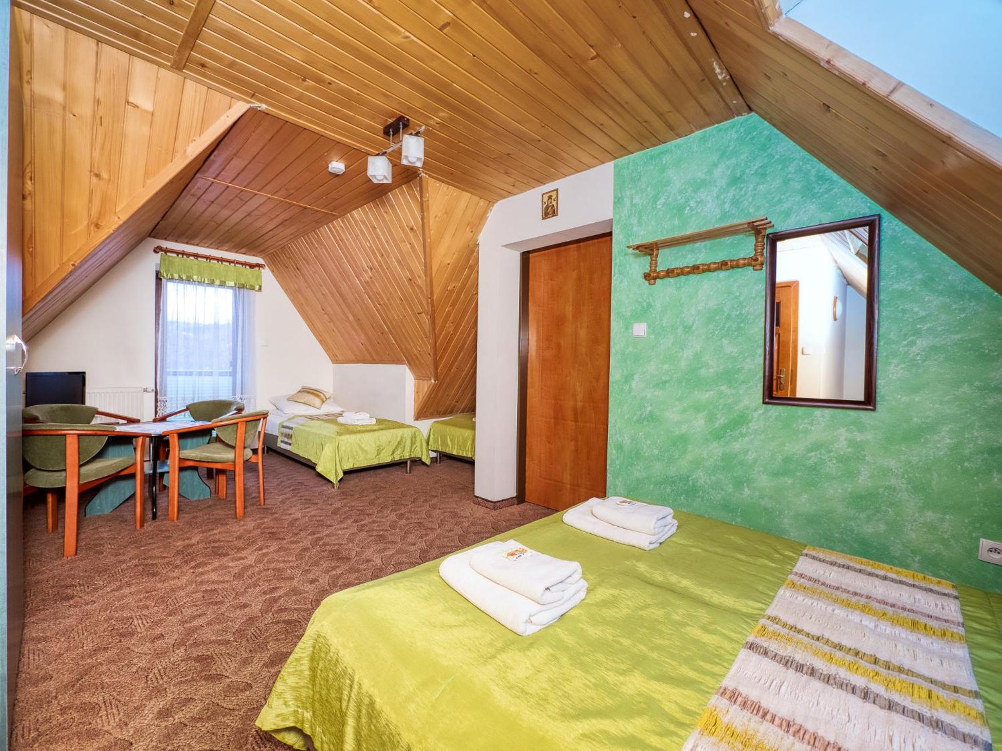 Lokalizacja super. Piechotą 15 minut do wyciągu. Bardzo dobre śniadania. Narciarnia z suszarkami na buty. Bardzo mili właściciele i personel w kuchni.