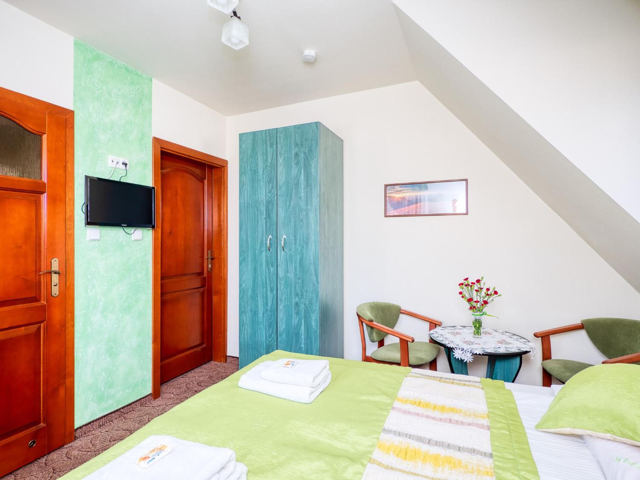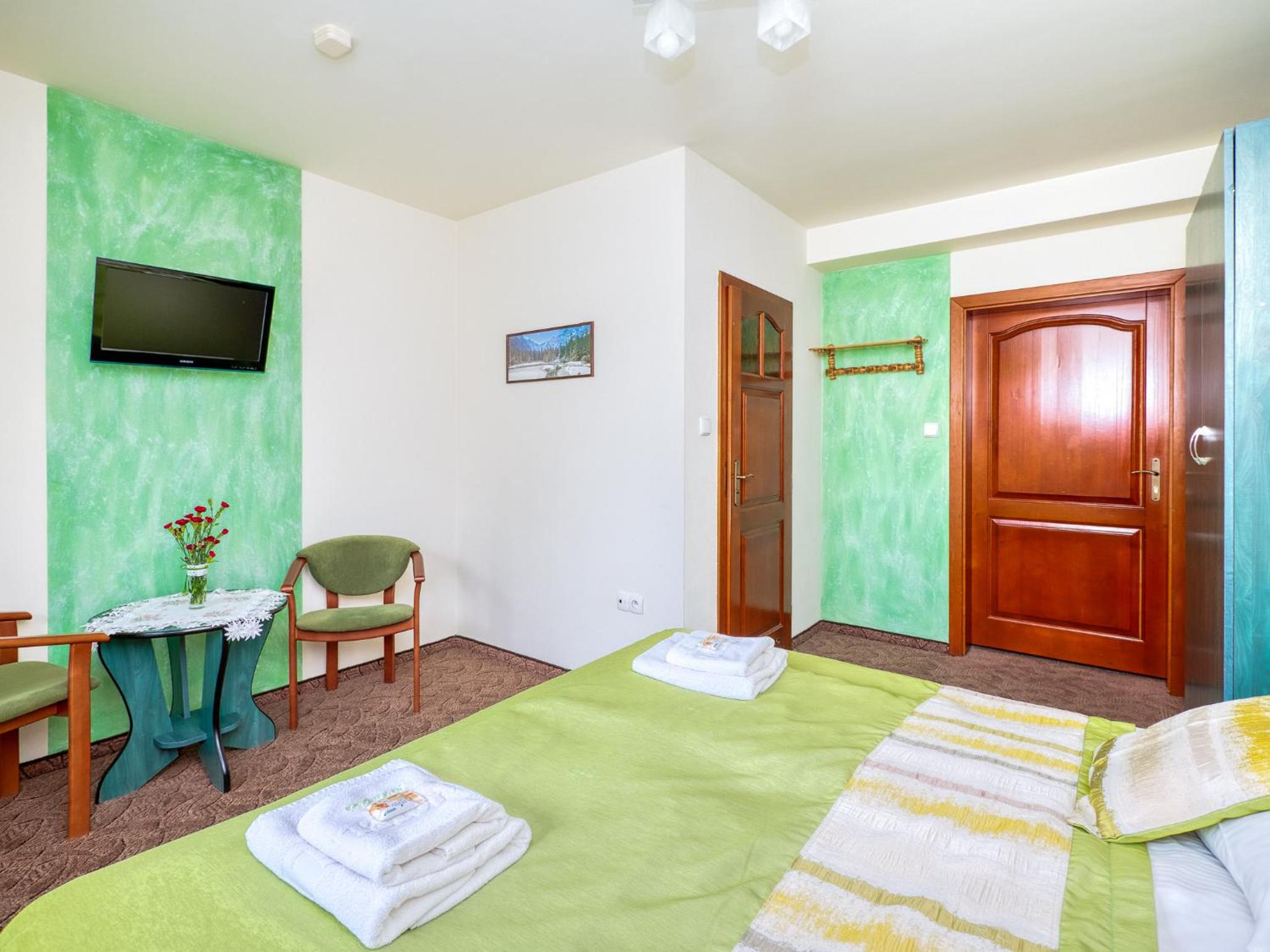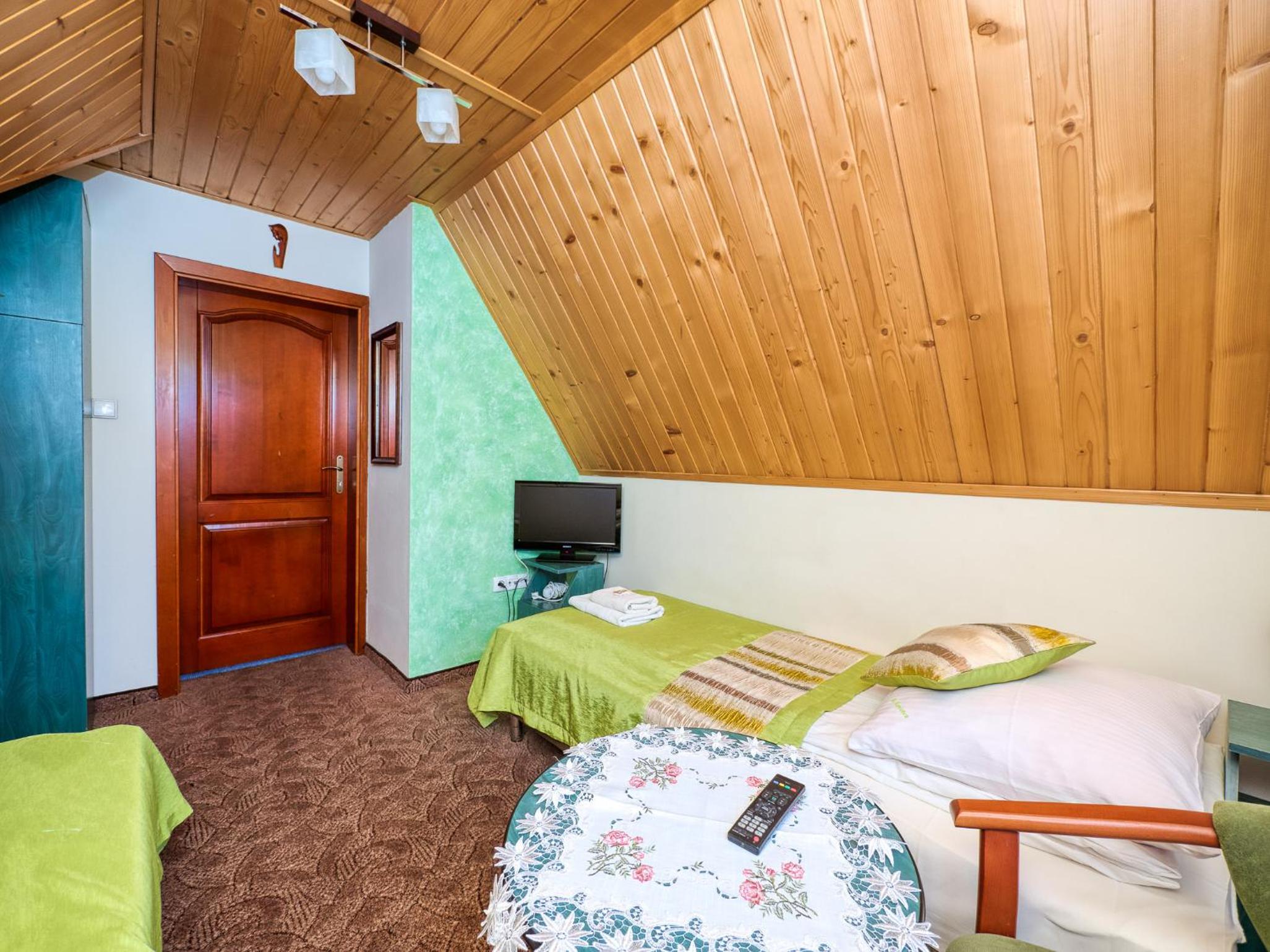 Ubytko je skvelé, skromné, ale na pár dňový výlet na lyže alebo na turistiku úplne v pohode. Na izbe je telka, sprcha wecko dokonca aj konvic, nič viac netreba. Dá sa využiť aj lyžiareň. Raňajky sú fajnové a tetušky radi spravia na želanie aj niečo teplé ako mtoasty alebo praženicu či párky. Najlepšie na tom všetkom je, že je to len 10min chôdze od vleku a aquaparku. No a pán majiteľ je naozaj veľký pohoďák. Týmto pozdravujeme a ďakujeme:-)