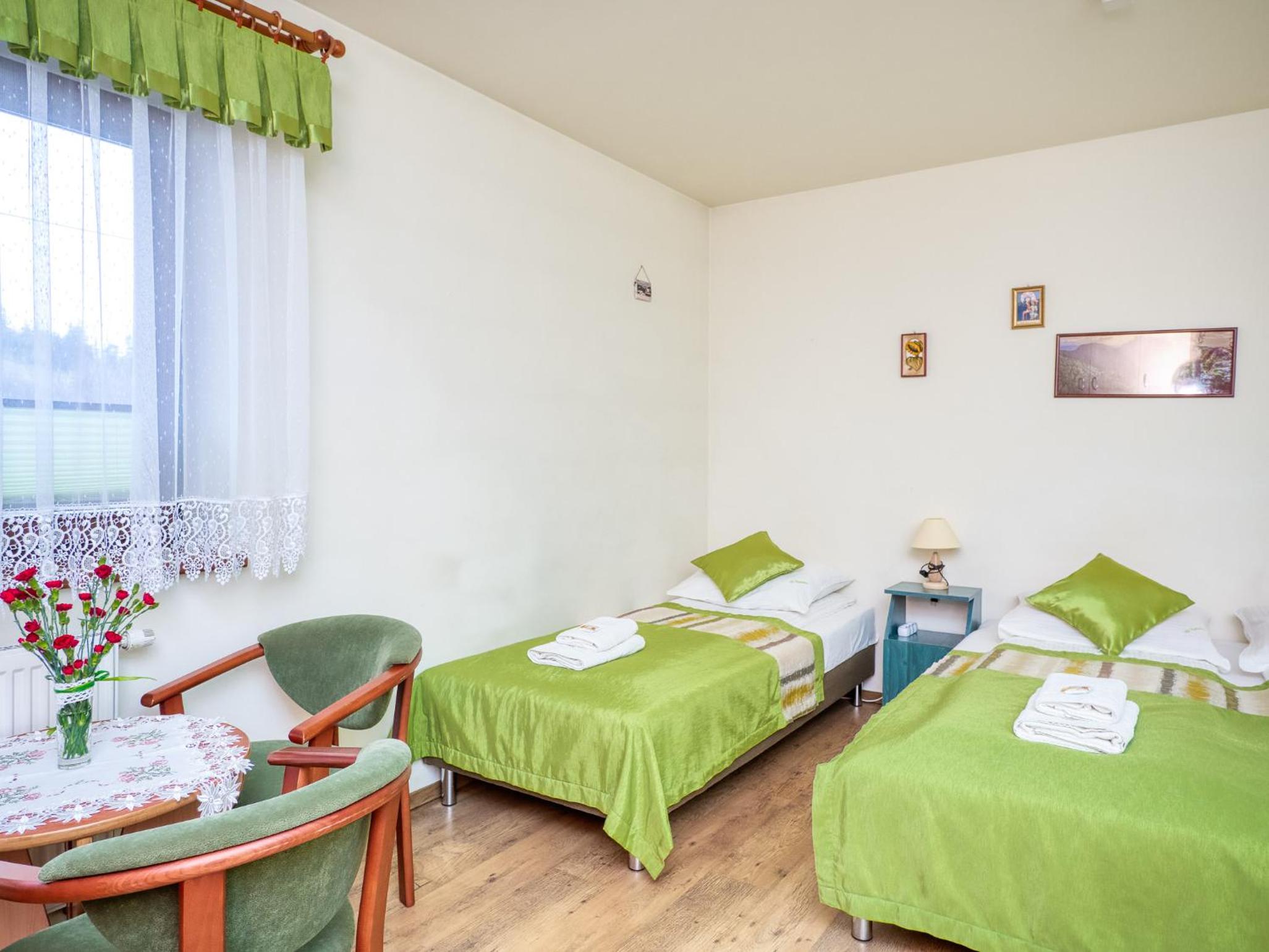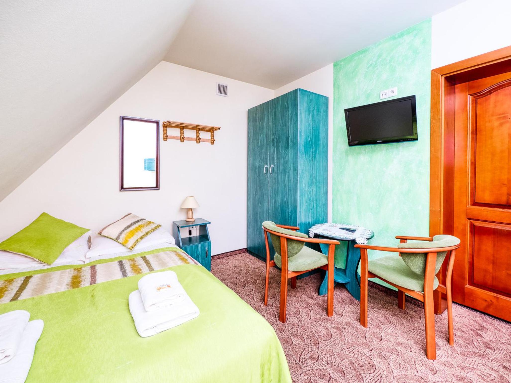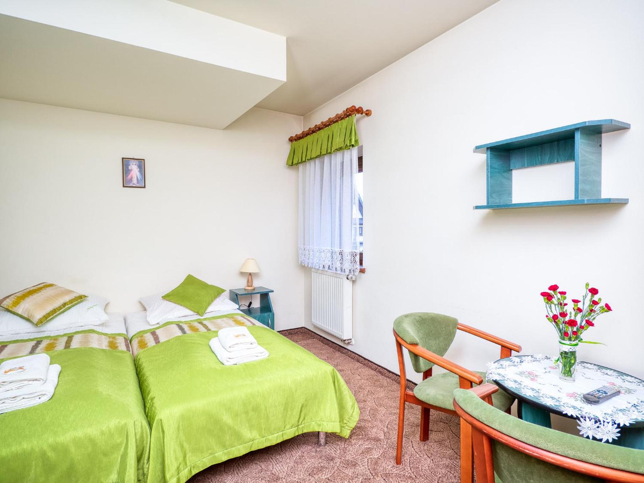 Ubytko je skvelé, skromné, ale na pár dňový výlet na lyže alebo na turistiku úplne v pohode. Na izbe je telka, sprcha wecko dokonca aj konvic, nič viac netreba. Dá sa využiť aj lyžiareň. Raňajky sú fajnové a tetušky radi spravia na želanie aj niečo teplé ako mtoasty alebo praženicu či párky. Najlepšie na tom všetkom je, že je to len 10min chôdze od vleku a aquaparku. No a pán majiteľ je naozaj veľký pohoďák. Týmto pozdravujeme a ďakujeme:-)
