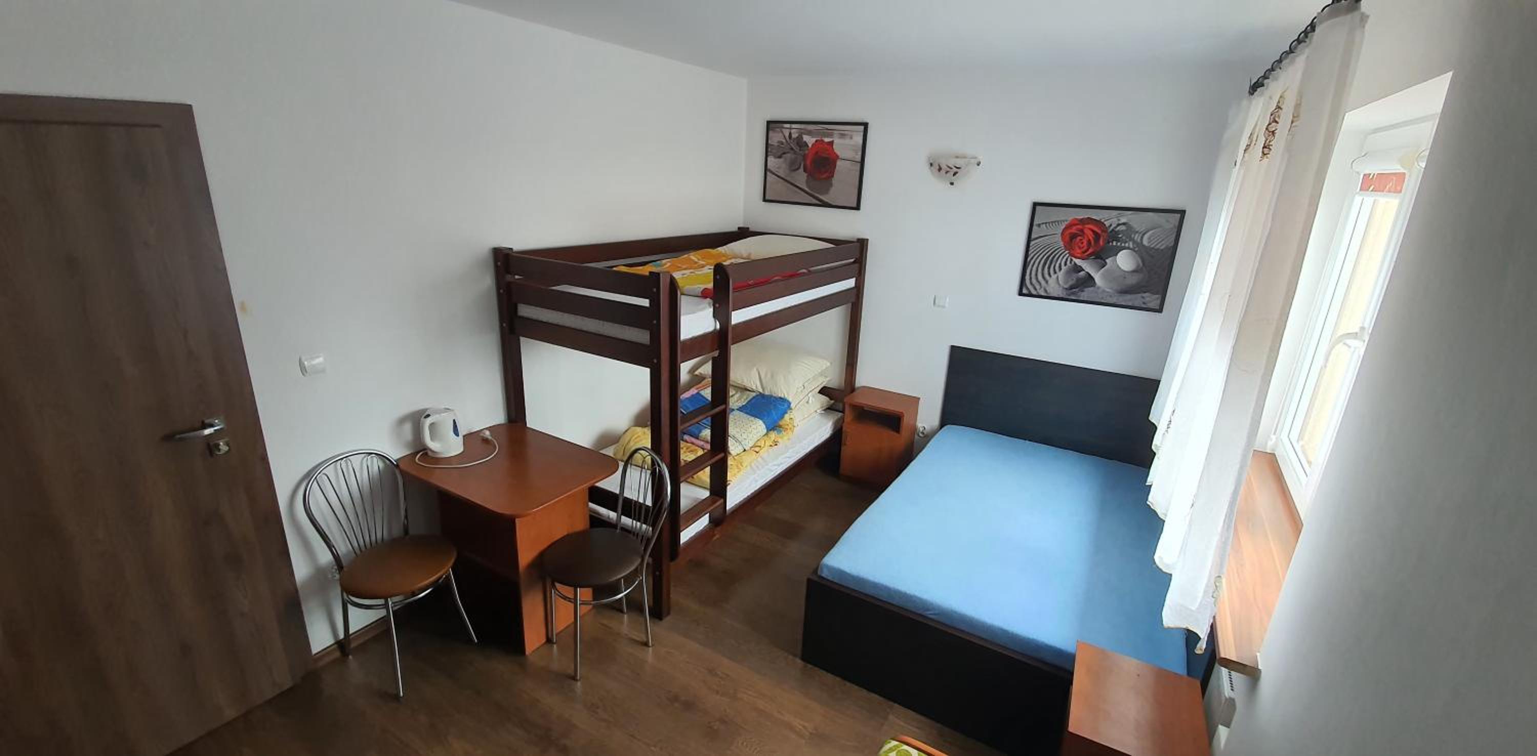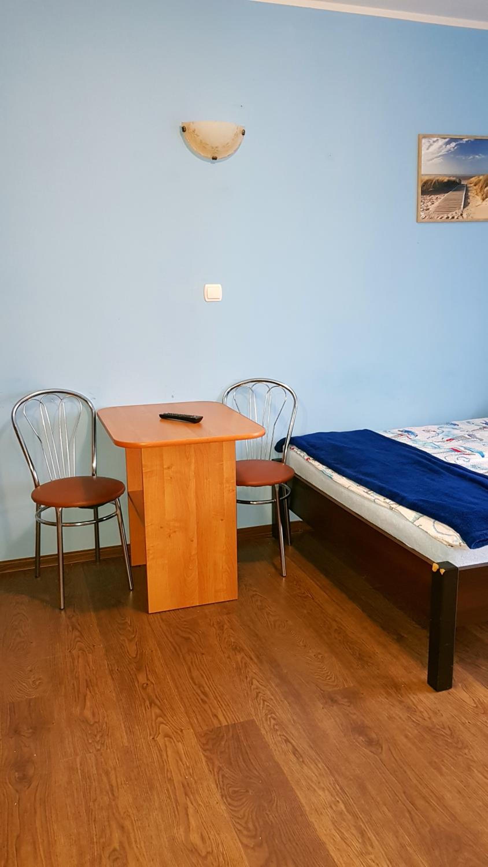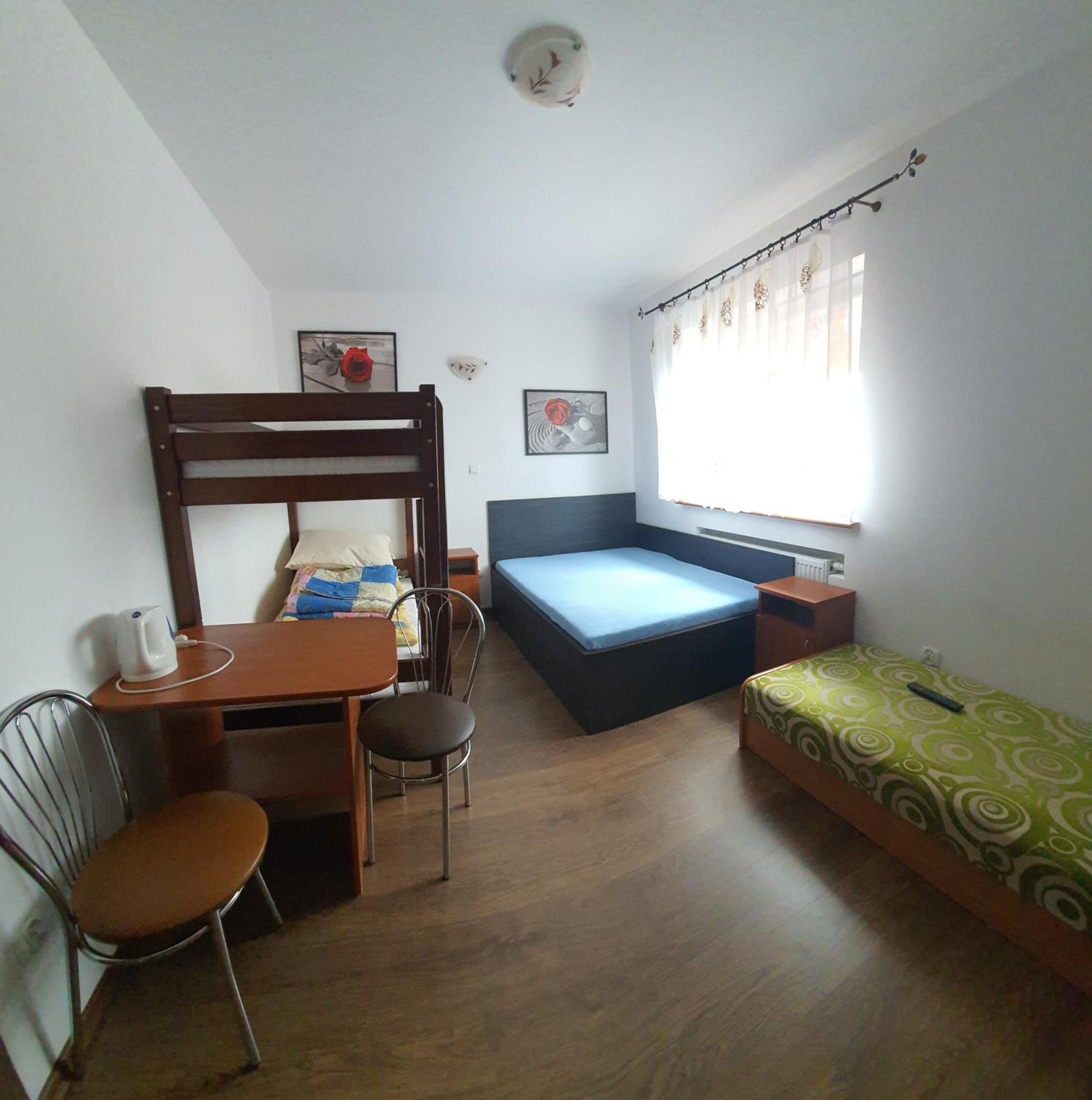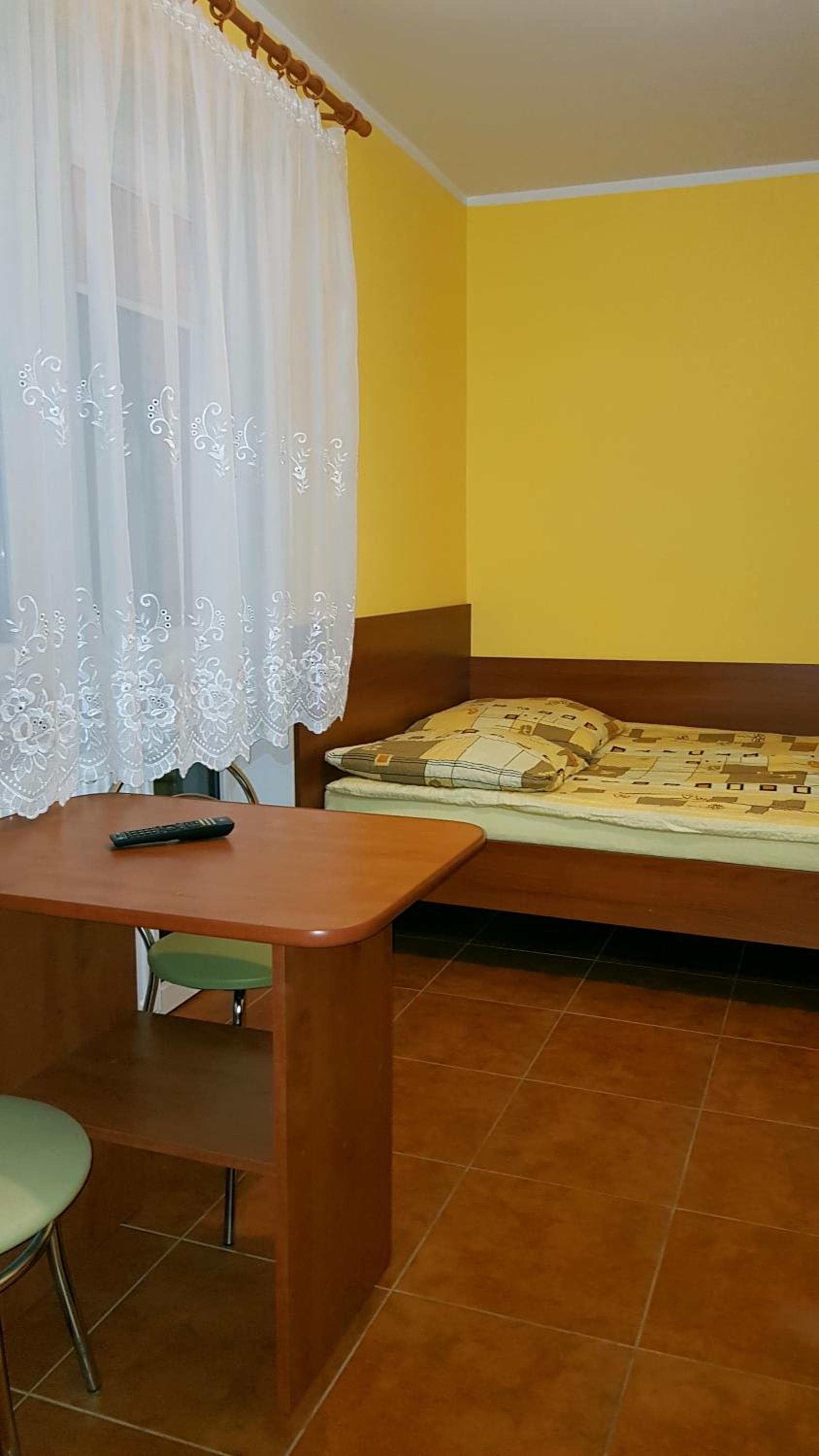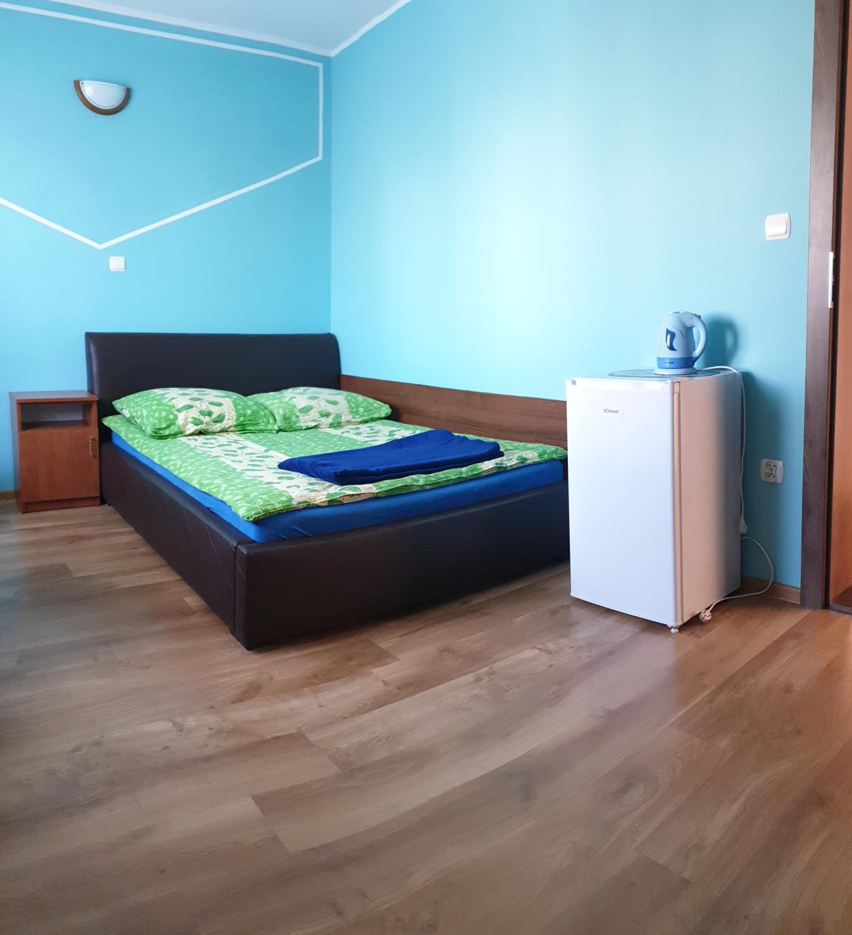 Pokój czysty, duży, łazienka też. W pokoju lodówka i czajnik elektryczny. Na korytarzu dobrze zaopatrzony aneks kuchenny. Obok taras ogólnodostępny .