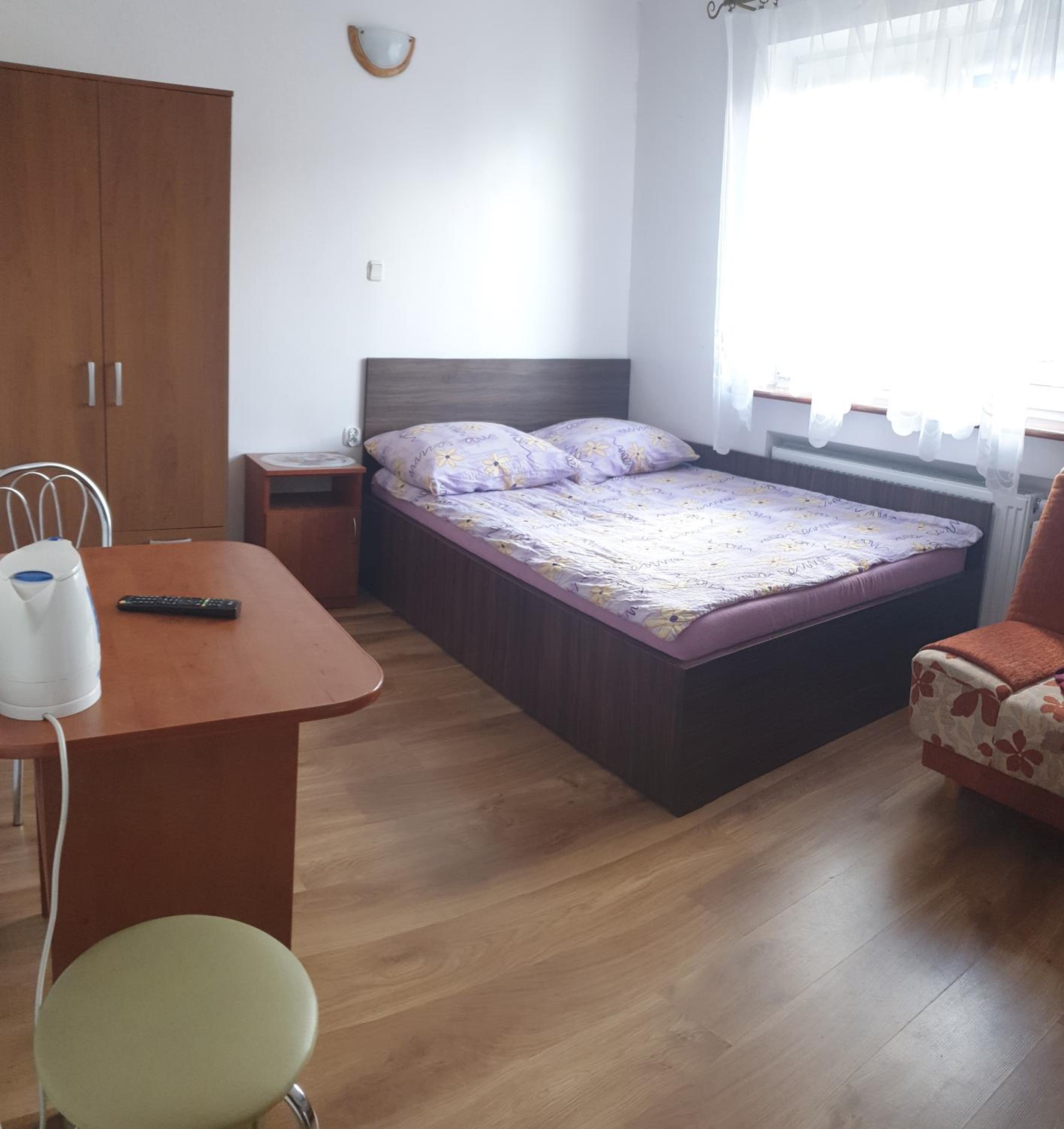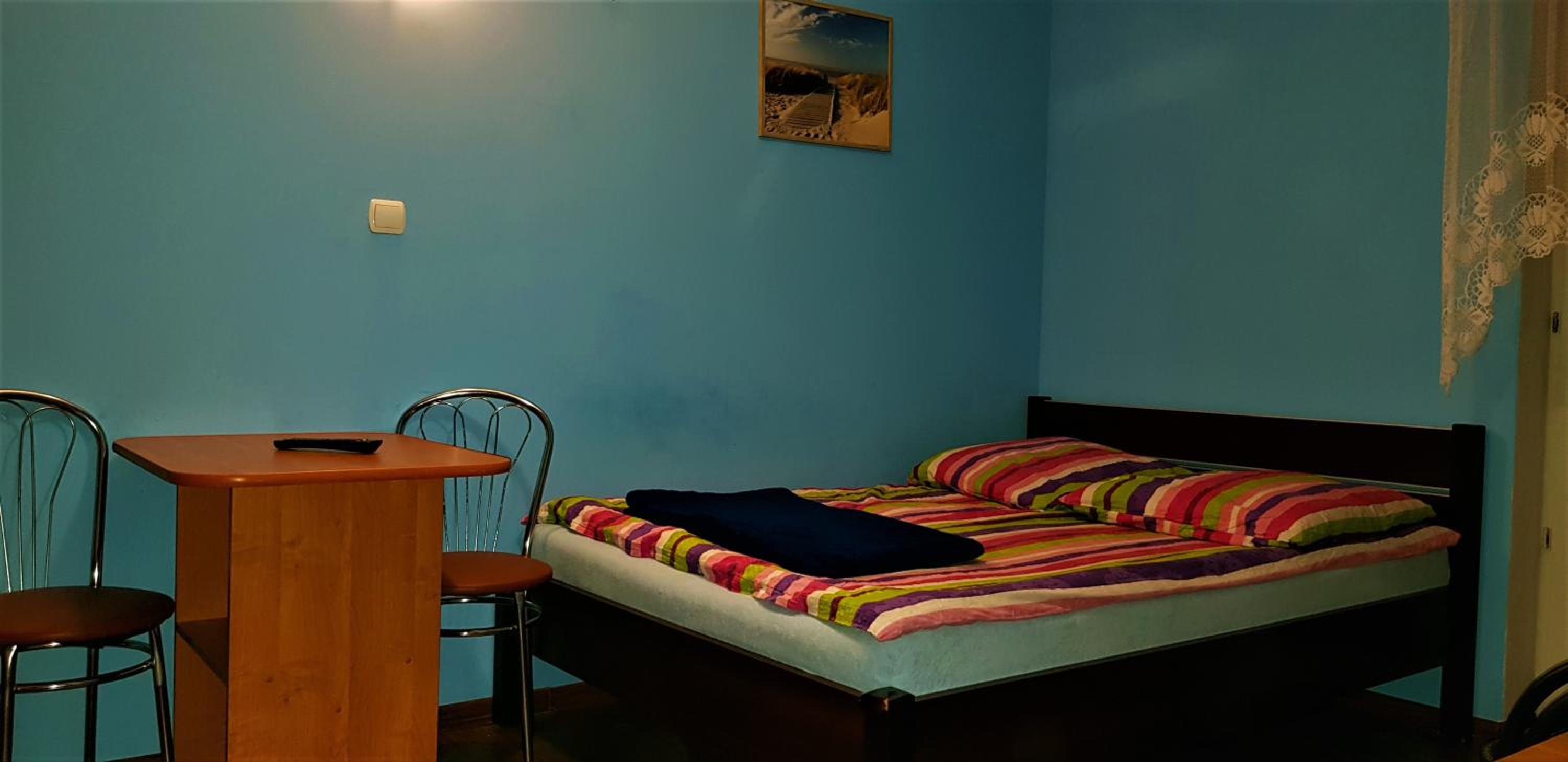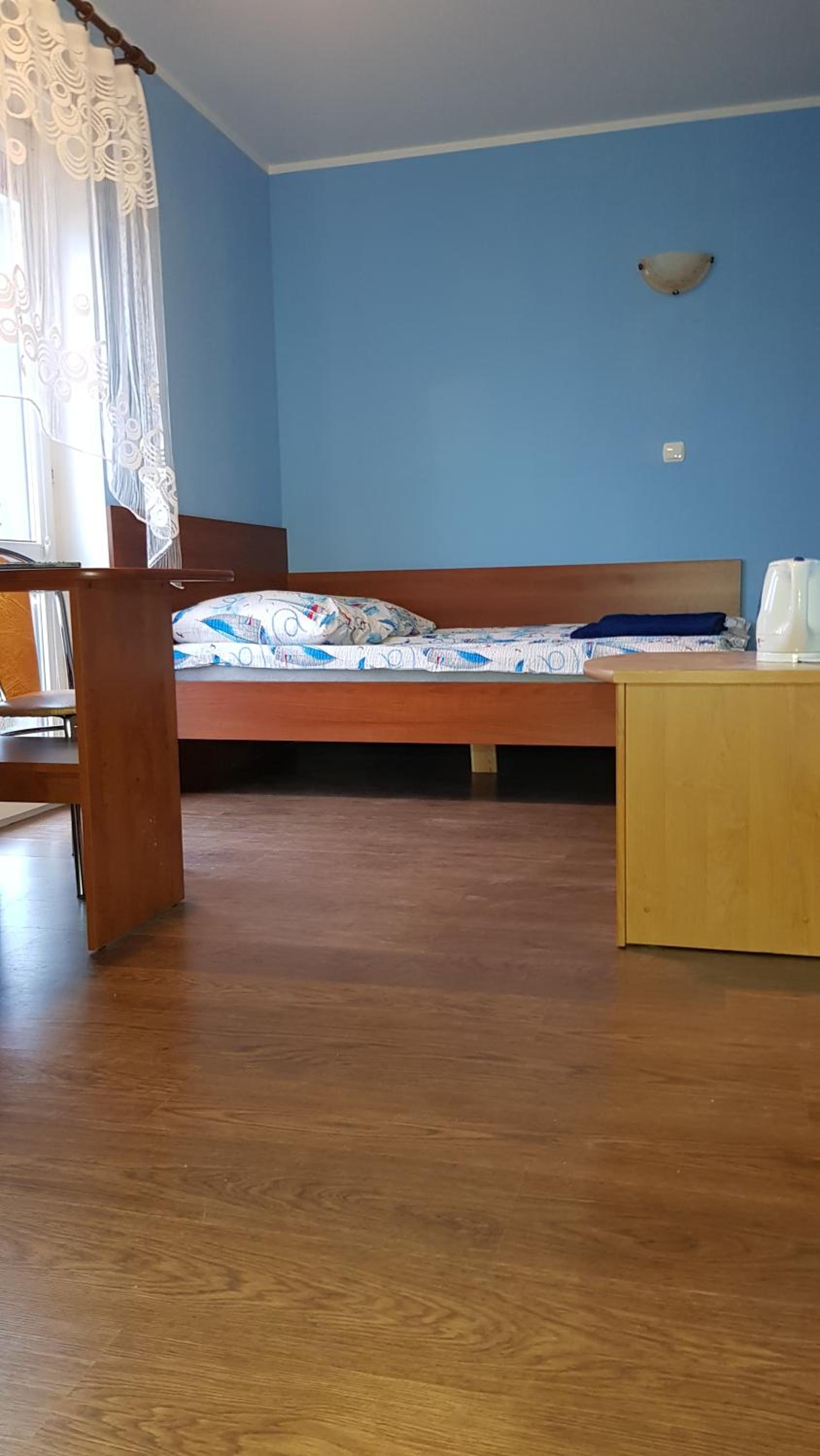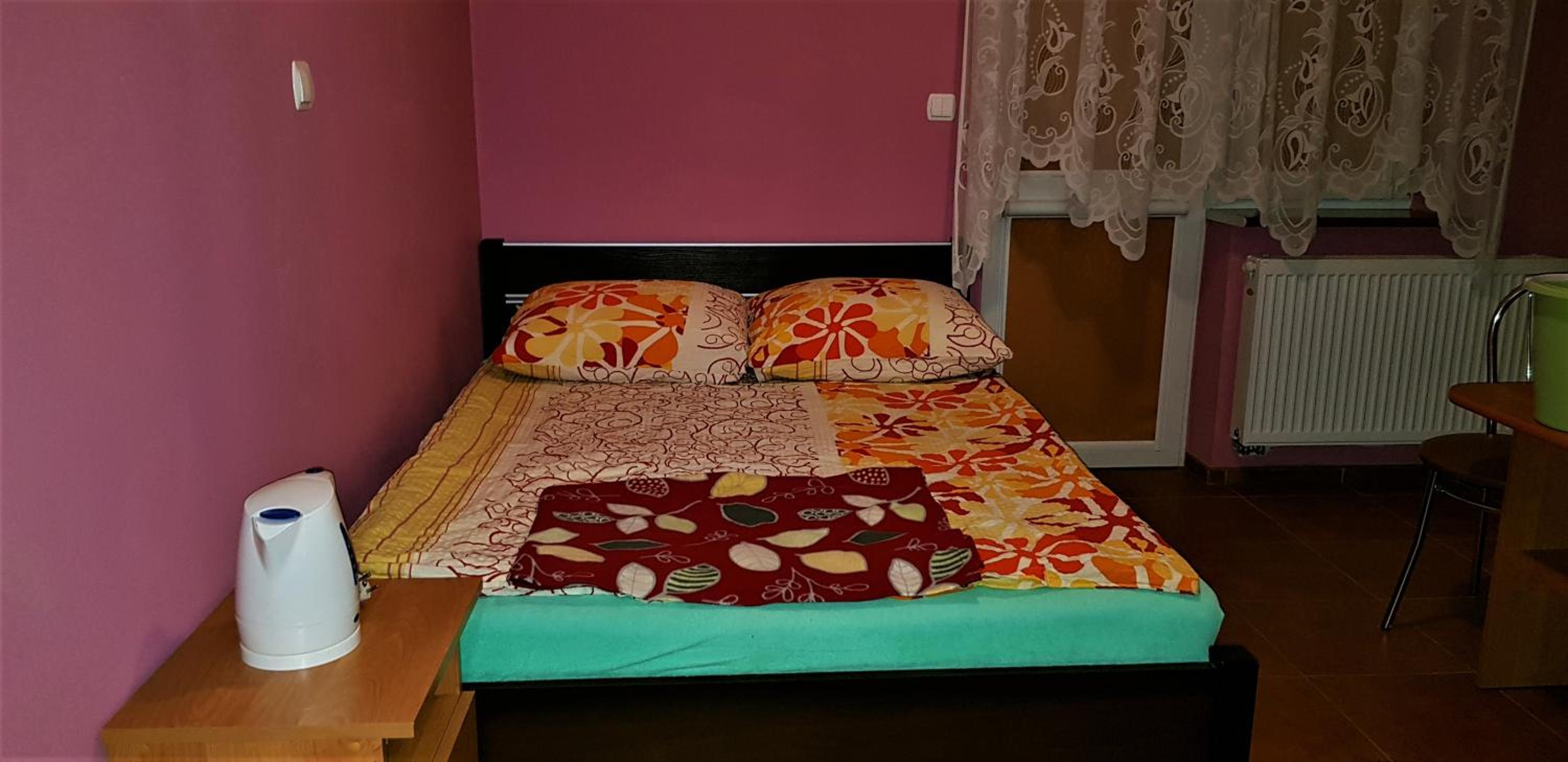 Pokój czysty, duży, łazienka też. W pokoju lodówka i czajnik elektryczny. Na korytarzu dobrze zaopatrzony aneks kuchenny. Obok taras ogólnodostępny .