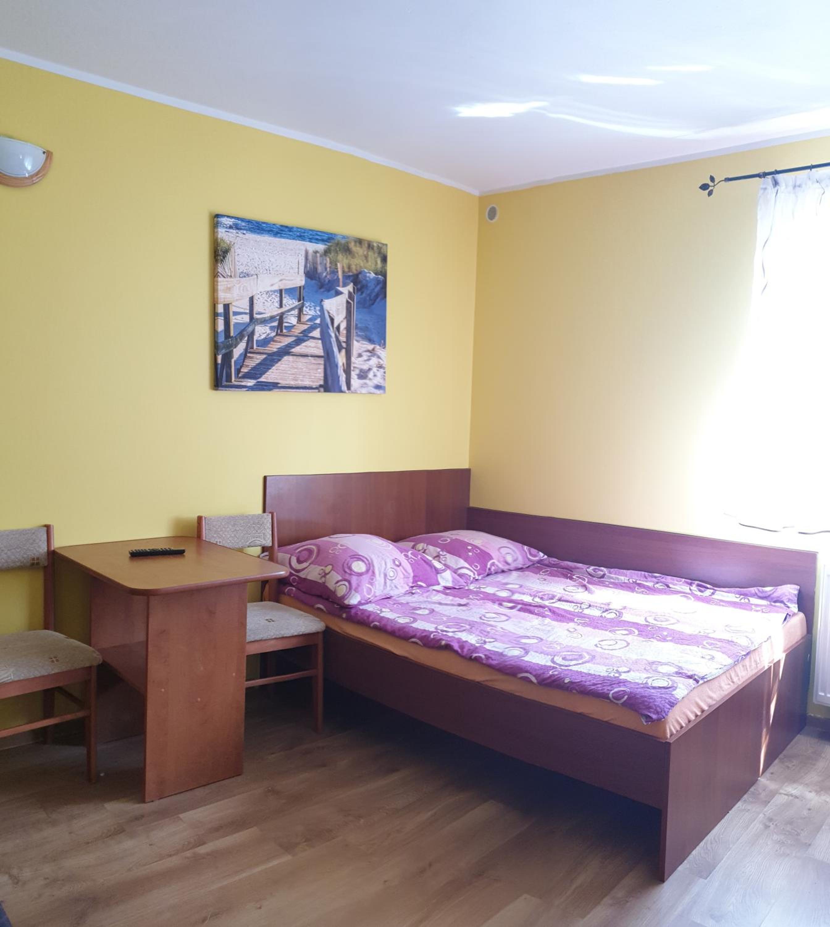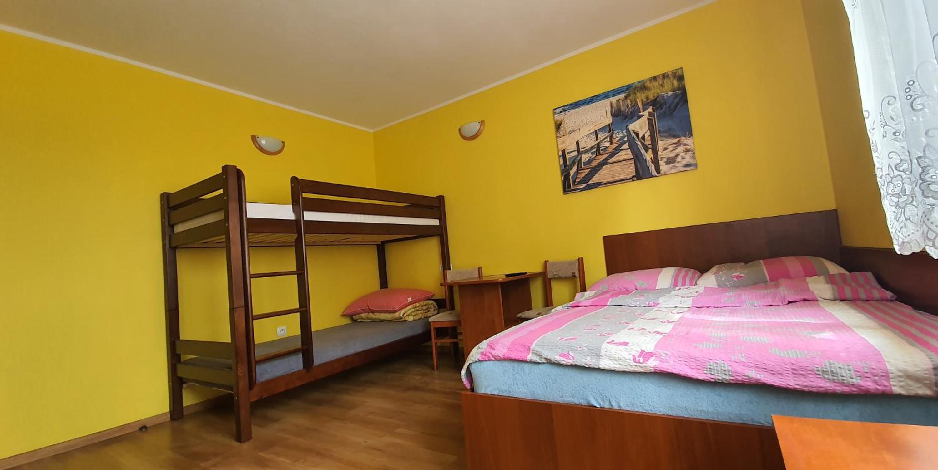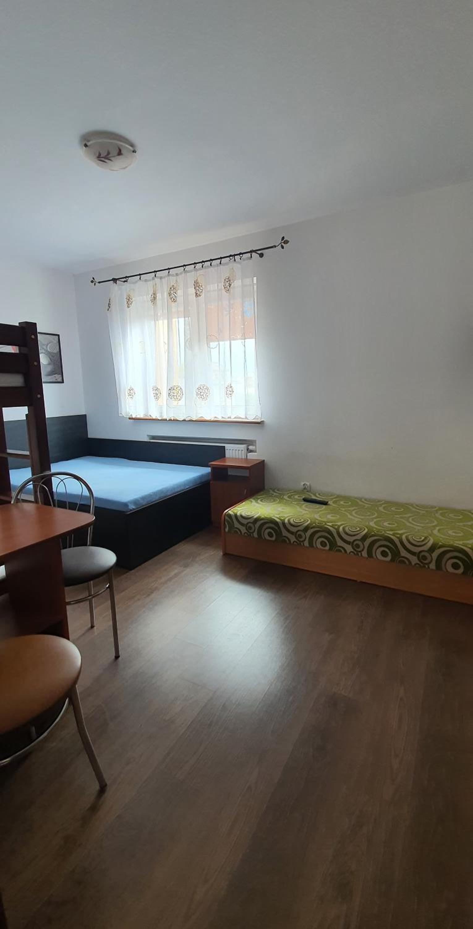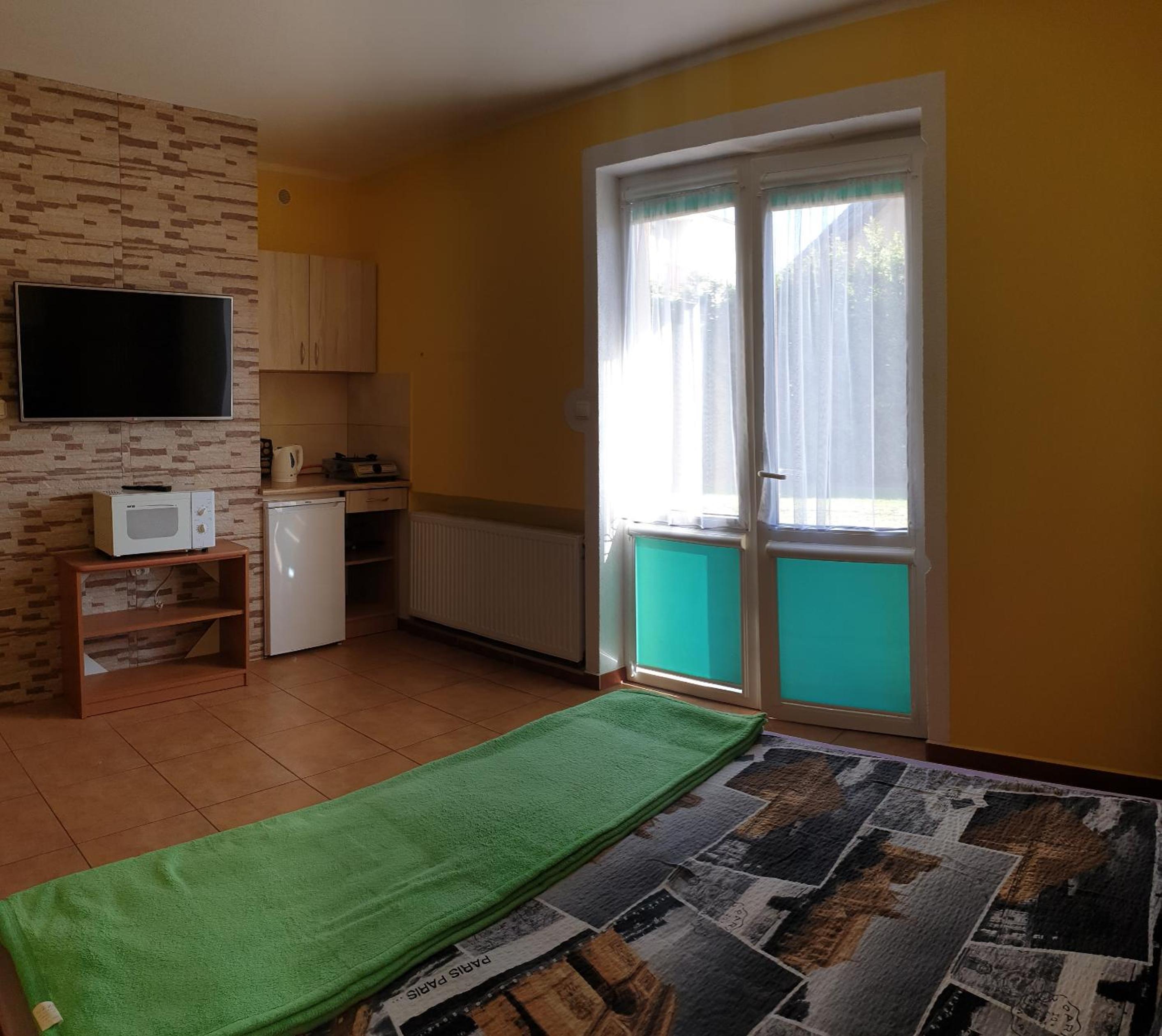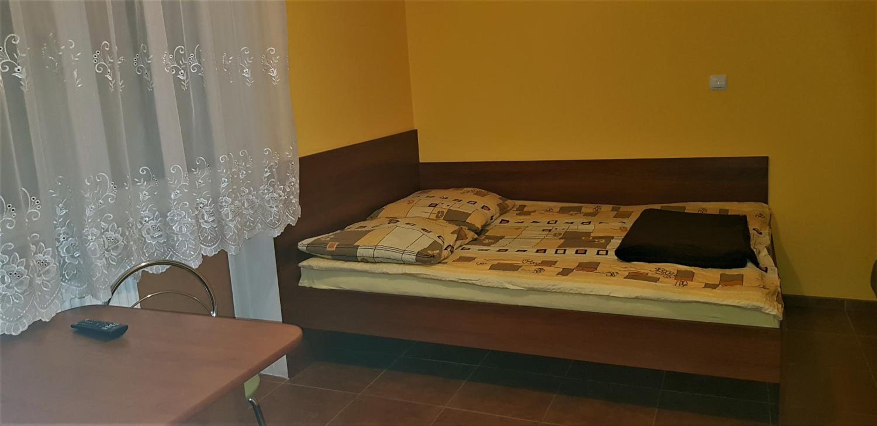 Pokój czysty, duży, łazienka też. W pokoju lodówka i czajnik elektryczny. Na korytarzu dobrze zaopatrzony aneks kuchenny. Obok taras ogólnodostępny .