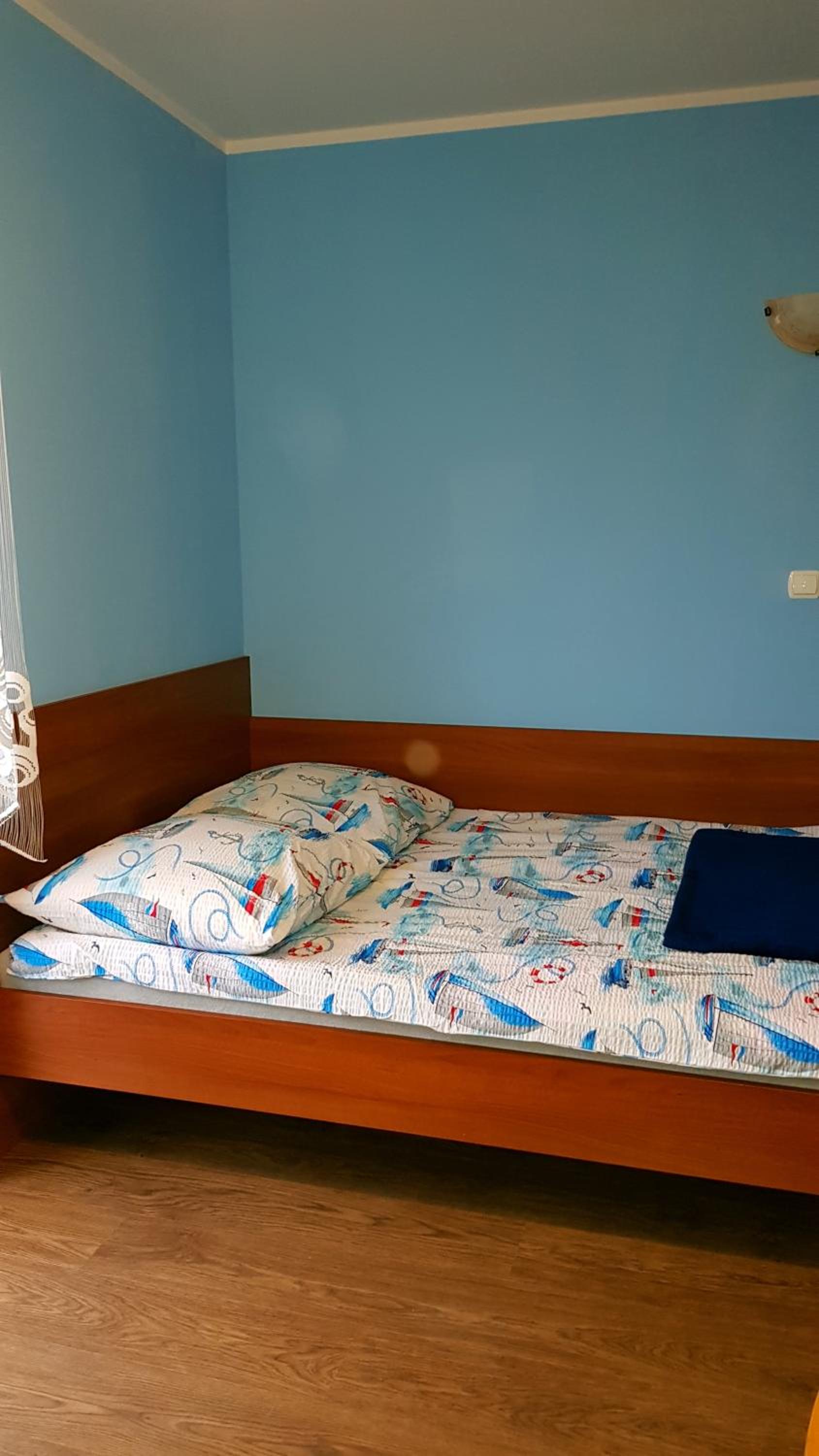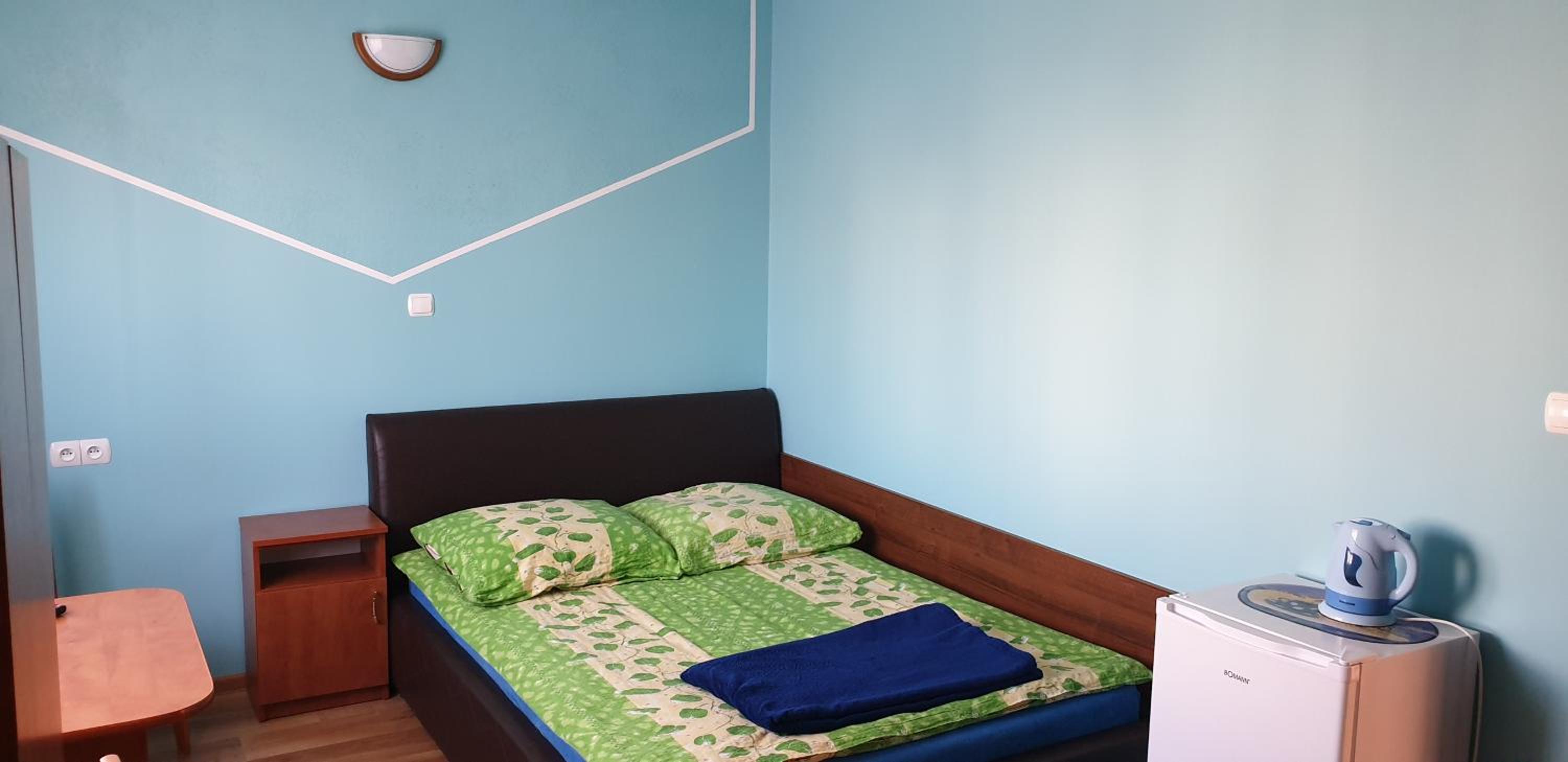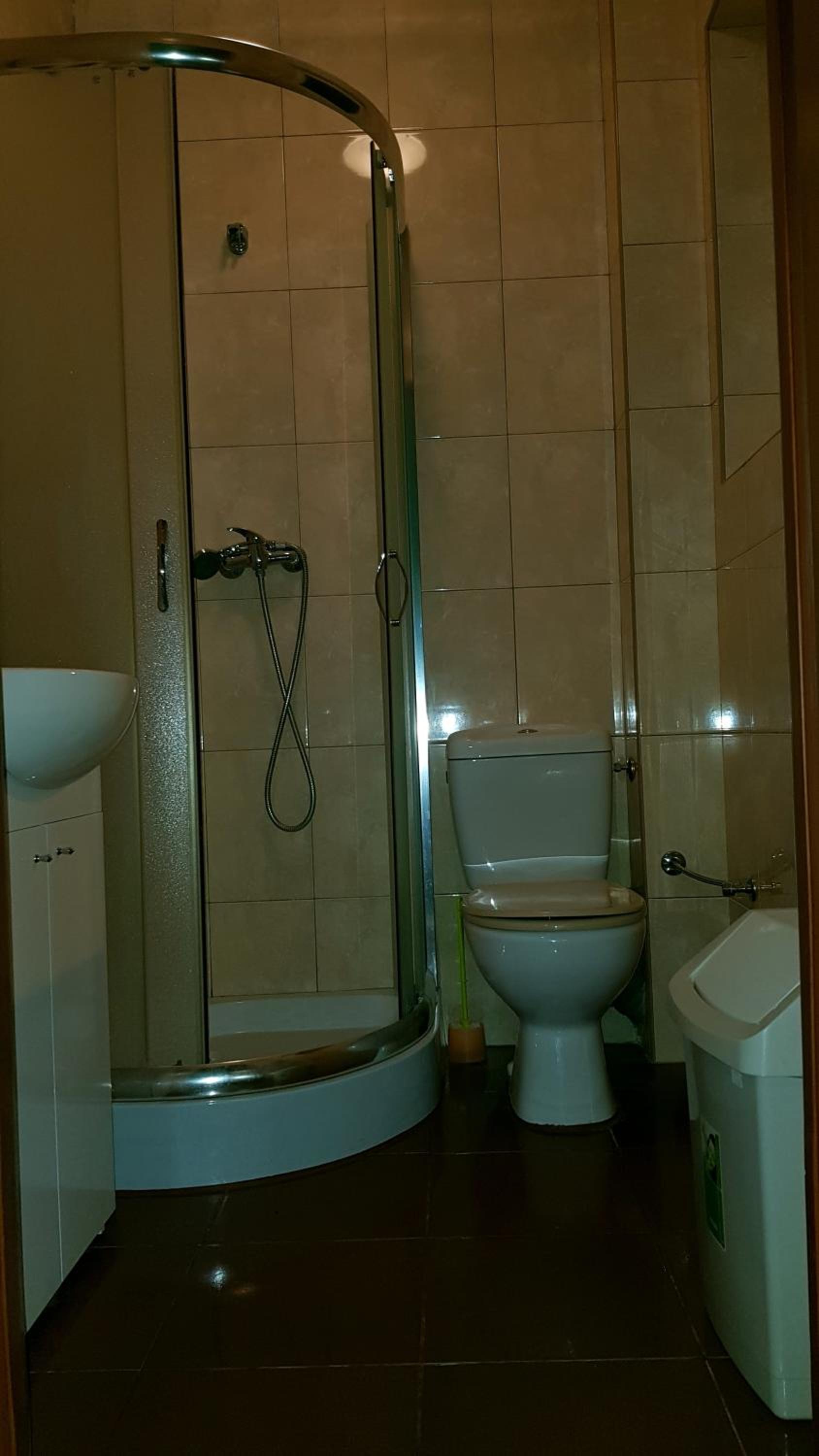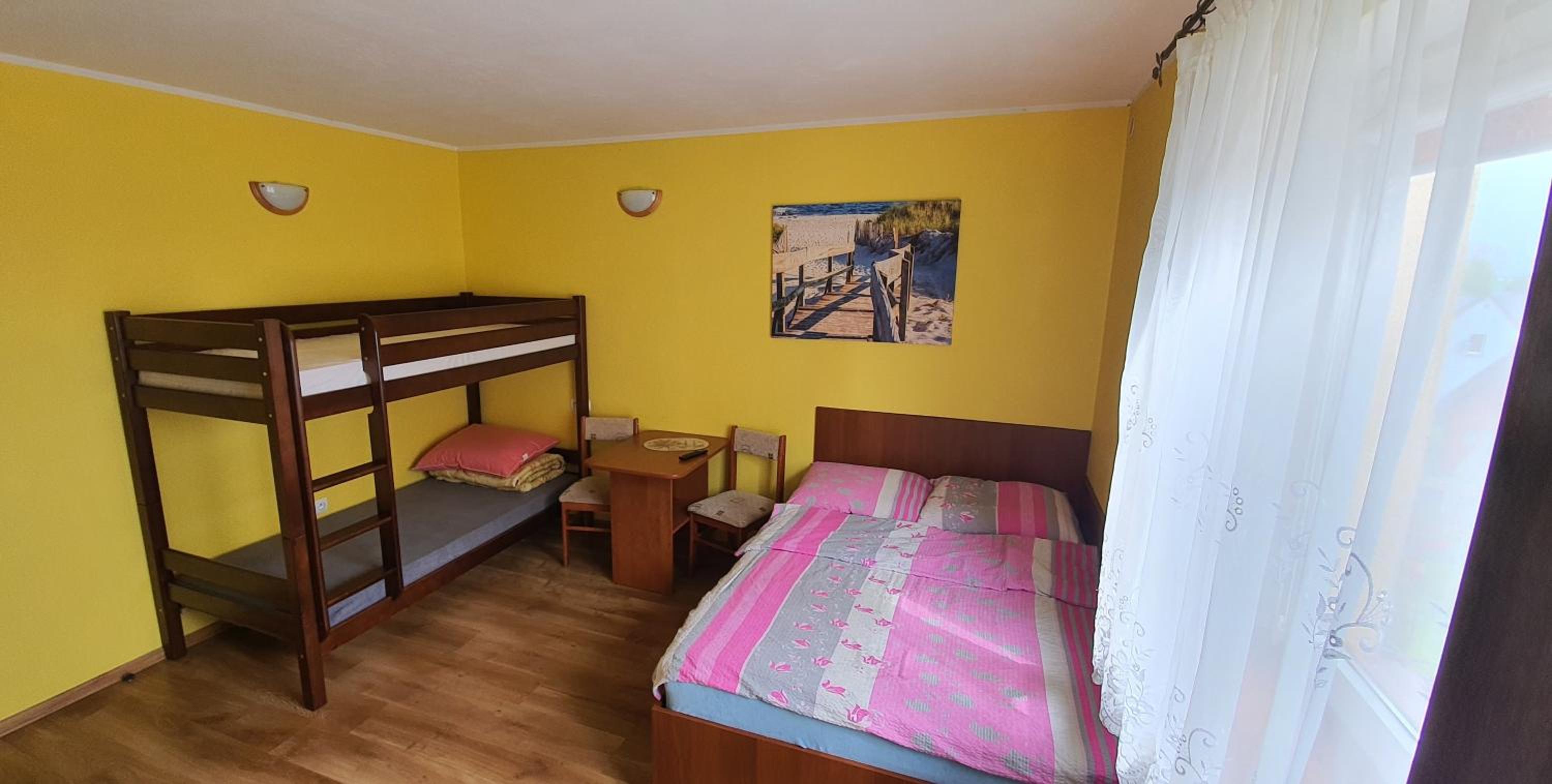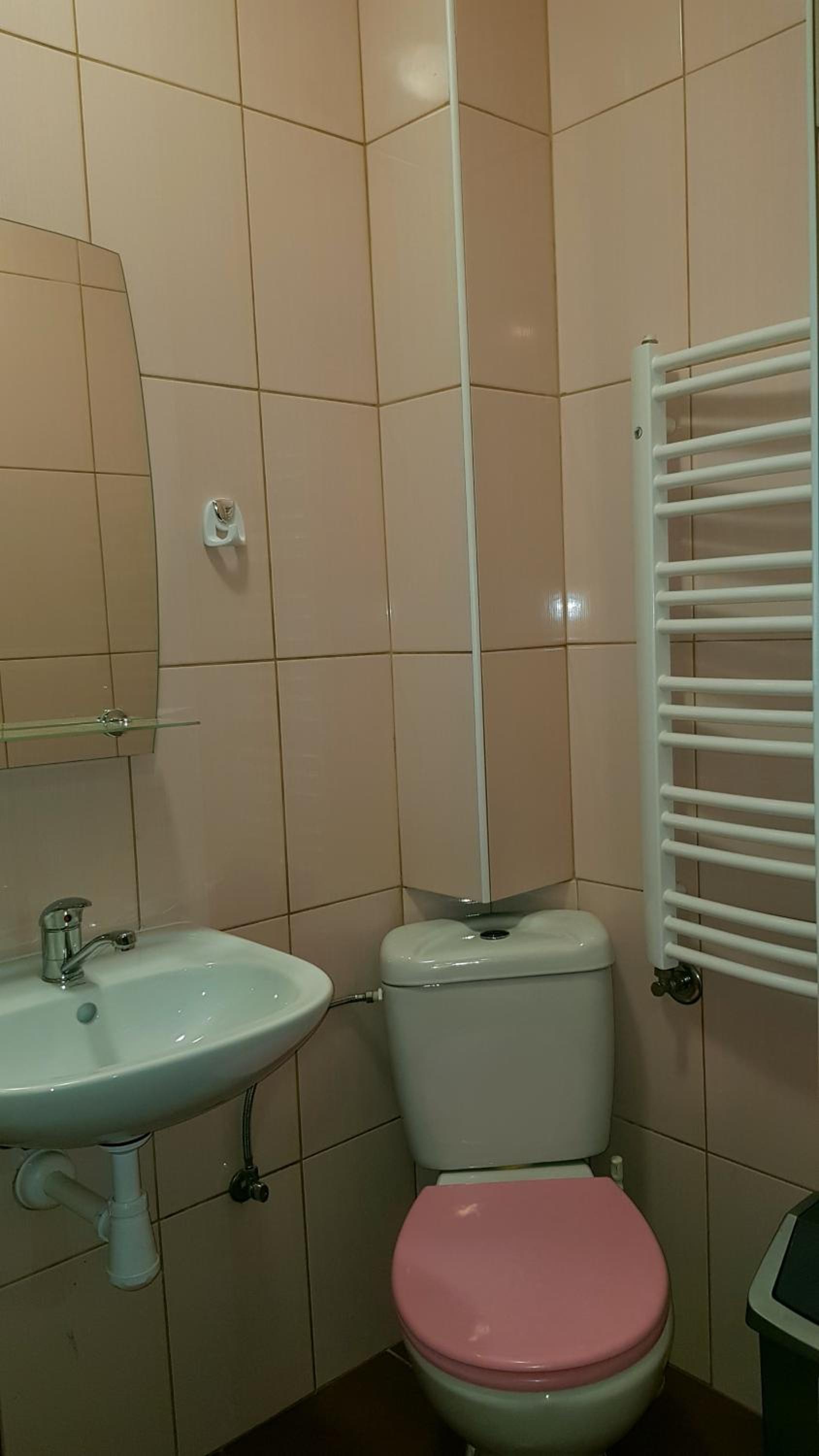 Pokój czysty, duży, łazienka też. W pokoju lodówka i czajnik elektryczny. Na korytarzu dobrze zaopatrzony aneks kuchenny. Obok taras ogólnodostępny .