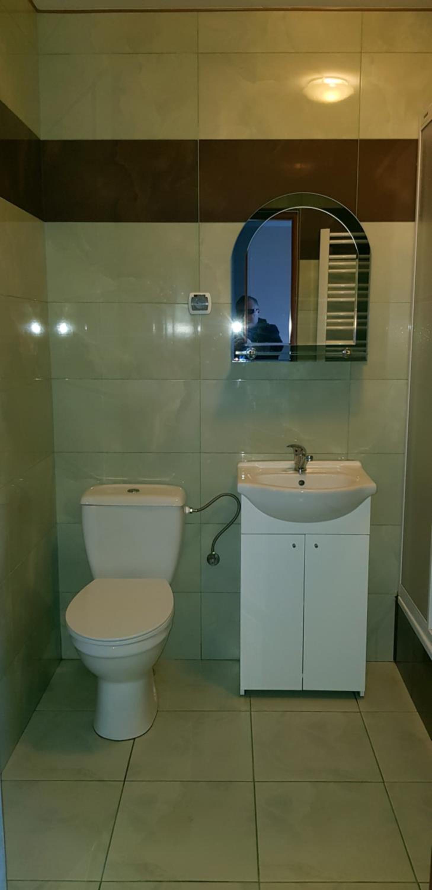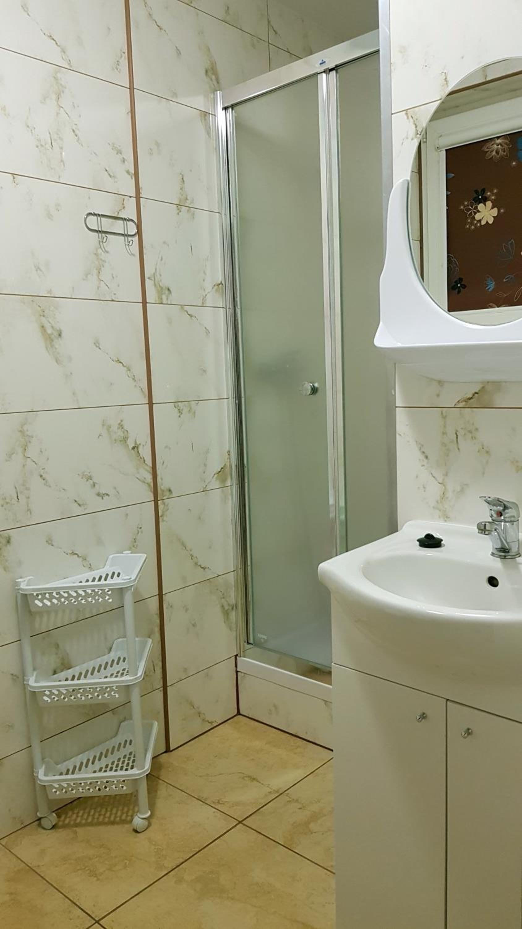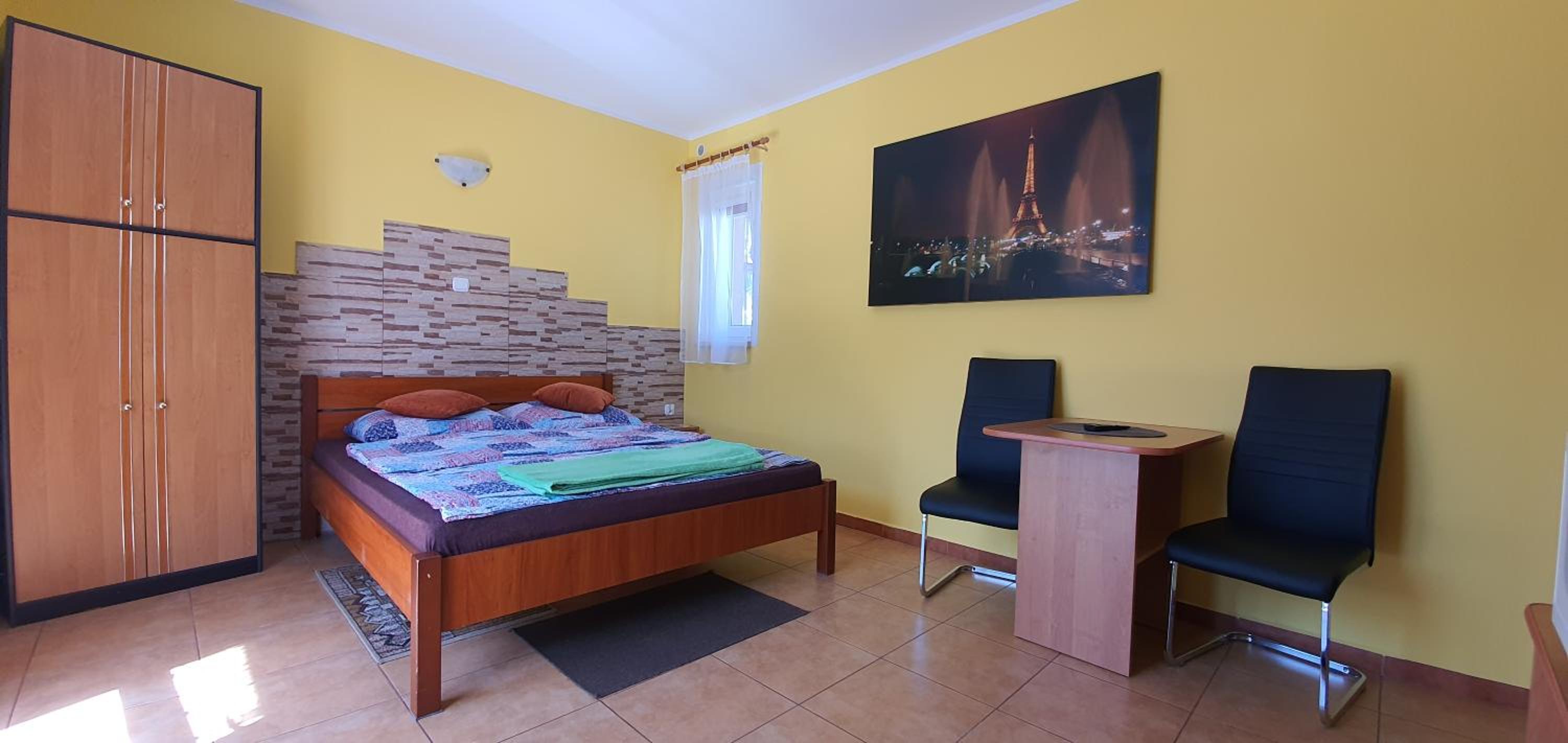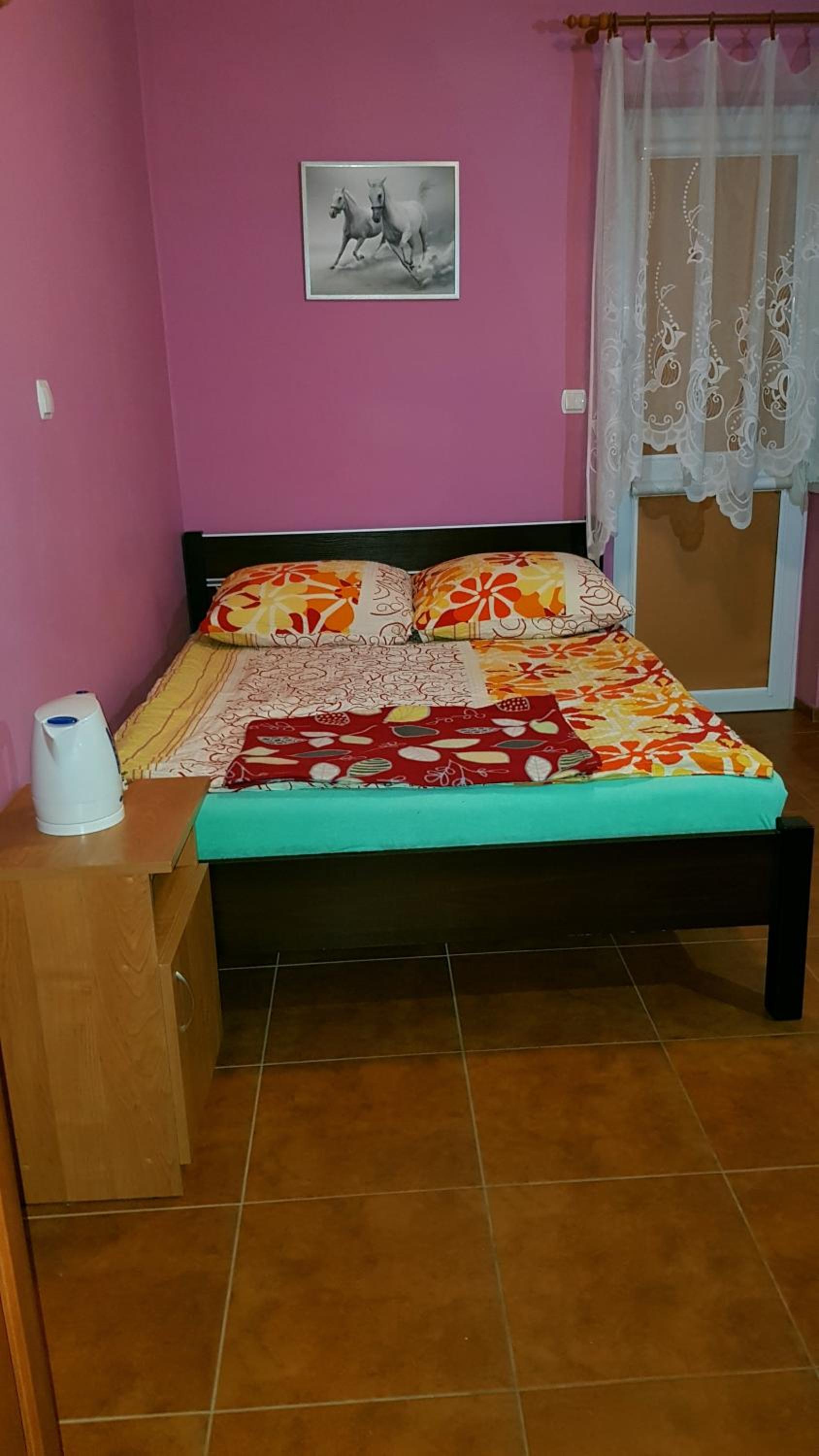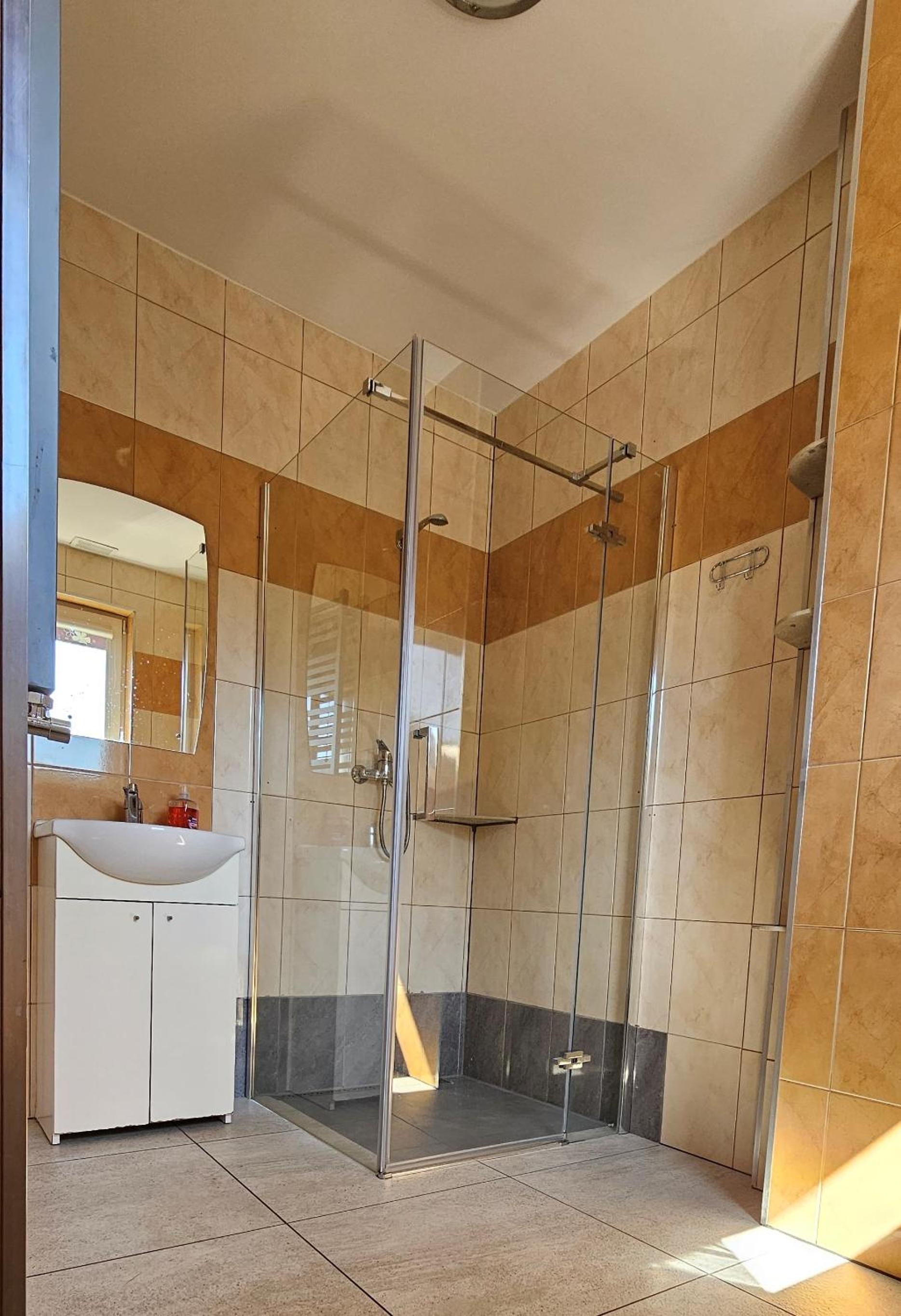 Pokój czysty, duży, łazienka też. W pokoju lodówka i czajnik elektryczny. Na korytarzu dobrze zaopatrzony aneks kuchenny. Obok taras ogólnodostępny .