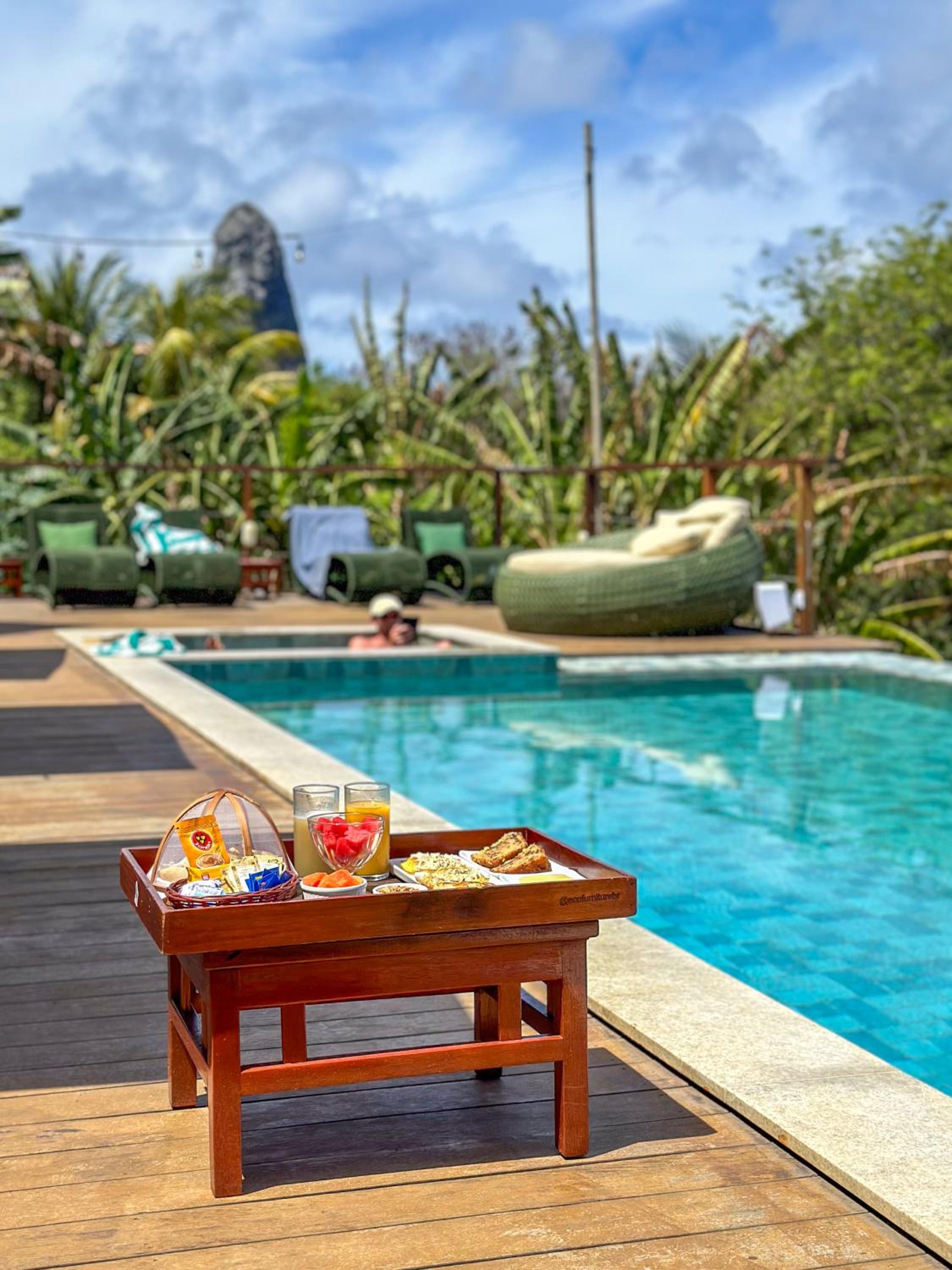 Banho de piscina e jacuzzi foram regozijantes. Toda o entorno da pousada com aquela Flamboyant florida tornaram cada momento único. Esperamos voltar em breve.