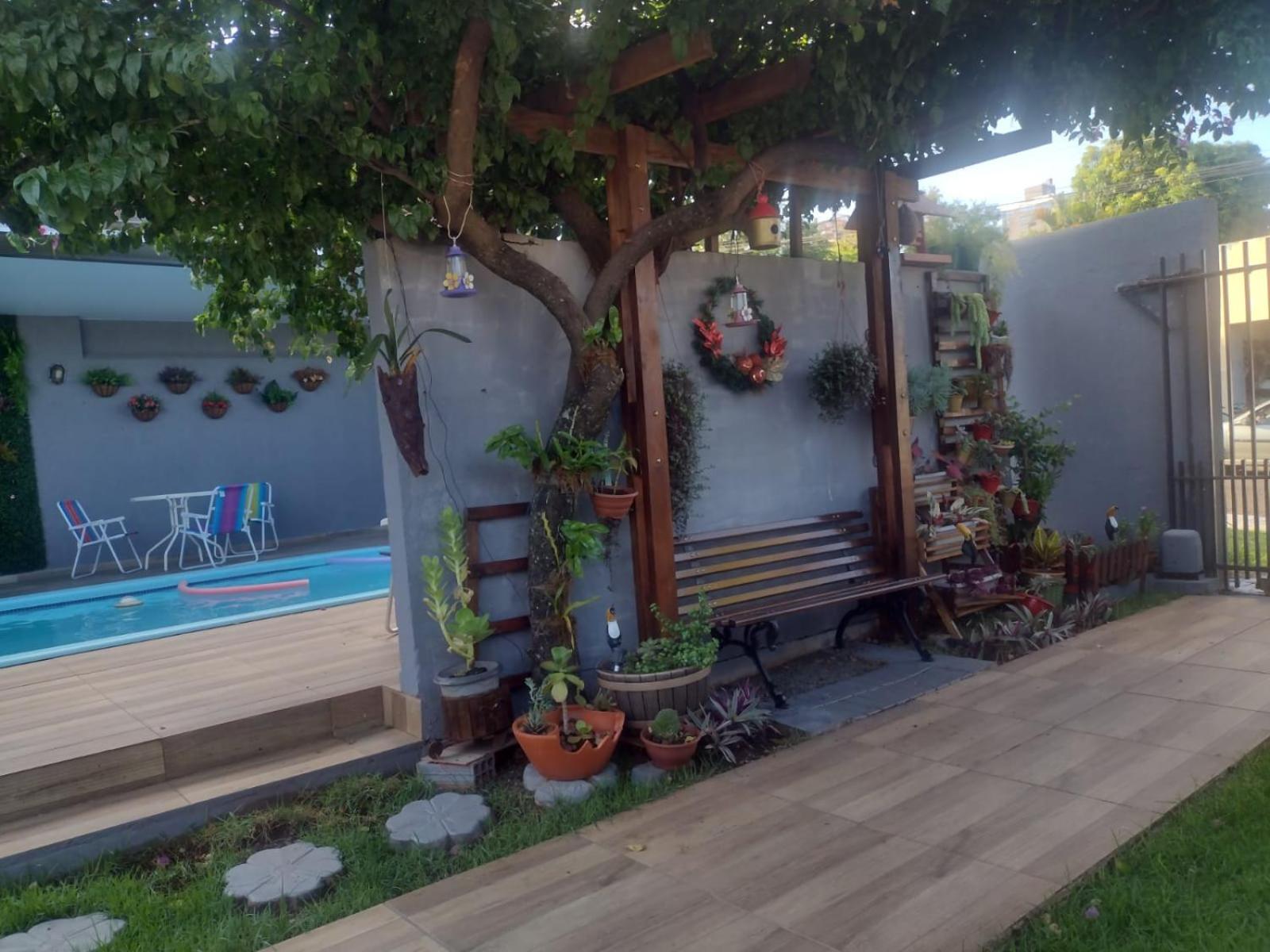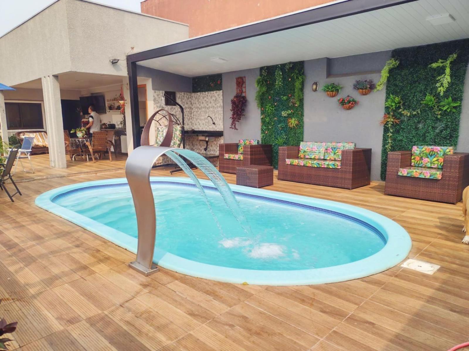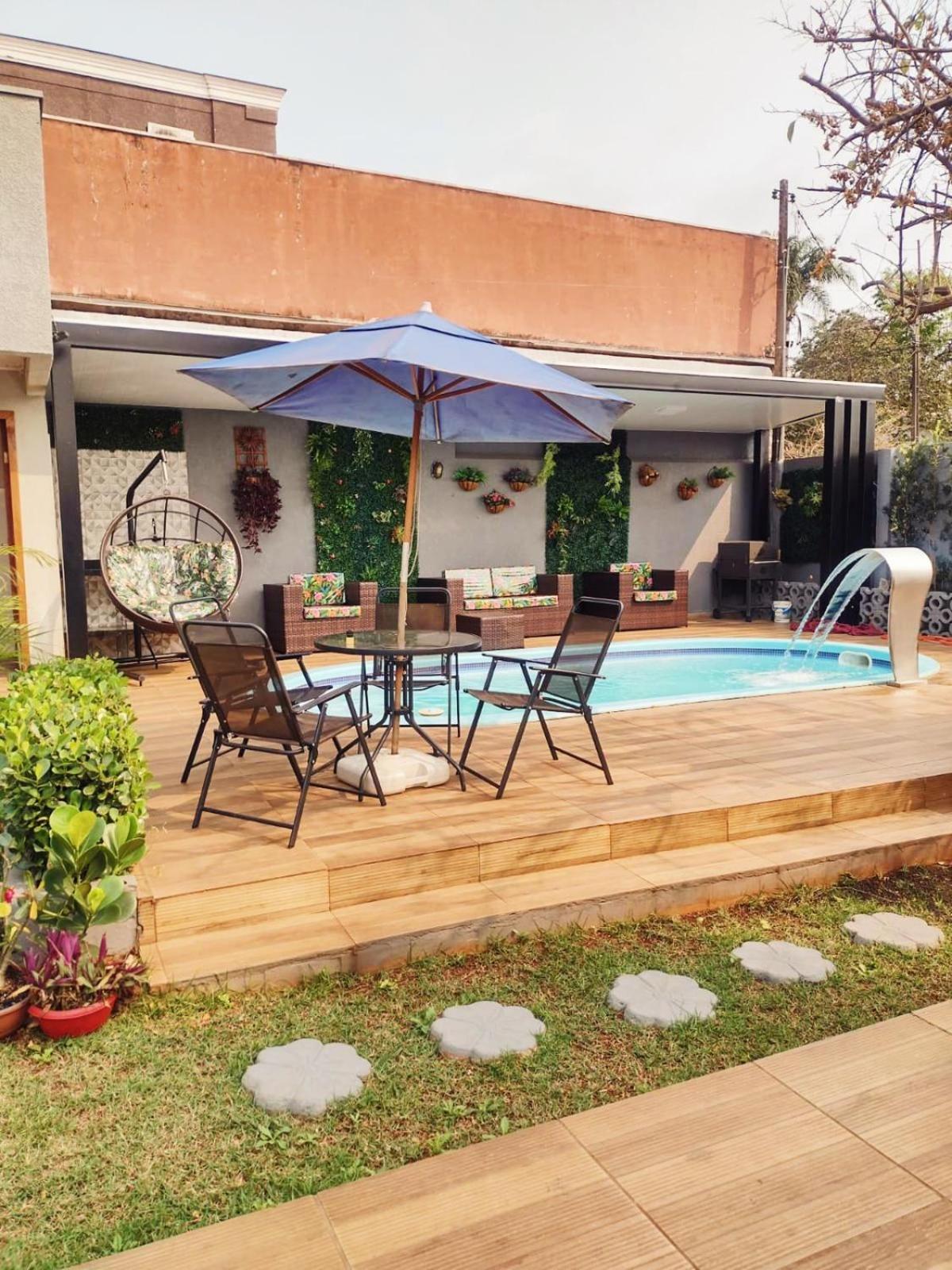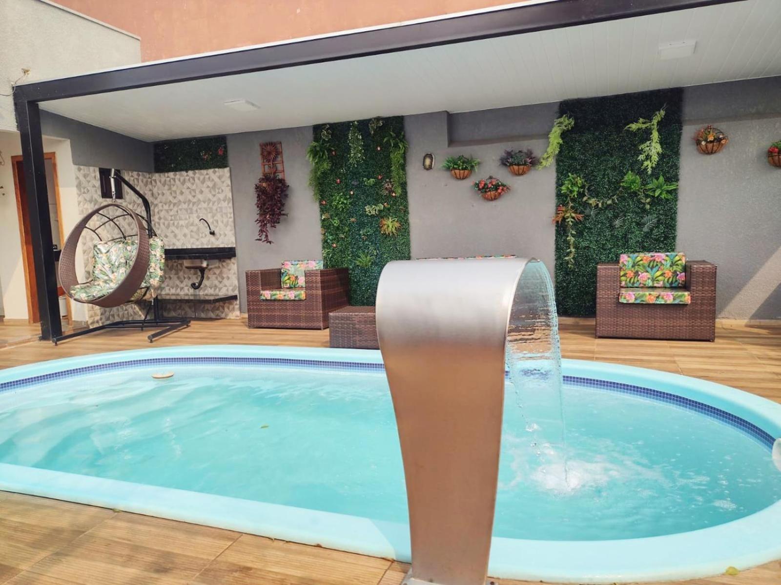 Outdoor Bliss: Enjoy the refreshing outdoor swimming pool and lush garden at Cantinho da Sônia.