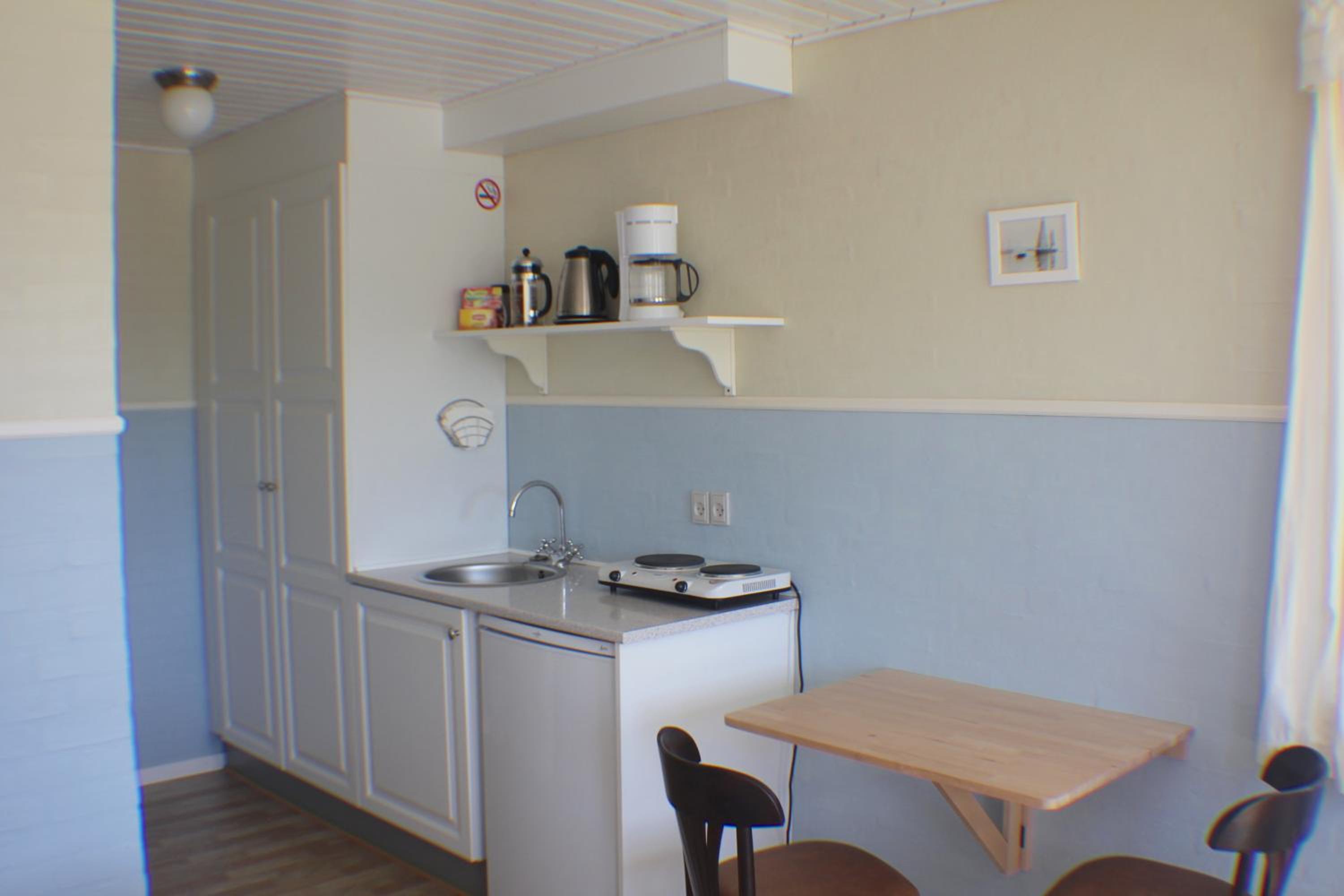 Hyggeligt indrettet med boligting inspireret af området så man føler sig hjemme. God seng. Fred og ro.