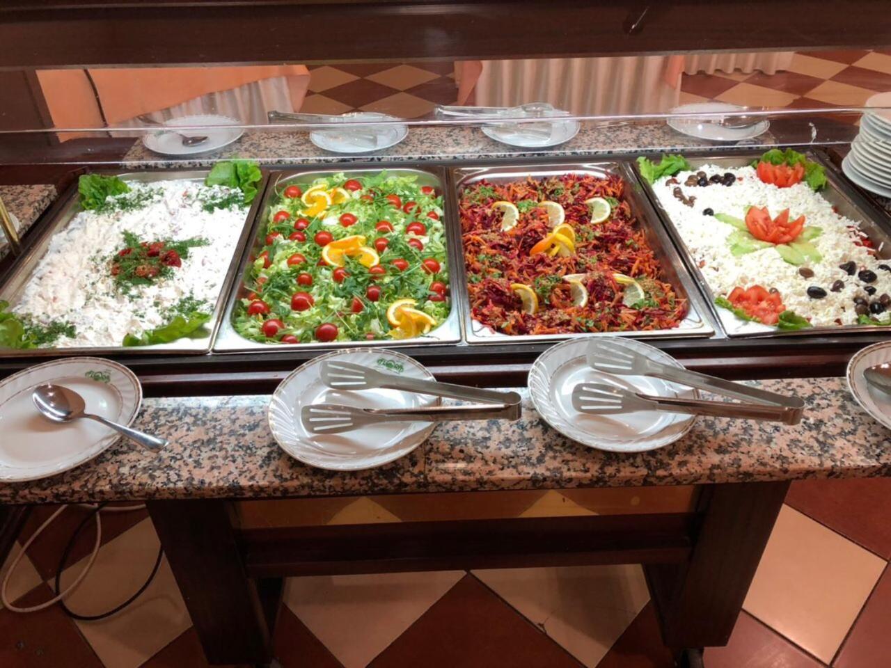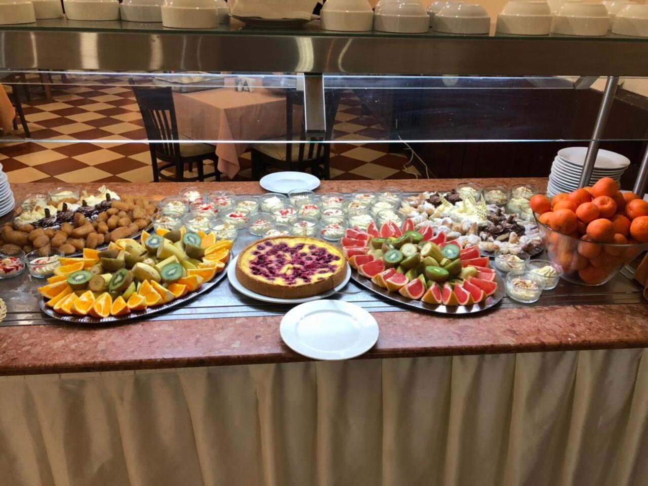 The hotel staff was very friendly. The food was delicious, with a variety of salads and main courses in the evening, at least three types of side dishes, and two types of soups. There were at least four kinds of fruit and plenty of desserts. Various types of cheese were available both in the evening and in the morning.